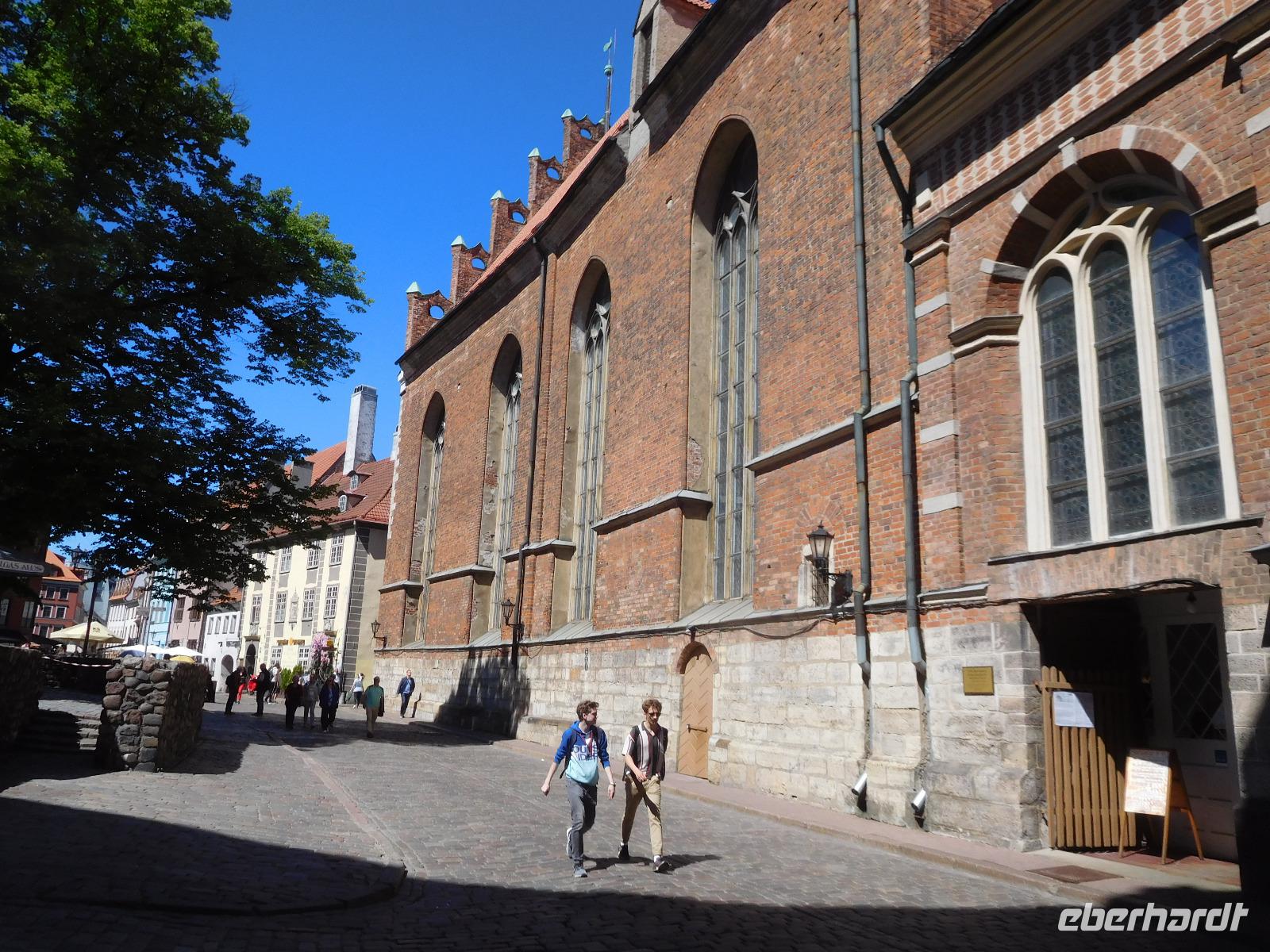 Wie bei der Einreise nach Lettland gab es keinerlei Grenzformalitäten zu erledigen, aber das Terminal mit guter Infrastruktur bot Gelegenheit zur Pause. Nach einer kleinen Stadtrundfahrt durch den traditionsreichen Badeort Pärnu, bei der wir viele traditionelle Holzhäuser, die im Barockstil gehaltene evangelische Elisabethkirche und die orthodoxe Katharinenkirche sahen, legten wir am Strand die Mittagspause ein. Nachmittags waren wir in Tallin und fuhren gleich ins Hotel, um einzuchecken und uns frisch machen. Bei schönstem Wetter genossen wir dann die Stadtführung, beginnend in der Oberstadt mit diversen Villen, der russisch- orthodoxen Alexander- Newski- Kirche und dem alten Dom mit dem Grab des Weltumseglers Krusenstern und unzähligen Wappentafeln alter baltischer Adelsfamilien, deren Wirken auch in unsere Region ausstrahlte, genannt seien nur die Wrangel und Manteuffel. Die Unterstadt erstreckt sich zwischen Nikolai- und Olaikirche, letztere war mit ihrem 31 Meter hohem, Mitte des 15.Jahrhunderts fertig gestellten Langhaus die höchste Kirche des Baltikums, der Turm soll mit über 140 Metern Höhe sogar Weltspitze gewesen sein.