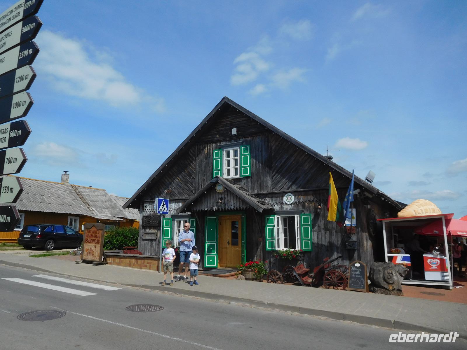Nach dem reichhaltigen Frühstück spazierten wir durch Nidden und vorbei an bunten Fischerkaten ging es zum Friedhof mit der evangelischen Dorfkirche von 1888. Anschließend kamen wir zum Sommerhaus, das Thomas Mann sich vom Nobelpreisgeld 1929 über dem berühmten „Italienblick" hat bauen lassen. Es folgte eine Busfahrt über den litauischen Teil der kurischen Nehrung, die zahlreiche Ausblicke in die Natur dieses besonderen Stückchens Baltikum ermöglichte. Mit der Autofähre ging es in den Hafen von Klaipeda, früher die Ordensritterburg Memel. Die Stadt hat unter Kriegen und Sowjetzeit gelitten, doch sind immer mehr bedeutende historische Gebäude zu sehen. Dazu zählt das eher schlichte Herrenhaus, in dem Preußenkönig Friedrich Wilhelm III. mit seiner Luise 1807/08 residierte, wodurch die Stadt zur preußischen Hauptstadt avancierte. Da allerhand Cafés und Restaurants geöffnet waren, wirkten in der samstäglichen Mittagszeit die Straßen sehr lebendig. Ein ehemaliges Segelschulschiff ist heute ein fest vertäutes Restaurant und Wahrzeichen von Klaipeda.