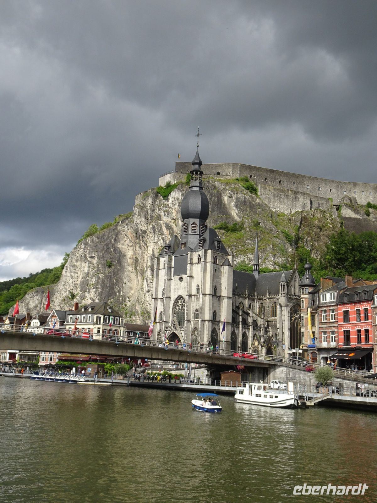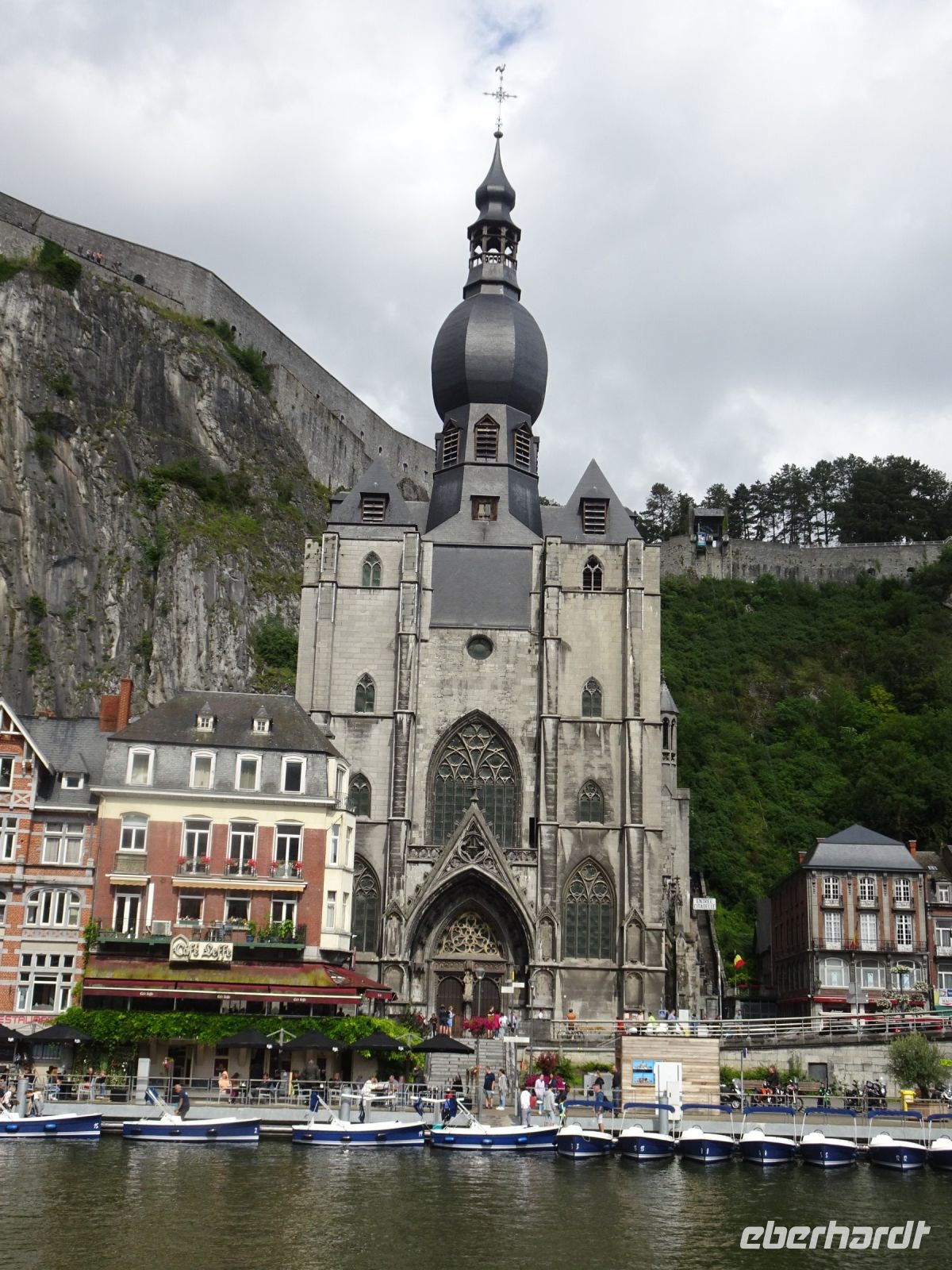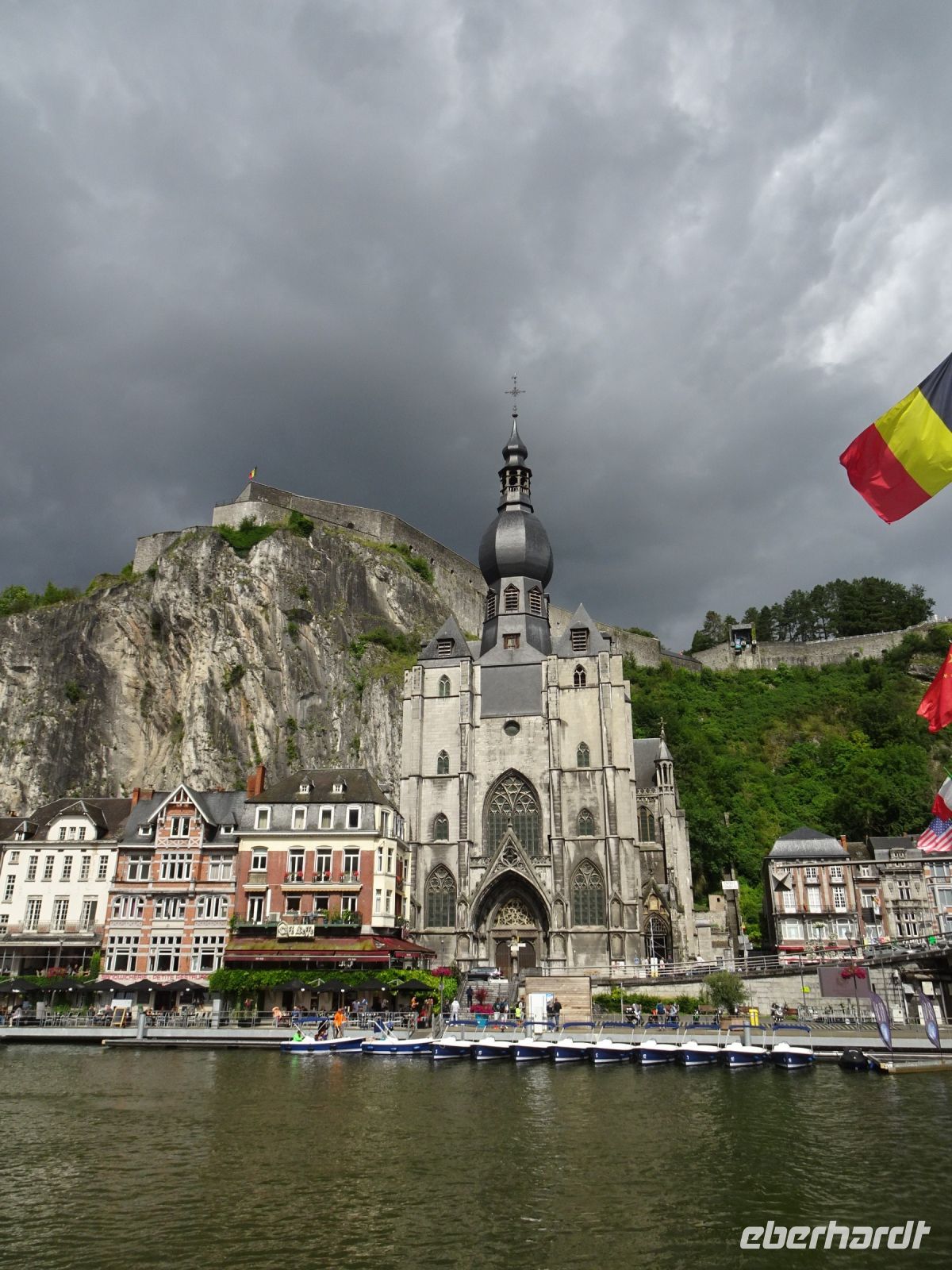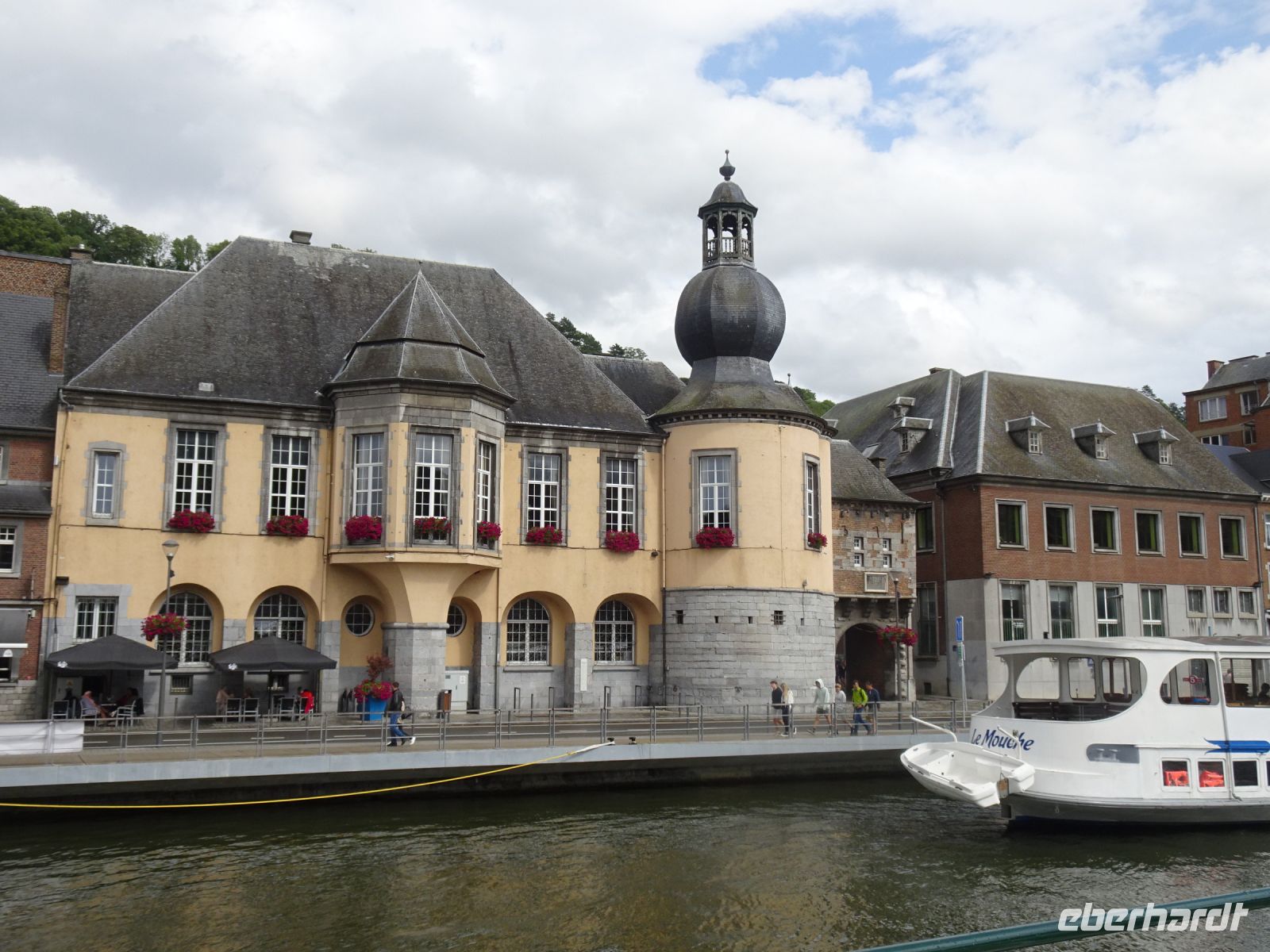 Am zweiten Tag ging es auf Fahrt in die Maas-nahen Gegenden. Zuerst sahen wir die Zitadelle von Namur am Zusammenfluss von Maas und Sambre. Es ging entlang der Maas, die Sandsäcke vor den Türen erinnerten an die im Juli 2021 hier herrschende Flut, aber die Schäden waren optisch sehr gering. Erstes Reiseziel waren die Gärten von Annevois, deren Ursprünge bis auf das XVIII. Jahrhundert zurückgehen. Gespeist von 4 natürlichen Quellen fließt das Wasser von allein - ohne Pumpen - über den Großen Kanal zu einer Vielzahl von Wasserspielen. Die Bäume und Bepflanzungen waren im prachtvollen Grün. Eine Schwanenfamilie wunderte sich über uns als die ersten Besucher an diesem Tag. Unser Gartenführer hatte alle Erklärungen, die wir wünschten und gab uns ein beeindruckendes Bild von dieser herrlichen Gartenanlage. Und: das Palais war endlich ohne Baugerüste und spiegelte sich in einem der Teiche prachtvoll wider. Weiter ging unsere Fahrt in die Abtei Maredsous. In der Gastwirtschaft der Abtei lernten wir bei einem kleinen Imbiss Bier, Käse sowie Brot der Abtei kennen. Die anschließende Führung erfolgte durch einen ehemaligen Geschichtslehrer der Abtei. Wir besichtigten die Kirche und das Abteigelände mit Paradiesgarten. Wir lernten eine wunderbare, auch heute noch genutzte Abtei kennen. Unser uns begleitende Herr stellte uns die Bedeutung der Abtei für die europäische Geschichte dar und ging besonders auf die Gründung durch deutsche Mönche in 19. Jahrhundert ein. Interessant auch der bescheidene Friedhof der Mönche. Ein weiteres Ziel an diesem Tag war unser Besuch in Dinant. Die Zitadelle auf dem Berg mit gotischer Liebfrauenkirche an der Maas und die Denkmale des Saxophon-Erfinders Adolphe Sax sahen wir schon bei der Anfahrt zu unserem Schiff. Anschließend gab es eine herrliche Schiffsfahrt bis zur Mündung der Lesse mit Maas-Schleuse. Das Ortspanorama mit beindruckender Felsenwelt, durch die sich die Maas zwängt, beeindruckte uns sehr. Abschließend für diesen Tag stand ein Besuch der Zitadelle in Namur auf unserem Programm. Unser Reiseleiter Hartwig zeigte uns die verschiedenen Ausbaustufen der Zitadelle, die Blicke über die Stadt, den Zusammenfluss von Maas und Sambre und natürlich auch den in der Sonne glänzenden Schildkröten-Reiter von Fabré. Neu errichtet wurde eine Seilbahn, die die Gäste von der Altstadt direkt auf die Zitadelle bringt. Leider beendete diese den Betrieb bereits um 17 Uhr. Durch die Stadt kehrten wir zurück zu unserem sehr zentral gelegenen Hotel.