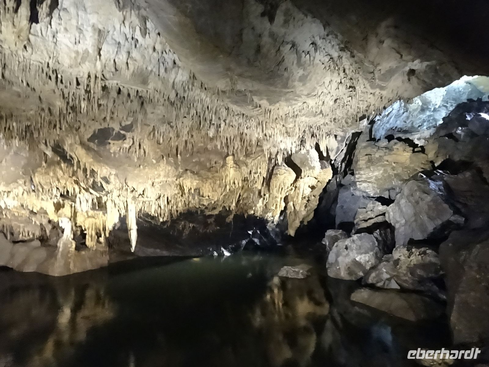 Unser dritter Reisetag führte uns entlang der Maas nach Huy. Ein Regenschauer konnte uns nicht von einem kleinen Stadtrundgang abhalten. Auf dem Grande Place bestaunten wir den einzig erhaltenen Bronzebrunnen Belgiens und das Rathaus im Stil Louis XV von 1766. An der Rückseite der Kirche „Collégiale Notre-Dame“ bestaunten wir das Bethlehemsportal, das in meisterlicher Bildhauerarbeit die Geburt Christi darstellt. Anschließend ging es zum Schloss Modave. Hier wurden wir herzlich begrüßt. Audioguides gaben allen einen umfassenden Einblick in dieses sehr gut erhaltene Schloss. Haben Sie schon mal eine derart komfortabel eingerichtete historische Küche gesehen wie in diesem Schloss? Die nachfolgende Fahrt durch die Ardennen nach Hotte zeigte uns die landschaftliche Schönheit dieser Gegend. In Hotte wurden wir vom Fleischermeister persönlich begrüßt. Er und seine Frau gaben uns einen kleinen Einblick in die Familientradition und die Herstellung von Würsten und Pasteten. Und wir konnten kosten. Durch die unmittelbare vor dem Geschäft stattfindenden Straßenbauarbeiten verlegten wir unsere Verkostung kurzerhand in den Hof der Fleischerei. Über den schwer vom Unwetter gekennzeichneten Ort Roquefort ging es am Nachmittag dann in die Grotten Han sur Lesse. Diese Grotten zeichnen sich dadurch aus, dass der Fluss Lesse durch die Grotten fließt und diese entsprechend geformt hat. Die über anderthalbstündige Führung, zum Teil mit begleitendem und durch die Grotten schießendem Fluss, war ein beeindruckendes Erlebnis. Die moderne Grottenbeleuchtung mit LED-Lämpchen war dezent, aber trotzdem sehr anschaulich. Und: Die Beleuchtung war flutsicher! Eine Lichtinstallation mit Lasershow und Fackelläufer im großen Saal der Grotte wurde durch Musik begleitet und begeisterte alle. Mit herrlichen Eindrücken von den Ardennen, dem Wirken seiner Menschen und den Naturschönheiten kehrten wir zurück nach Namur.