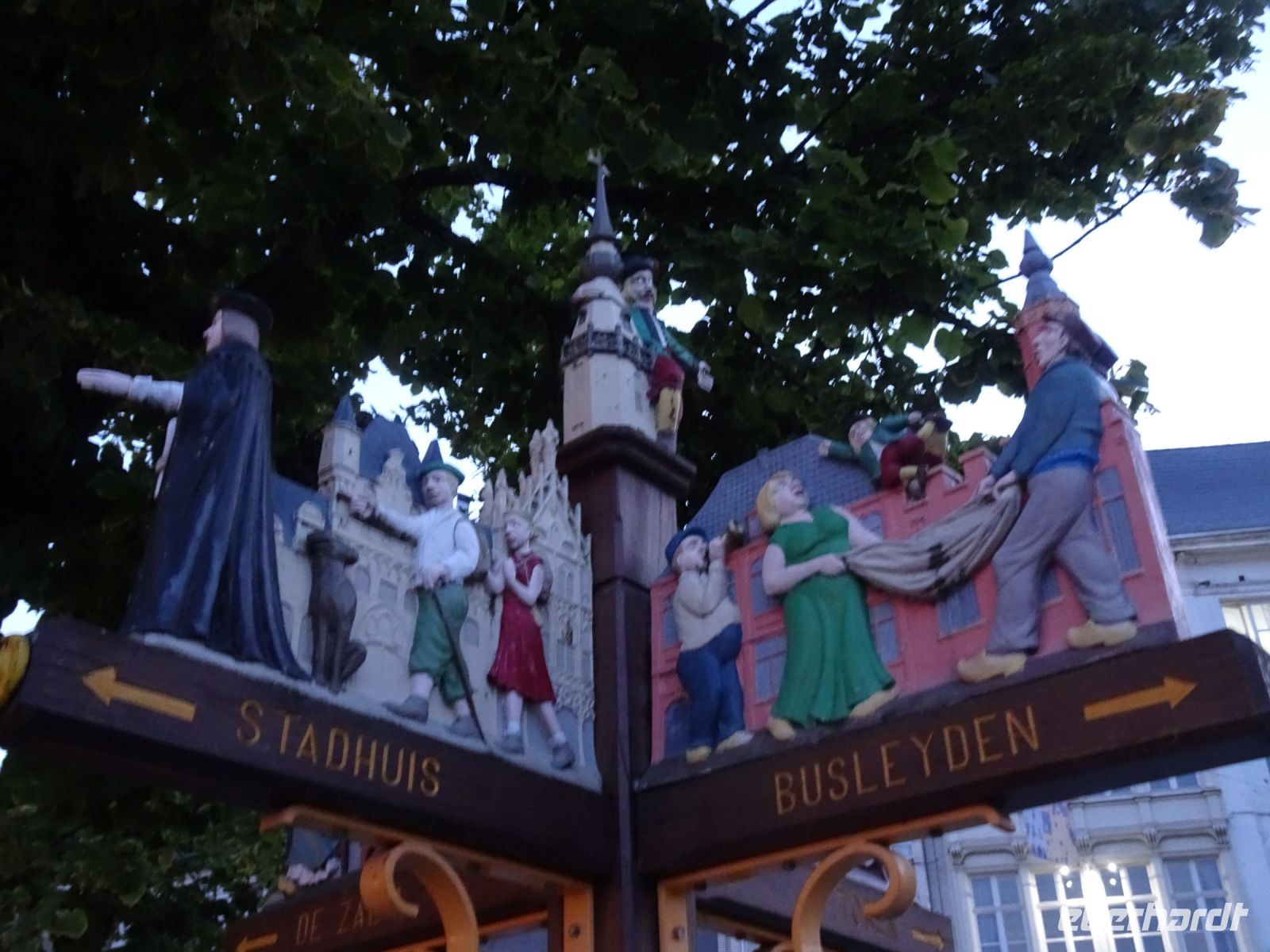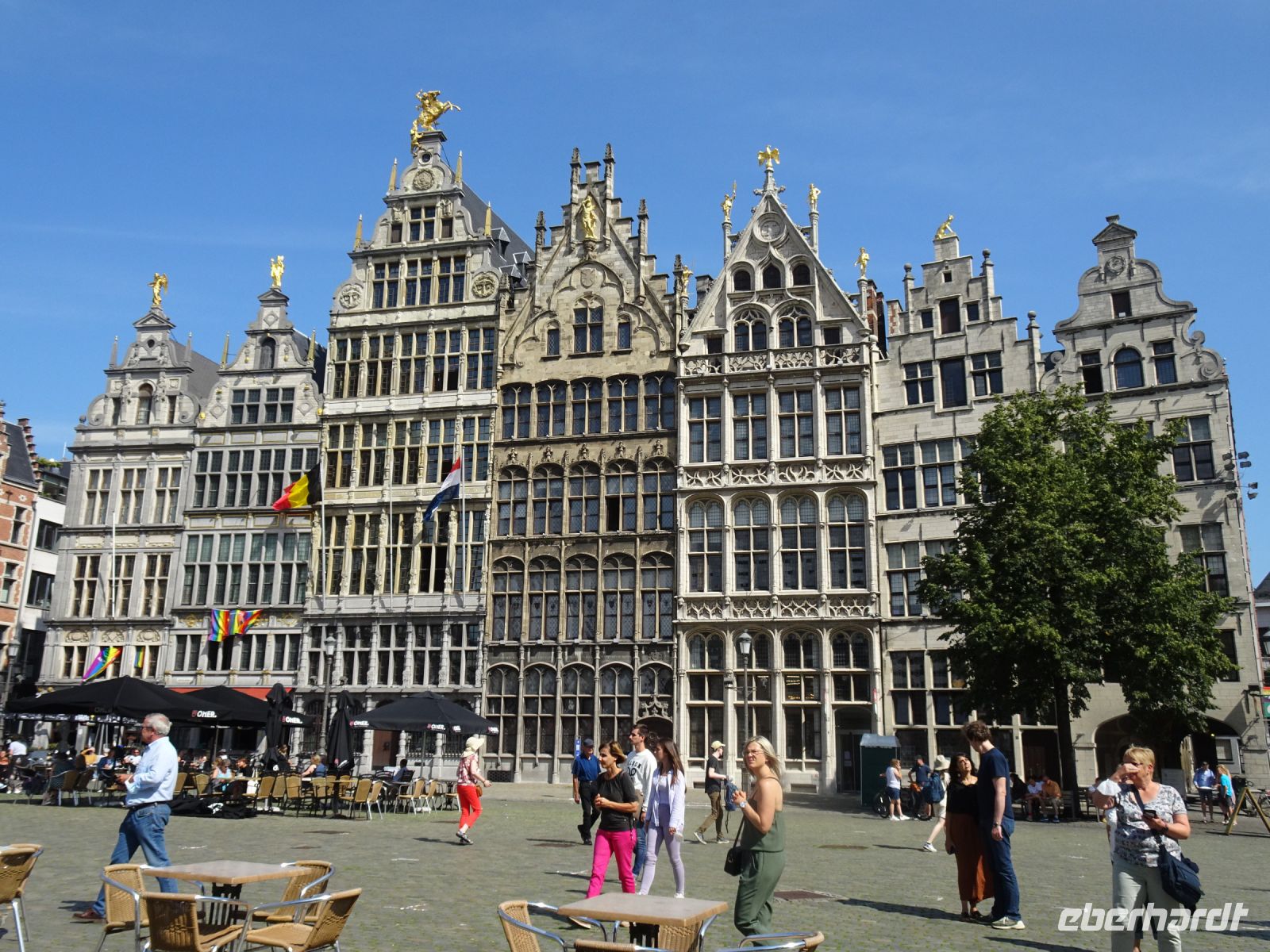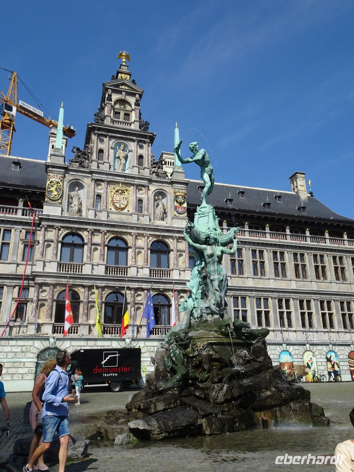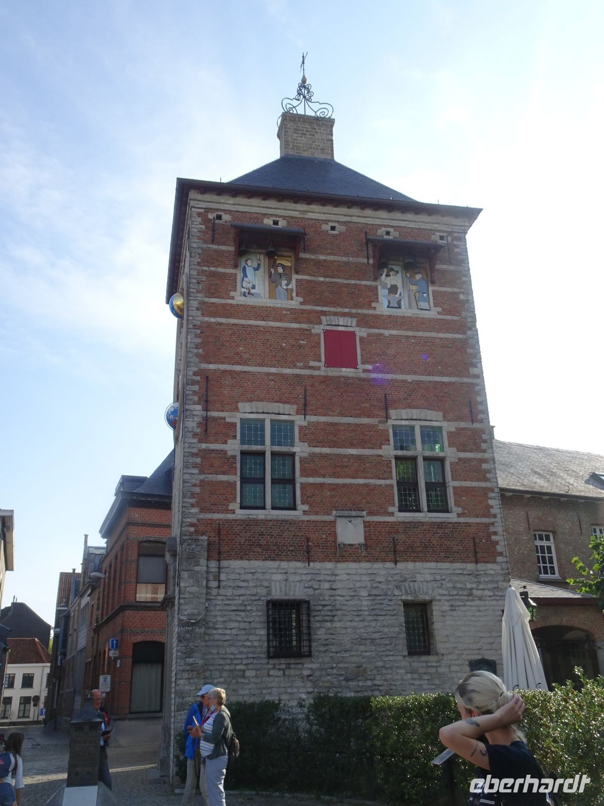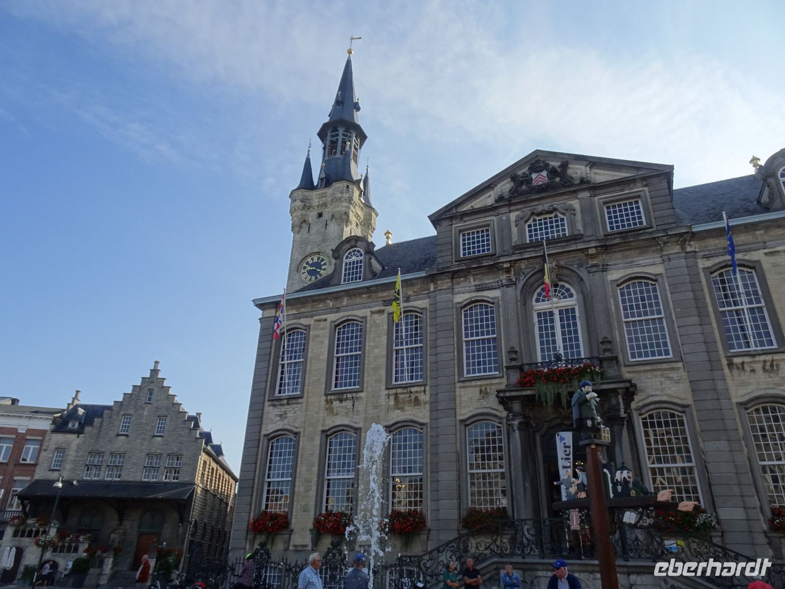 Am nächsten Tag ging es nach Antwerpen. Wir nutzten jedoch vorher die Gelegenheit, den kleinen Ort Lier zu besuchen. Mit einem der schönsten Marktplätze und einer sehr geschlossenen Gestaltung von Rathaus und Belfried hatten wir einen sehr guten Eindruck. Interessant auch der Zimmer-Turm, der durch den Autodidakt Louis Zimmer mit vielfältigen Zeitmessern versehen wurde und die langsamste Uhr der Welt besitzt. Ebenfalls in Lier besichtigten wir den sehr gut erhaltenen und noch bewohnten Begijnenhof. Bauarbeiten sorgen dafür, dass dies auch weiterhin so ist. Darin gibt es einen Kalvarienberg, eine Seltenheit. Durch den Park mit einer herrlichen Bogenbrücke über die Nete ging es zurück zu unserem Bus. In Antwerpen wurden wir schon zu unserem Stadtrundgang erwartet. Höhepunkte von Antwerpen waren neben dem Grote Markt mit dem Brabodenkmal, auf dem der Riese Brabo die dem Riesen Antigonus abgeschlagene Hand namensgebend in die Schelde wirft, vor allem die Liebfrauenkirche. In dieser, einer der größten Kathedralen der Welt, konnten vier Rubens Bilder besichtigt werden. Und hier begegnete uns mit dem Kreuzträger von Fabré wieder zeitgenössische Kunst. Besonders anschaulich war die Darstellung der Geschichte von Nello und Petrasche an der Skulptur vor der Liebfrauenkirche durch unseren Stadtführer. Weiterhin besuchten wir die ehemalige Vleeshuis (Fleischhalle), die heute als Musikinstrumentenmuseum genutzt wird, und gingen durch die schmalste Gasse. Am Groenplaats zeigte sich Rubens als Statue in beeindruckender Geste. Der an die Stadtführung anschließende Gang über die Einkaufsstraße Meir zum Rubens-Haus sowie zur Centraal Station mit dem naheliegenden Diamantenviertel unternahmen einige Reisegäste mit unseren Reiseleiter Hartwig. Leider waren für den Besuch des Rubens-Hauses keine Zeittickets mehr verfügbar. Eine Freizeit in Antwerpen konnte jeder selbst gestalten. Eine Empfehlung für den Rückweg gab es mit dem quirligen Vrijdagsmarkt und dem Museum Plantin-Moretus als Beispiel für eine frühere Druckwerkstatt.