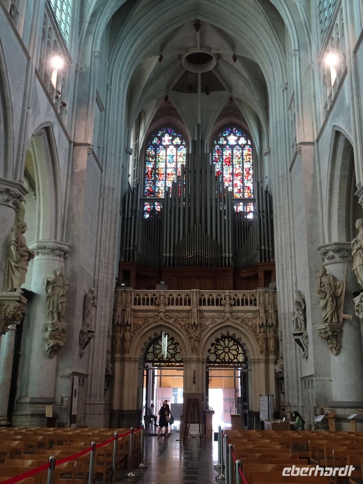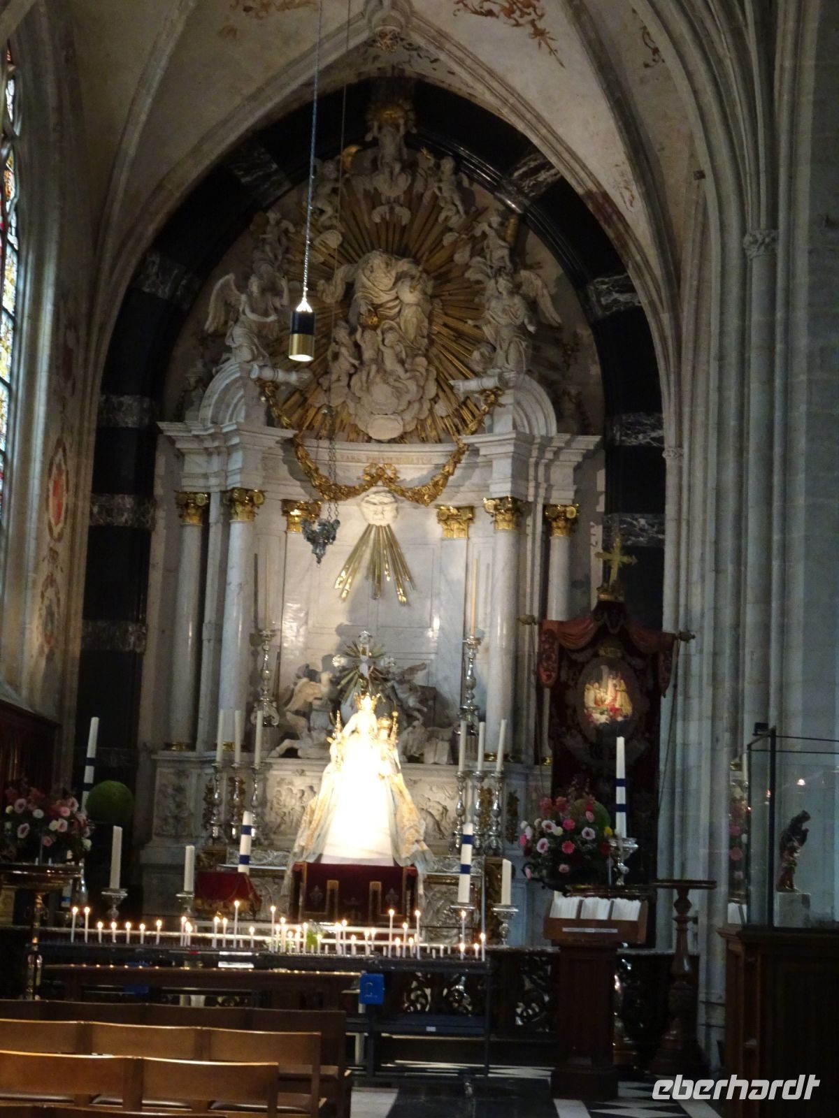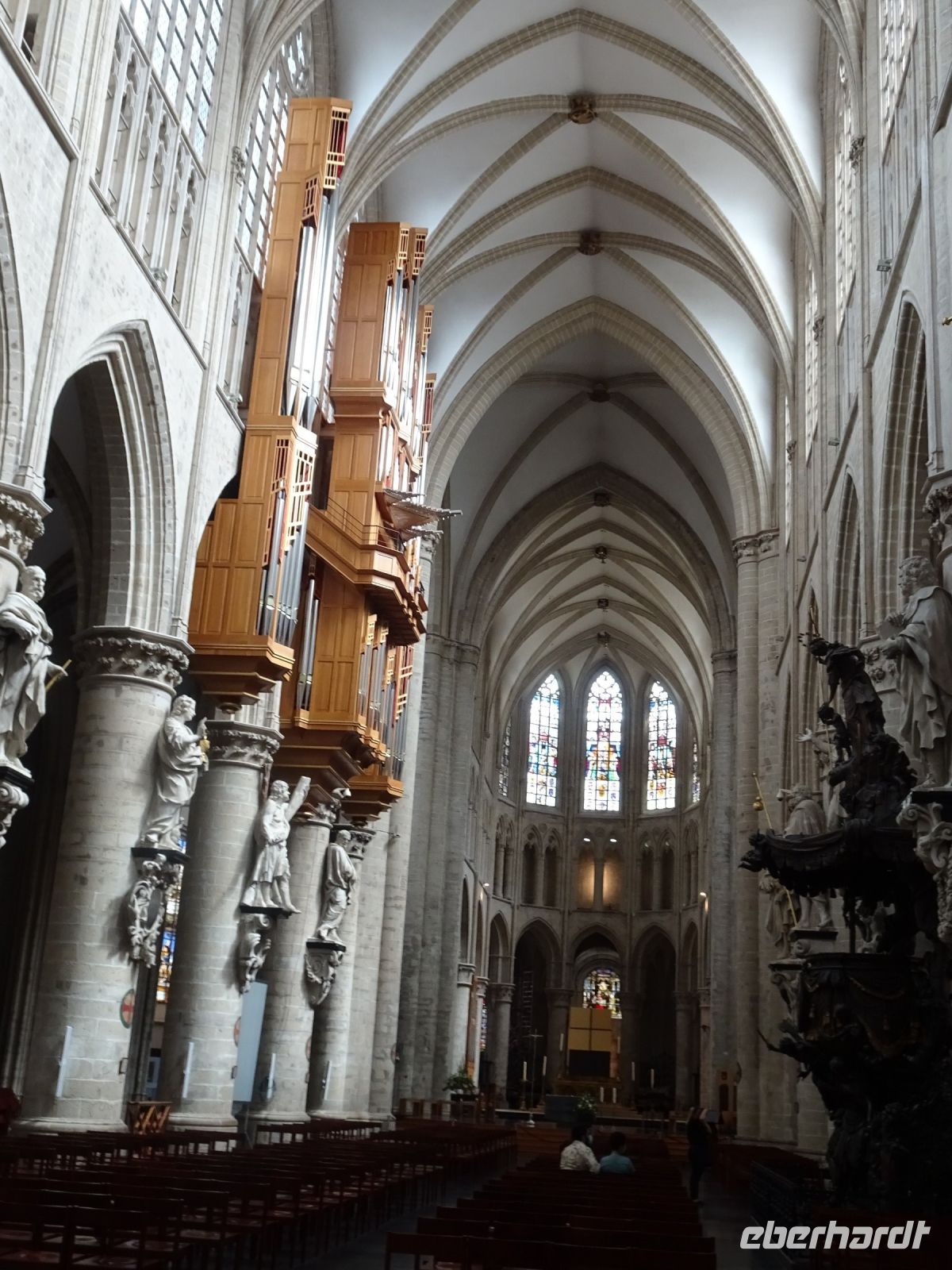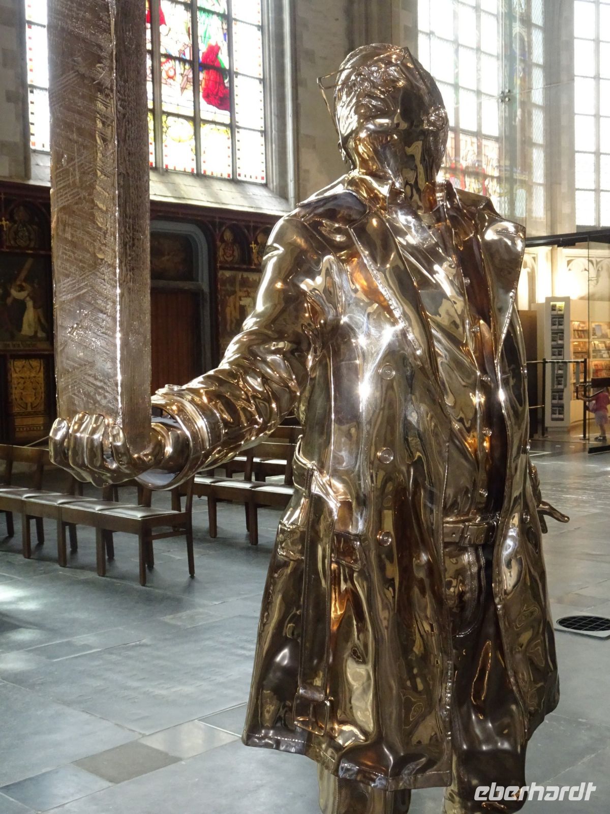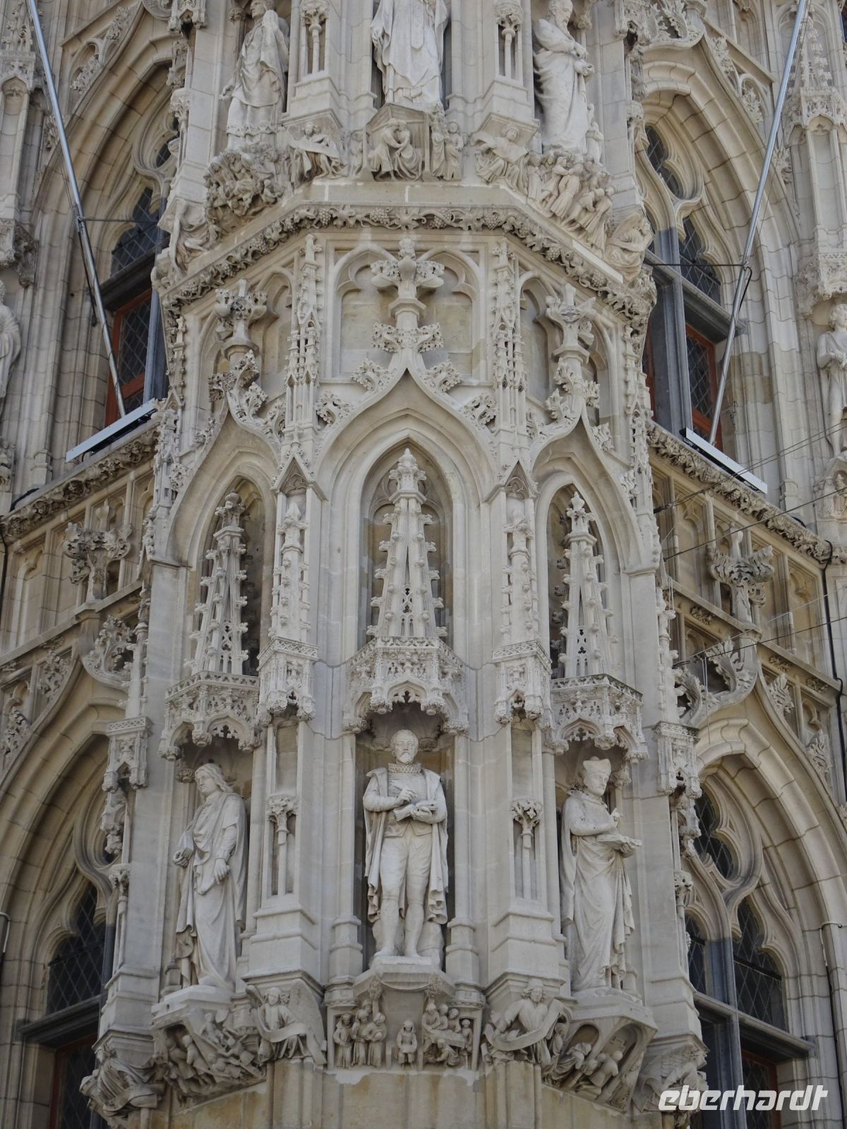 Am nächsten Tag ging es nach Antwerpen. Wir nutzten jedoch vorher die Gelegenheit, den kleinen Ort Lier zu besuchen. Mit einem der schönsten Marktplätze und einer sehr geschlossenen Gestaltung von Rathaus und Belfried hatten wir einen sehr guten Eindruck. Interessant auch der Zimmer-Turm, der durch den Autodidakt Louis Zimmer mit vielfältigen Zeitmessern versehen wurde und die langsamste Uhr der Welt besitzt. Ebenfalls in Lier besichtigten wir den sehr gut erhaltenen und noch bewohnten Begijnenhof. Bauarbeiten sorgen dafür, dass dies auch weiterhin so ist. Darin gibt es einen Kalvarienberg, eine Seltenheit. Durch den Park mit einer herrlichen Bogenbrücke über die Nete ging es zurück zu unserem Bus. In Antwerpen wurden wir schon zu unserem Stadtrundgang erwartet. Höhepunkte von Antwerpen waren neben dem Grote Markt mit dem Brabodenkmal, auf dem der Riese Brabo die dem Riesen Antigonus abgeschlagene Hand namensgebend in die Schelde wirft, vor allem die Liebfrauenkirche. In dieser, einer der größten Kathedralen der Welt, konnten vier Rubens Bilder besichtigt werden. Und hier begegnete uns mit dem Kreuzträger von Fabré wieder zeitgenössische Kunst. Besonders anschaulich war die Darstellung der Geschichte von Nello und Petrasche an der Skulptur vor der Liebfrauenkirche durch unseren Stadtführer. Weiterhin besuchten wir die ehemalige Vleeshuis (Fleischhalle), die heute als Musikinstrumentenmuseum genutzt wird, und gingen durch die schmalste Gasse. Am Groenplaats zeigte sich Rubens als Statue in beeindruckender Geste. Der an die Stadtführung anschließende Gang über die Einkaufsstraße Meir zum Rubens-Haus sowie zur Centraal Station mit dem naheliegenden Diamantenviertel unternahmen einige Reisegäste mit unseren Reiseleiter Hartwig. Leider waren für den Besuch des Rubens-Hauses keine Zeittickets mehr verfügbar. Eine Freizeit in Antwerpen konnte jeder selbst gestalten. Eine Empfehlung für den Rückweg gab es mit dem quirligen Vrijdagsmarkt und dem Museum Plantin-Moretus als Beispiel für eine frühere Druckwerkstatt.