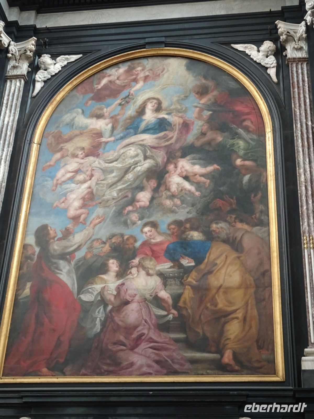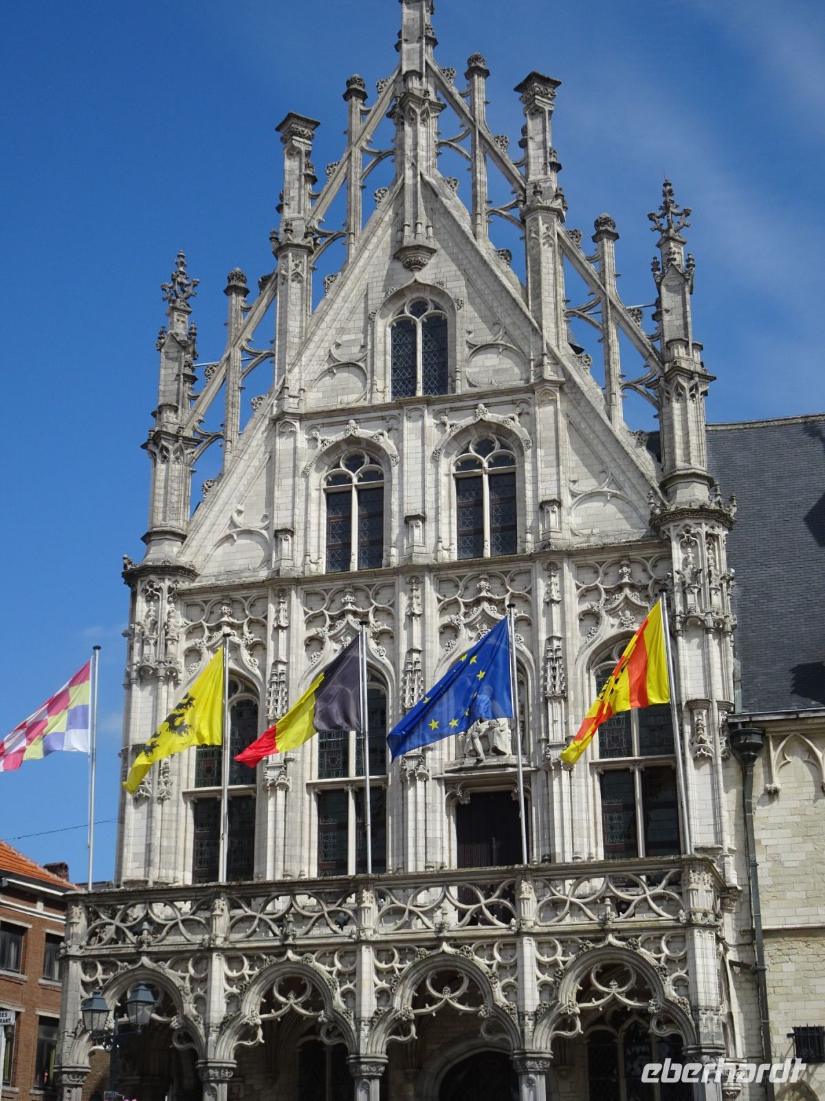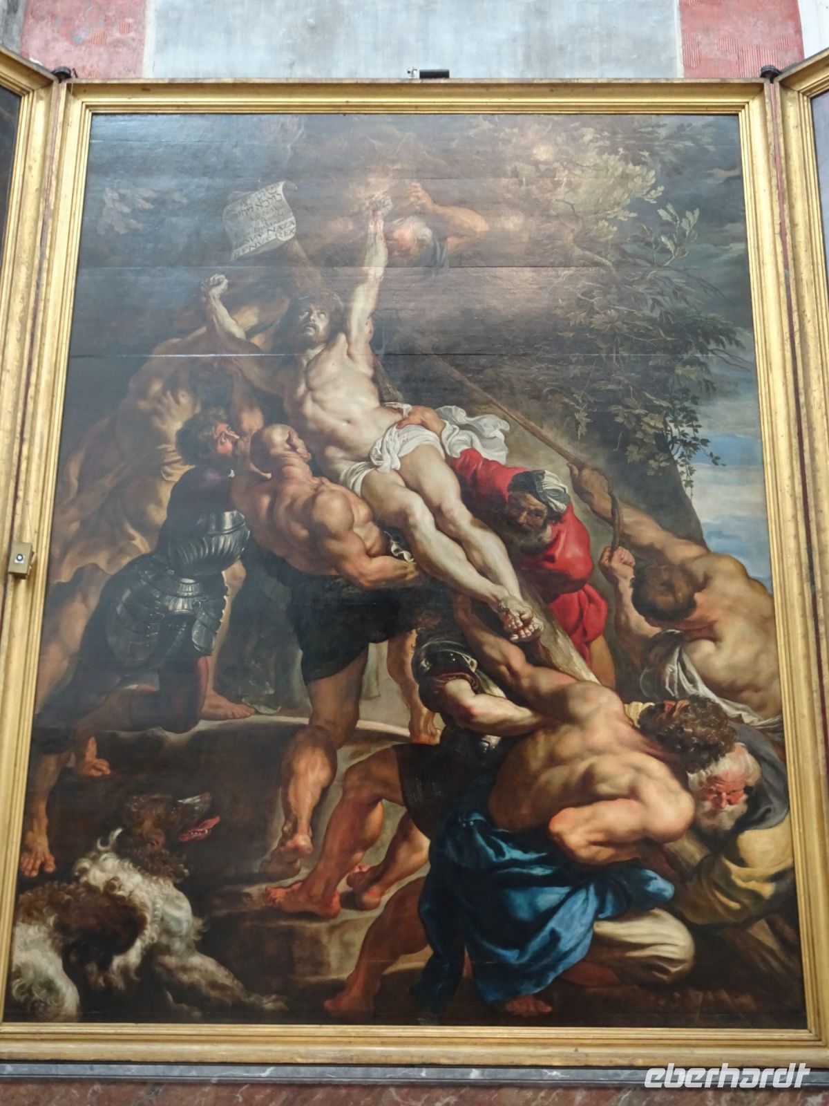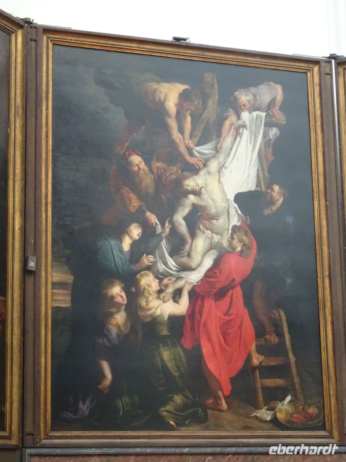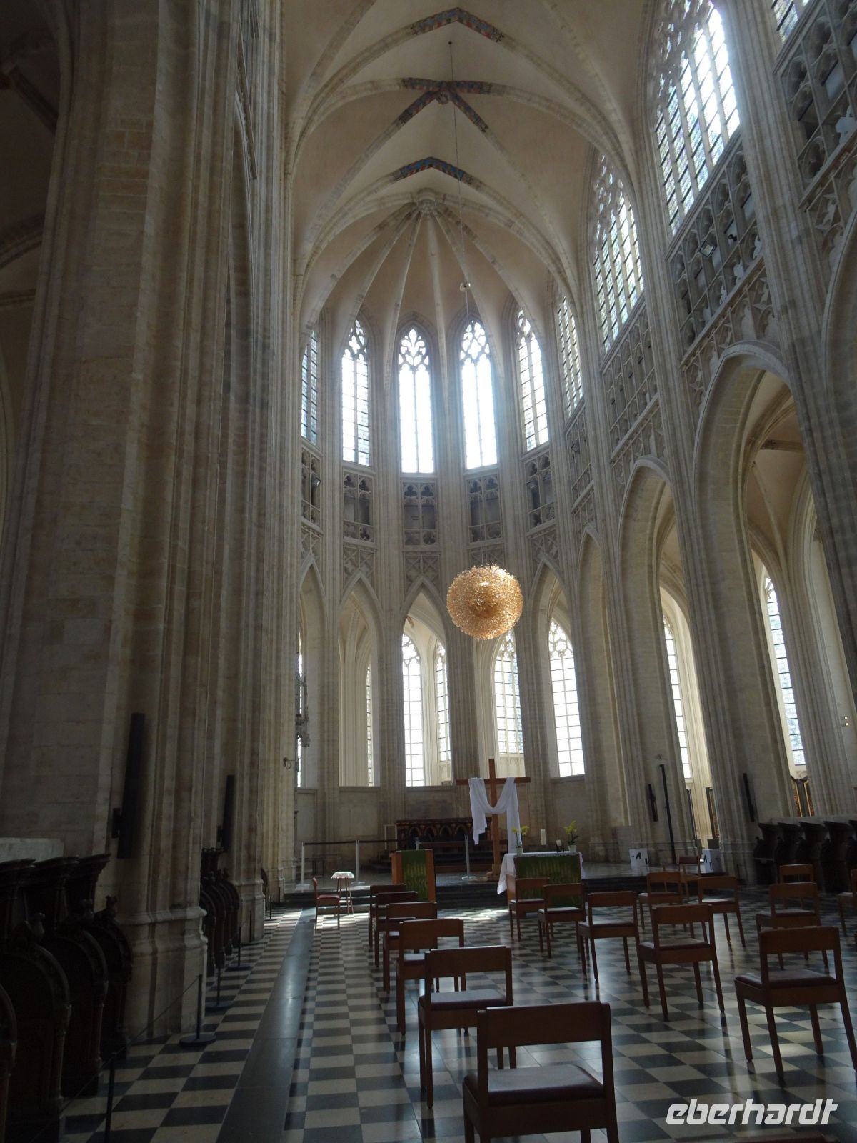 Am nächsten Tag ging es nach Antwerpen. Wir nutzten jedoch vorher die Gelegenheit, den kleinen Ort Lier zu besuchen. Mit einem der schönsten Marktplätze und einer sehr geschlossenen Gestaltung von Rathaus und Belfried hatten wir einen sehr guten Eindruck. Interessant auch der Zimmer-Turm, der durch den Autodidakt Louis Zimmer mit vielfältigen Zeitmessern versehen wurde und die langsamste Uhr der Welt besitzt. Ebenfalls in Lier besichtigten wir den sehr gut erhaltenen und noch bewohnten Begijnenhof. Bauarbeiten sorgen dafür, dass dies auch weiterhin so ist. Darin gibt es einen Kalvarienberg, eine Seltenheit. Durch den Park mit einer herrlichen Bogenbrücke über die Nete ging es zurück zu unserem Bus. In Antwerpen wurden wir schon zu unserem Stadtrundgang erwartet. Höhepunkte von Antwerpen waren neben dem Grote Markt mit dem Brabodenkmal, auf dem der Riese Brabo die dem Riesen Antigonus abgeschlagene Hand namensgebend in die Schelde wirft, vor allem die Liebfrauenkirche. In dieser, einer der größten Kathedralen der Welt, konnten vier Rubens Bilder besichtigt werden. Und hier begegnete uns mit dem Kreuzträger von Fabré wieder zeitgenössische Kunst. Besonders anschaulich war die Darstellung der Geschichte von Nello und Petrasche an der Skulptur vor der Liebfrauenkirche durch unseren Stadtführer. Weiterhin besuchten wir die ehemalige Vleeshuis (Fleischhalle), die heute als Musikinstrumentenmuseum genutzt wird, und gingen durch die schmalste Gasse. Am Groenplaats zeigte sich Rubens als Statue in beeindruckender Geste. Der an die Stadtführung anschließende Gang über die Einkaufsstraße Meir zum Rubens-Haus sowie zur Centraal Station mit dem naheliegenden Diamantenviertel unternahmen einige Reisegäste mit unseren Reiseleiter Hartwig. Leider waren für den Besuch des Rubens-Hauses keine Zeittickets mehr verfügbar. Eine Freizeit in Antwerpen konnte jeder selbst gestalten. Eine Empfehlung für den Rückweg gab es mit dem quirligen Vrijdagsmarkt und dem Museum Plantin-Moretus als Beispiel für eine frühere Druckwerkstatt.