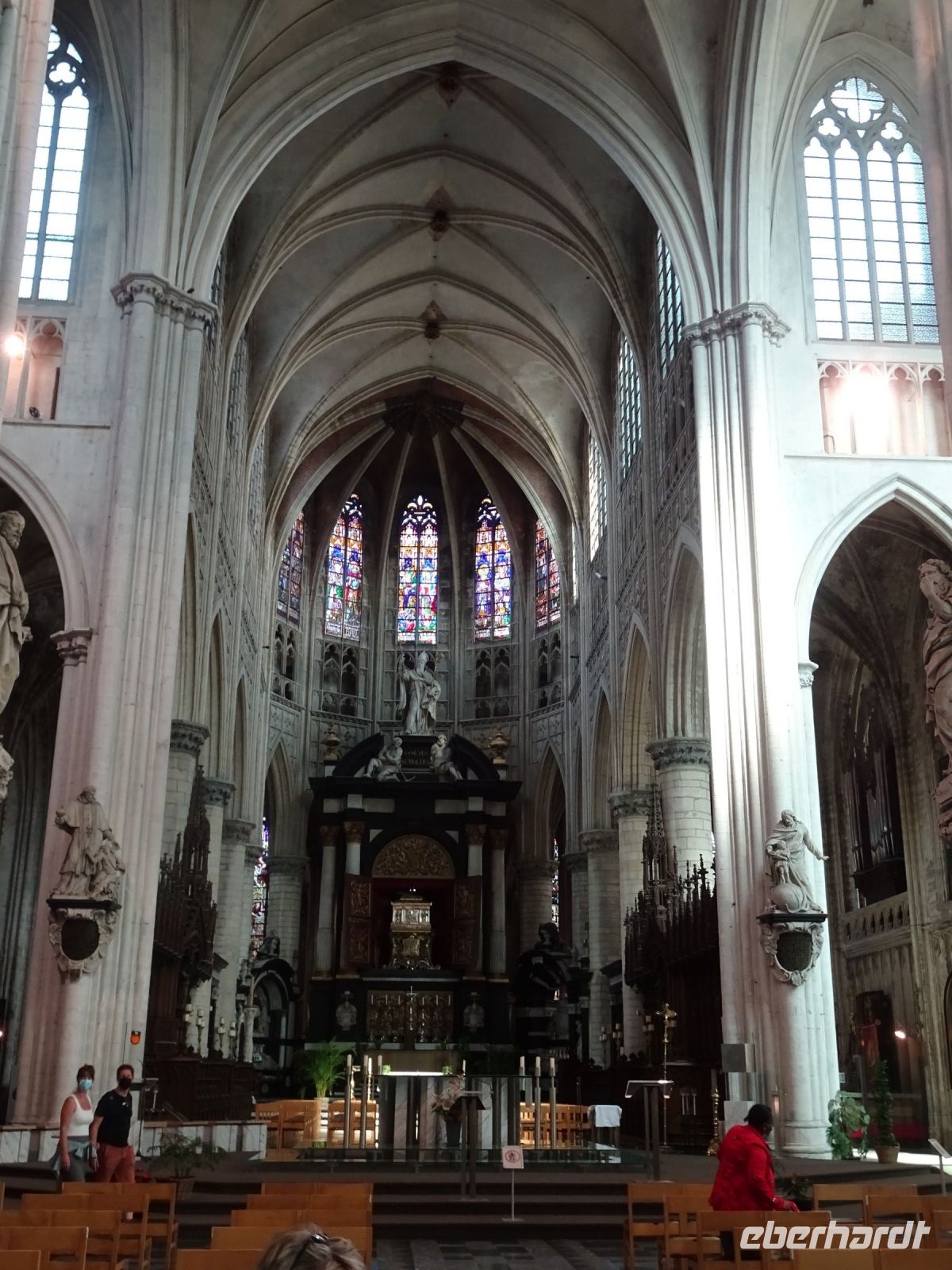 lokaler Stadtführer stieg zu uns in den Bus. Der ungewöhnlich geringe Verkehr (bei den EU-Institutionen wird weitgehend Homeoffice praktiziert) bot ideale Voraussetzungen für eine ausgiebige Stadtrundfahrt zur Museumsmeile, der royalen Oberstadt sowie dem EU-Viertel. Auch die Jugendstilbauten in den Stadtteilen von Brüssel konnten wir kennenlernen. Der anschließende Stadtrundgang führte uns durch die Galerie St-Hubert zum Großen Markt, den wir in aller Ausführlichkeit erläutert bekamen. Abschließend war der Gang zum Brunnen mit Manneken Pis obligatorisch. Manneken Pis war diesmal vollständig unbekleidet, da die Garderobe für den Feiertag Mariä Himmelfahrt noch nicht angelegt war! Wir lernten die Markthalle St-Géry kennen und beendeten unsern Stadtrundgang an der im Umbau befindlichen Börse. Unser Stadtführer gab Empfehlungen zu den kulinarischen Genüssen von Brüssel und verweis dabei insbesondere auf Waffeln, Fritten und eine gute Tasse Kaffee. Am Nachmittag ging es in die Chocolaterie Duval. Als frühere „Garagenfirma" gab es eine Präsentation der Herstellung, der Qualitäten und der Erzeugnisse aus Schokolade. Und wir durften selbstverständlich alle kosten. Wir nutzten die Gelegenheit, uns mit den qualitativ hochwertigen Erzeugnissen diese Chocolaterie zu versorgen. Unser Rückweg führte uns zum Atomium. Die Edelstahlkugeln erstrahlten in bestem Glanz, sodass unsere Fotoaufnahmen die herrliche Brillanz dieses anlässlich der Weltausstellung 1958 erstellten Monuments zeigten. Mit vielen Eindrücken kehrten wir am Abend nach Mechelen zurück.