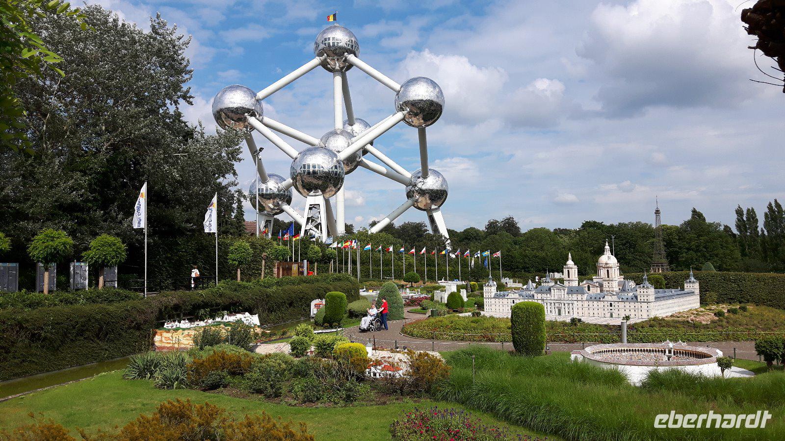 Den Nachmittag verbringen wir dann im Bruparck, einem Freizeitpark der unter anderem auch das Mini-Europa beherbergt. Ein ebener Rundweg ermöglicht nach dem anstrengenden Kopfsteinpflaster der Altstadt ein entspanntes Rollen vorbei an den Miniaturnachbauten berühmter europäischer Gebäude.