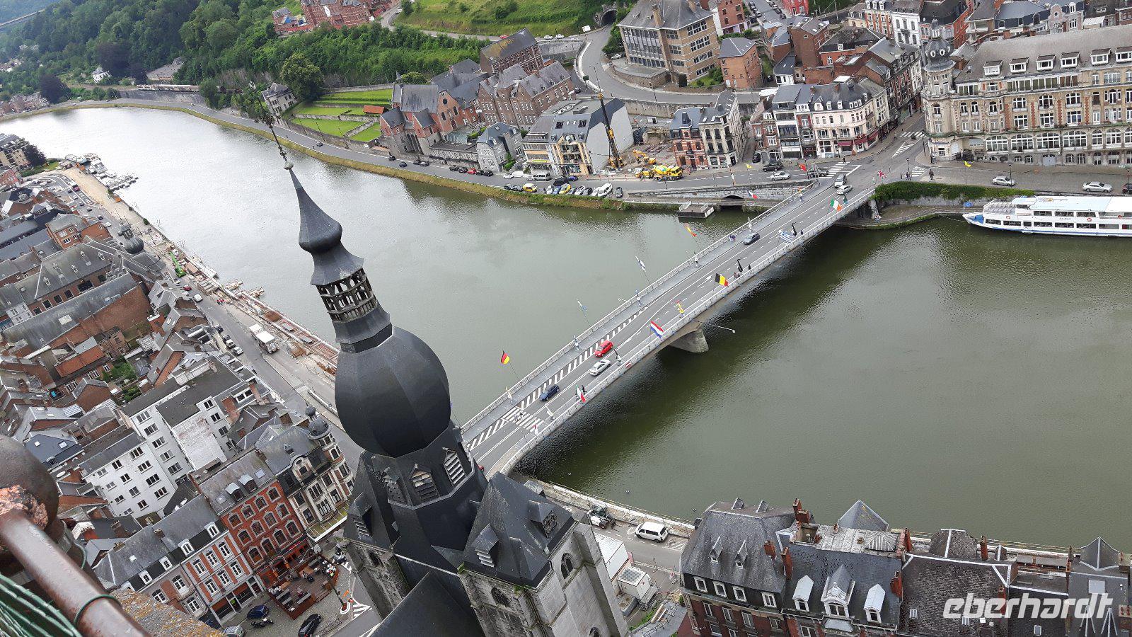 In Dinant besuchen wir die mächtige Zitadelle welche neben interessanten Ausstellungen zur oft blutigen Geschichte dieser Maasregion vor allem auch einen phantastischen Blick von der Aussichtsterrasse über das Flusstal und die Stadt erlaubt.
