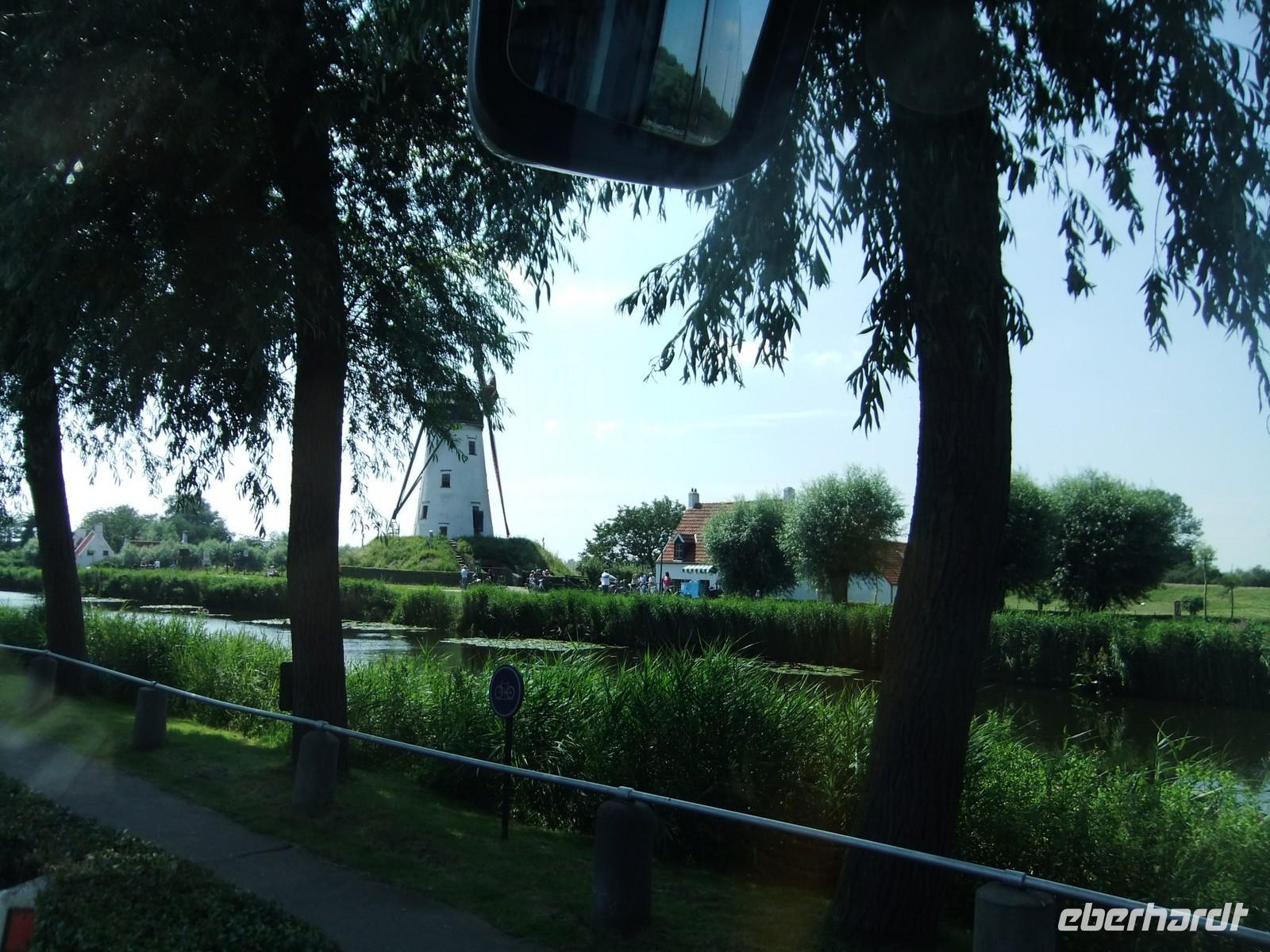 Es ist ein Sonntag voller Sonnenschein. Die Belgier hat es zur nur 72 km langen Küste und dem unmittelbaren Hinterland gezogen. Wir nehmen vergeblich Anlauf, um im kleinen Ort Damme, in dem de Coster seinen Ulenspiegel angesiedelt hat, eine Parkmöglichkeit für den Bus zu finden. Der Ort ist mit Menachen völlig überfüllt. So bekommen wir aber einen Eindruck von der flandrischen Landschaft und dem Poldergebiet hinter den Dünengürtel an der Nodsee. In Oostende wimmelt es vor Menschen, die Hafen- und Bäderstadt ist nur eine reichliche Autostunde von Brüssel entfernt. Wir fahren bald wieder ab, auch um der Lawine der Zehntausenden Badegäste zu entgehen, die ja irgendwann wieder in das Landesinnere zurückkehren werden..