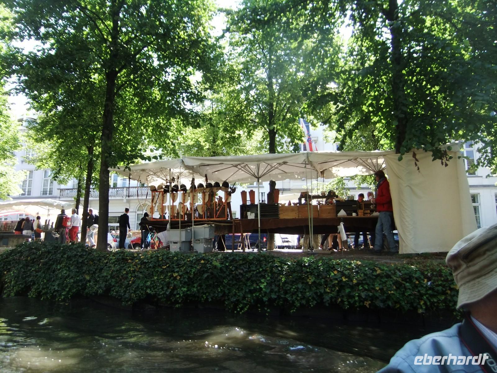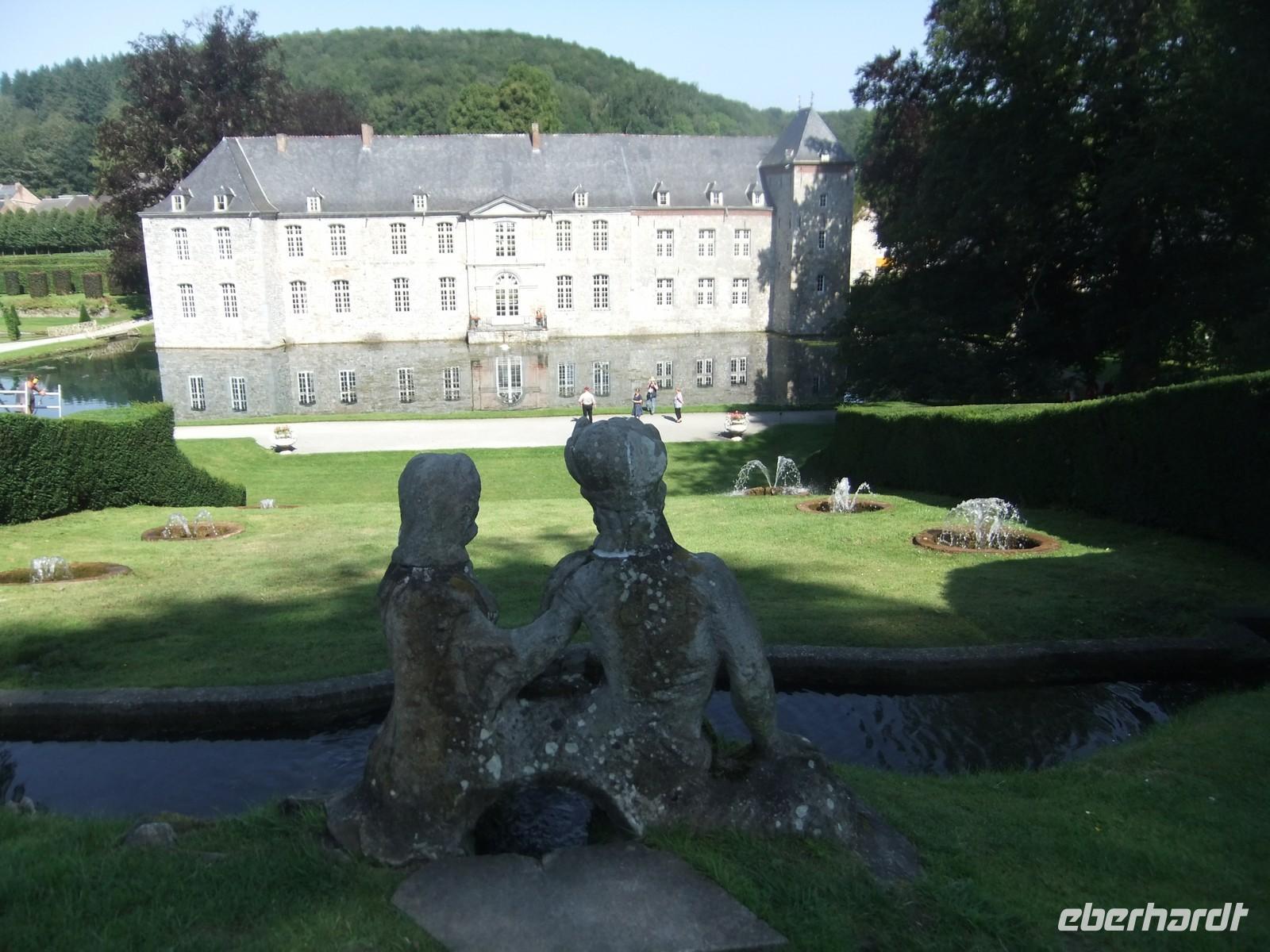 Auch Namur hat eine starke Zitadelle. Das Maastal ist immer ein Einfallstor nach Süden, nach Frankreich, gewesen. Das weitläufige Gelände auf dem Hügel über der Stadt trägt die ausgedehnte Zitadelle, die über Jahrhunderte erweitert wurde, schöne Parks und Einrichtungen für Sport und Kulturveranstaltungen. In Annevoie besuchen wir den Park eines Schlosses, das in 2 Etappen im 17. und 18.Jhdt. errichtet wurde, aber nicht zugänglich ist. Dafür entschädigt aber die Gartenanlage, die Elemente des französischen Barockgartens, des italienischen Renaissancegartens und des englischen Landschaftsparks vereinigt. Kleine Bäche füllen ein 365 m langes Reservoir. Wer es ganz abschreitet wird 1 Jahr jünger. Das gesammelte Wasser kommt in Kaskaden; sprudelnden Brunnen und Fontänen überll im Park wieder zum Vorschein. Auf dem größten Teil des Rundganges läuft man im Schatten der Bäume, man hört außer Vogelgezwizscher kaum einen Laut. Der Straßenlärm ist genügend weit entfernt. Es ist eine erholsame Stunde auf einer Reise, die durch ständig wechselnde Endrücke und viele Informationen geprägt ist.