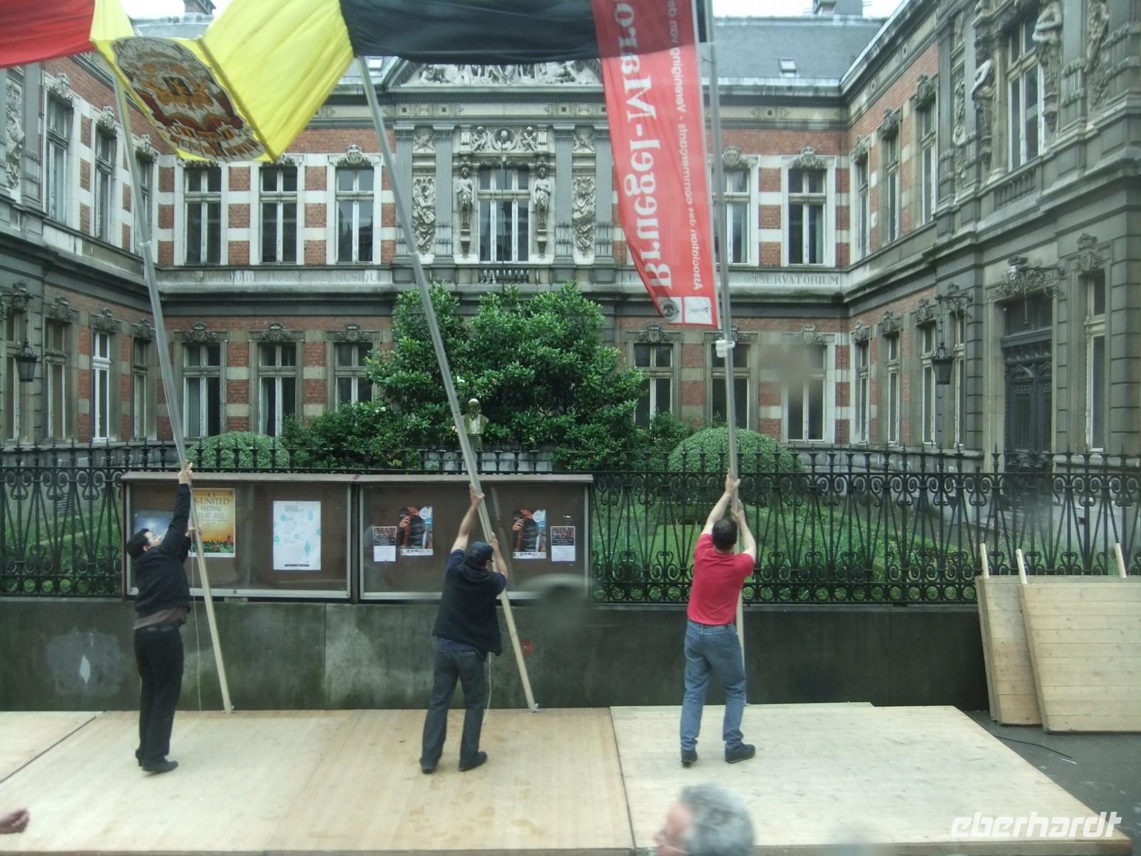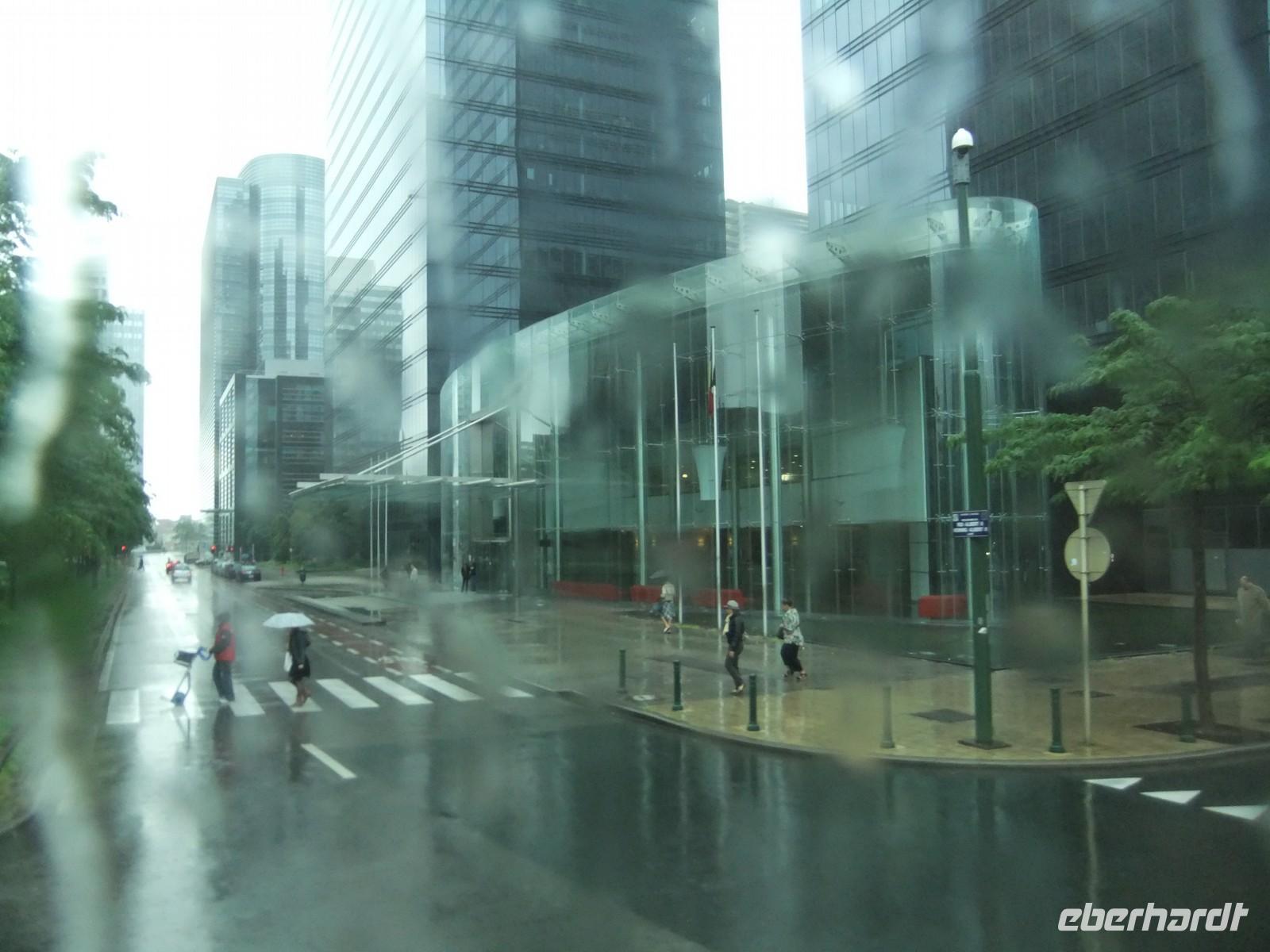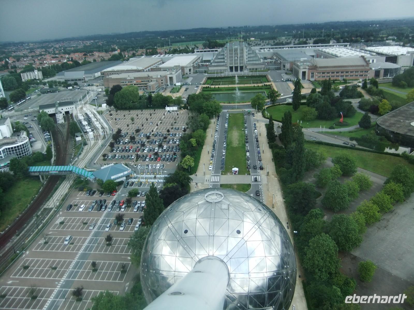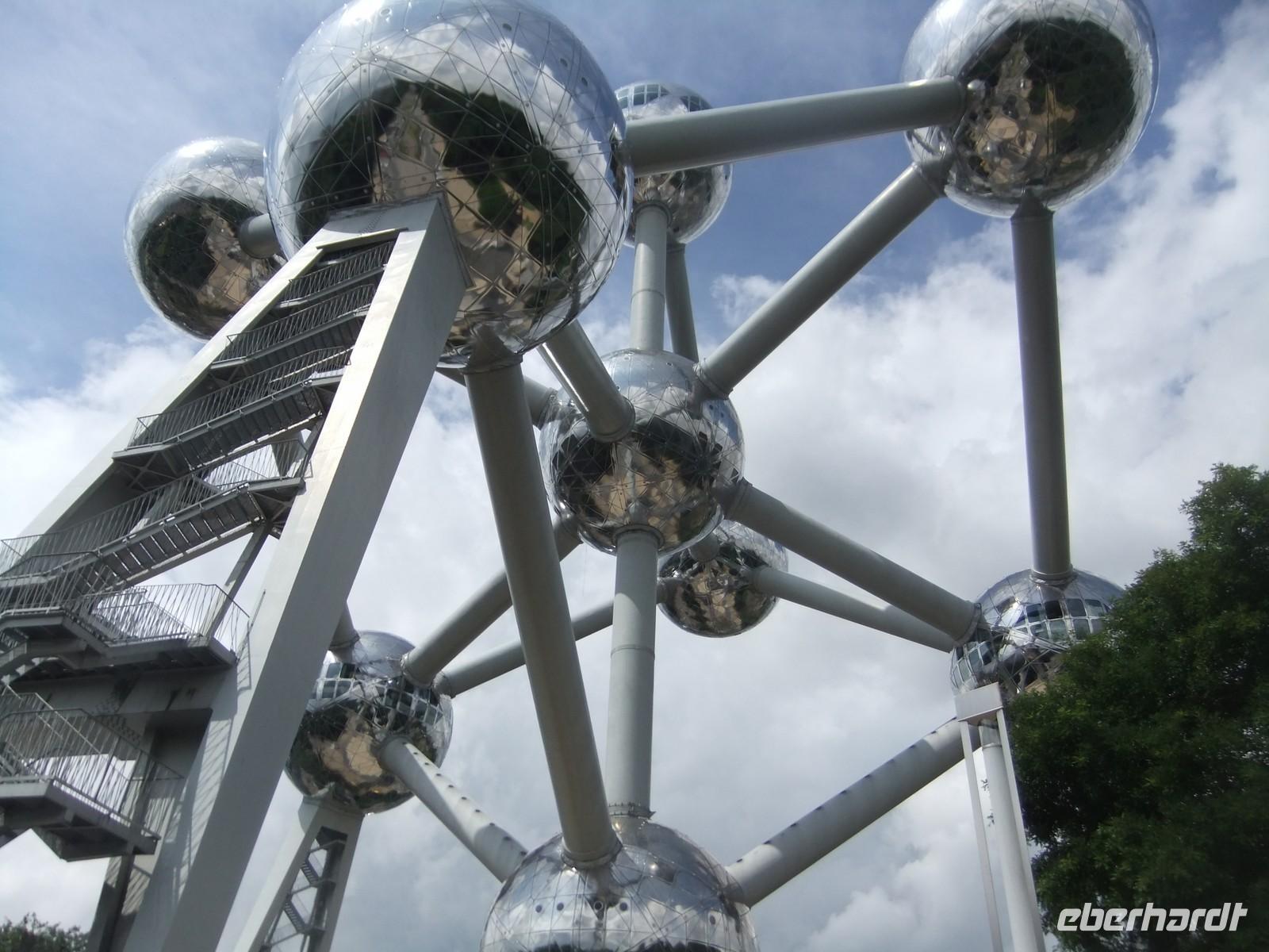 Es wird eine Reise mit viel Sonne werden. Man kann deshalb dafür Verständnis haben, dass vorher noch einmal Straßen und Gebäude gereinigt werden, mit viel Regenwasser. Aber jedes Mal, wenn wir den Bus verlassen, regnet es kaum noch. Wir fahren zuerst in die nördliche Umgebung des Vijfhoeks, des Fünfeckes der inneren Boulevards. In Laeken liegt die ausgedehnte Domäine des Königs, das Schloss, die riesigen Gewächshäuser, der Chinesische Pavillon, der Japanische Turm, Denkmäler und die Kirche mit der königlichen Gruft. Nicht weit davon kündet das Atomium als letzte Zeuge von der Weltausstellung 1958.