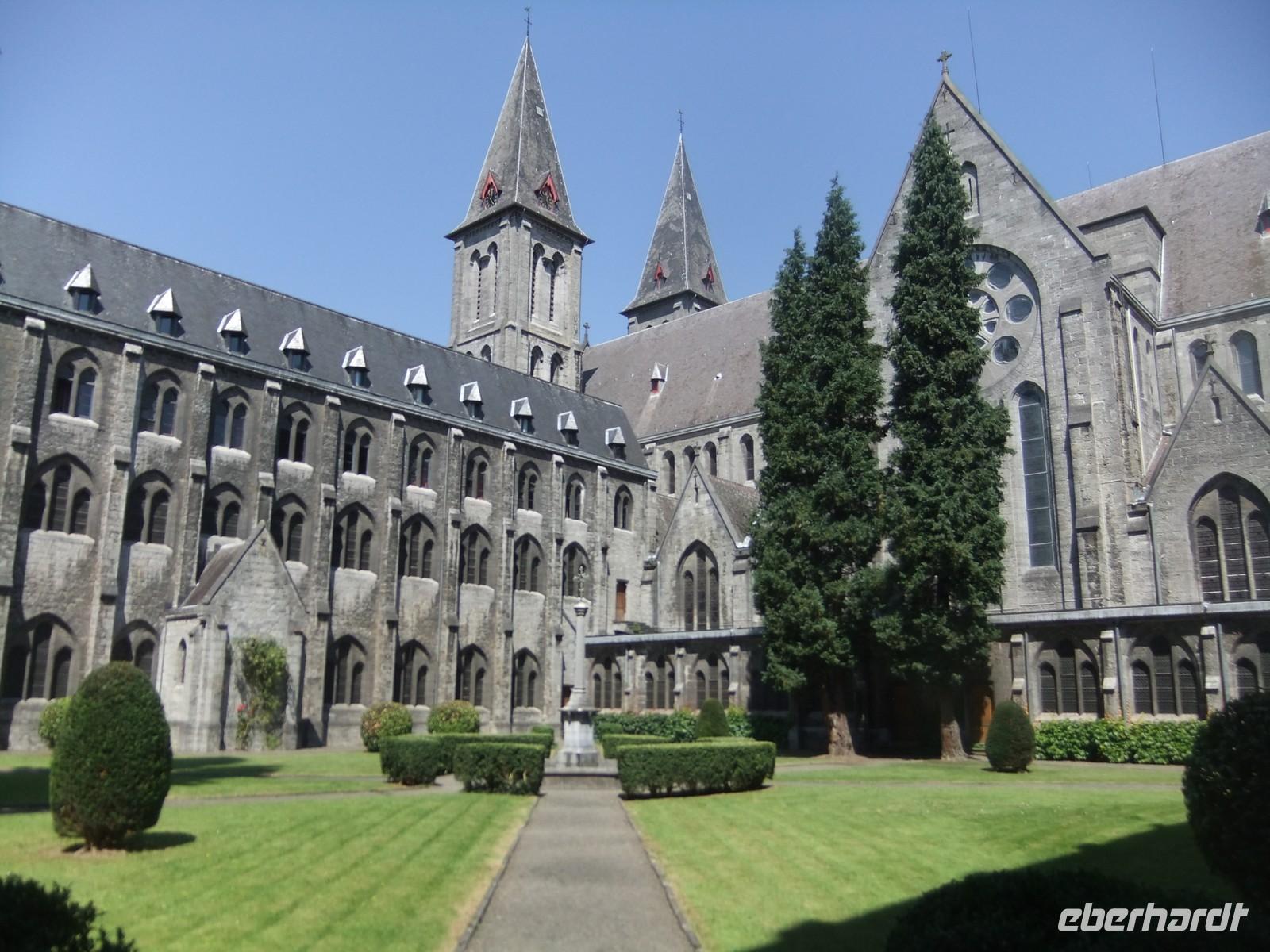 Erholsam auch die Führung durch das Kloster von Maredsous, eines von heute etwa 30 Benediktinerklostern in Belgien. Unser Klosterführer erzählt vom Werdgang des Mönchtumes und seiner Bedeutung für die Kultur des Abendlandes. Man betet hier sechsmal am Tage, aber arbeitet auch in der Bibliothek oder bei der Leitung des Produktionprozesses, so wie des der heilige Bendikt wollte. Für Belgien sind die Bendiktiner der 3. Generation, die Trappisten heute noch bedeutend. Sie sind zwar zum absoluten Schweigen verpflichtet, unterhalten aber seit Jahrhundertn 7 heute noch bestehende Bierbrauereien. Mardesous selbst produziert große Mengen Brot, Käse und Bier. Wir können uns von der Qualität im schattigen Garten des großen Abteirestaurants überzeugen. Mit Bier lockt man Leute. Viele Belgier besuchen das Kloster. (Mardesous liegt an der Route der Biere).