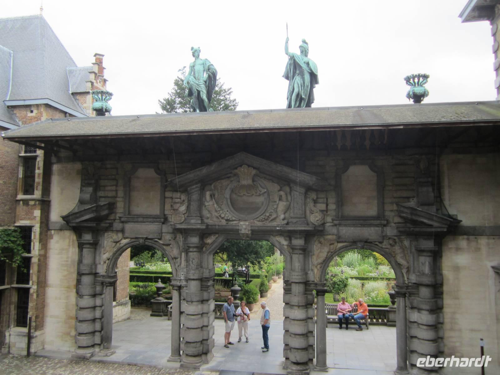 Unsere Fahrt nach Antwerpen beginnt heute bereits 8.30 Uhr. Was wird uns erwarten ? Antwerpen ist bekannt für den Diamantenhandel, Modetrends, ist Belgiens Tor zur Welt (einer der größten Seehäfen Europas) und natürlich die Stadt für Rubensfreunde. Bei Ankunft auf dem Parkplatz an der Schelde werden wir schon von unseren Stadtführern erwartet. Die Gruppe wird geteilt und geführt werden wir von Sofie und Willy. Mit viel Begeisterung werden uns die Geschichte und die Gebäude der Stadt vermittelt. Schwerpunkt der Führung sind die Stadtburg an der Schelde, das Vleeshuis(Fleischhalle),der Grote Markt in dessen Mitte Jef Lambeaux 1887 den großen Brabo Brunnen aufstellte. Dargestellt ist Silvius Brabo, wie er die dem Riesen Amtigonus abgeschlagene Hand in die Schelde. Aus dem „Hand te werpen" bezog Antwerpen seinen Namen. Weiter geht es über den Vrijdagmarkt,südlich der Kathedrale zum Haus " De golden Passer", in dem sich die Plantische Druckerei befindet, (1549 von Christopfe Plantin gegründet) sie betrieb 16 Pressen und war damit die größte ihrer Zeit in Europa. Mit der Führung in der Liebfrauen-Kathedrale, in der zwei berühmte Meisterwerke von Peter Paul Rubens herausragen. ( „Die Kreuzaufrichtung" und die „Kreuzabnahme" Beide Gemälde entstanden 1610 und 1614 kurz nach Rubens' Rückkehr aus Italien) endet unsere Stadtführung. Sofie und Willy haben uns ihre Stadt sehr gut vermittelt. Nach der Stadtführung nehmen wir uns "Zeit" für eine Mittagspause. Danach bleiben wir auf den Spuren von Rubens. Gemeinsam gehen wir über den Grünmarkt zum Rubenshaus.(ca. 15 min). Er hatte es 1610 - ein Jahr nach der Heirat mit Isabella Brant - gekauft und lebte bis zu seinem Tod 1640 in dem Haus. Die Rubensfreunde konnten individuell das Haus erkunden. Gegen 16.30 Uhr fahren wir zurück nach Brüssel und treffen uns zum Abendessen im Hotel.