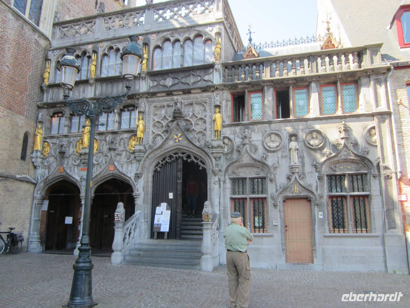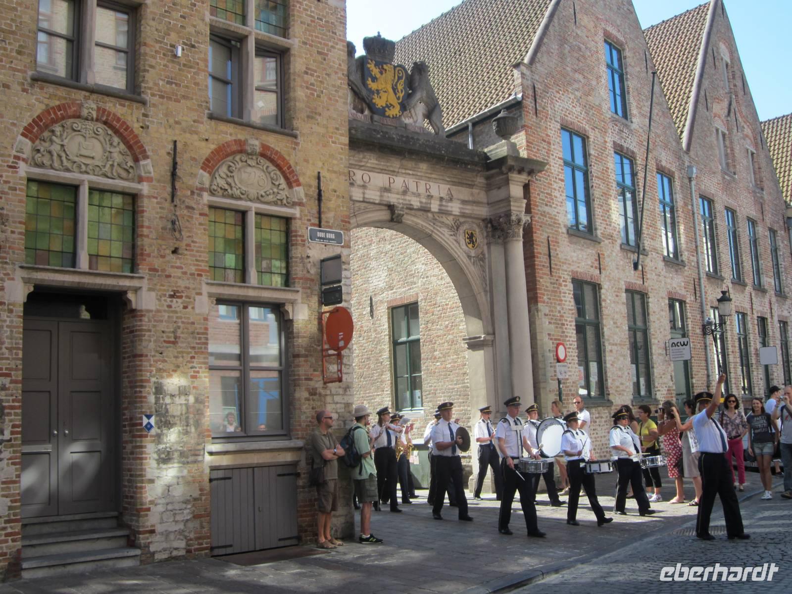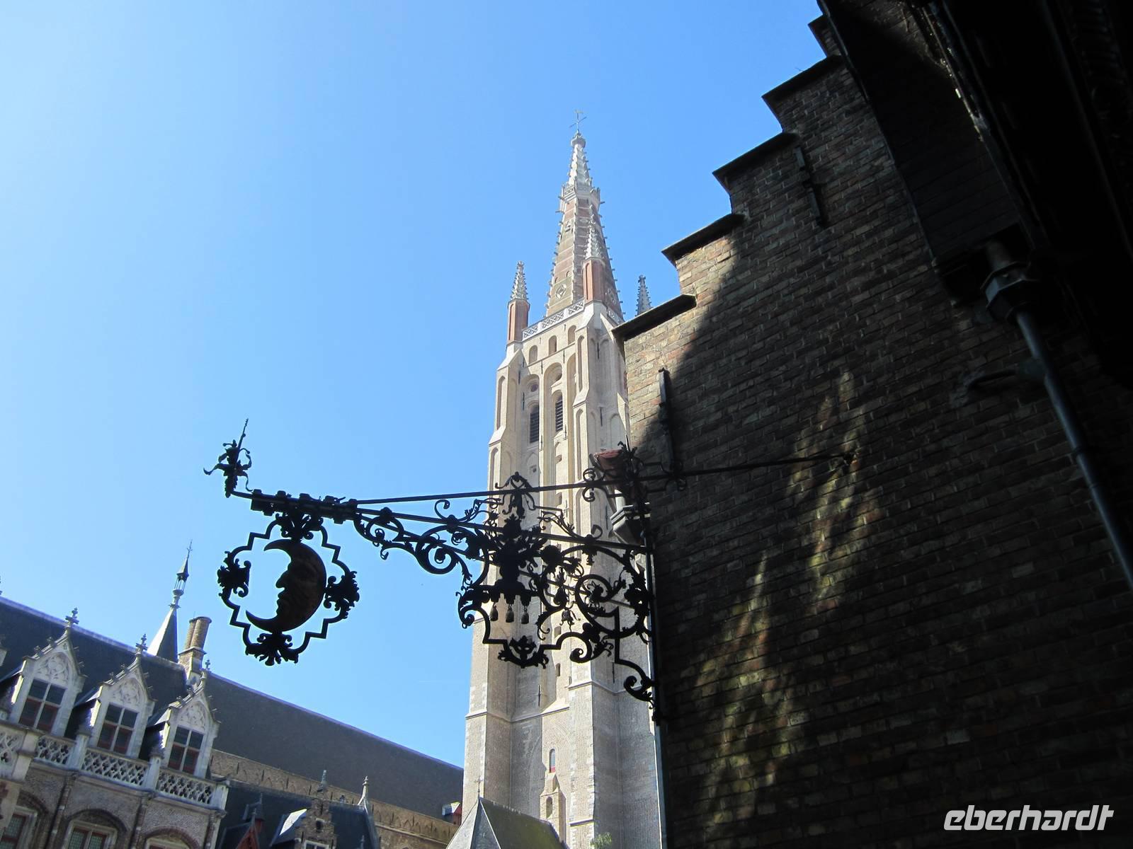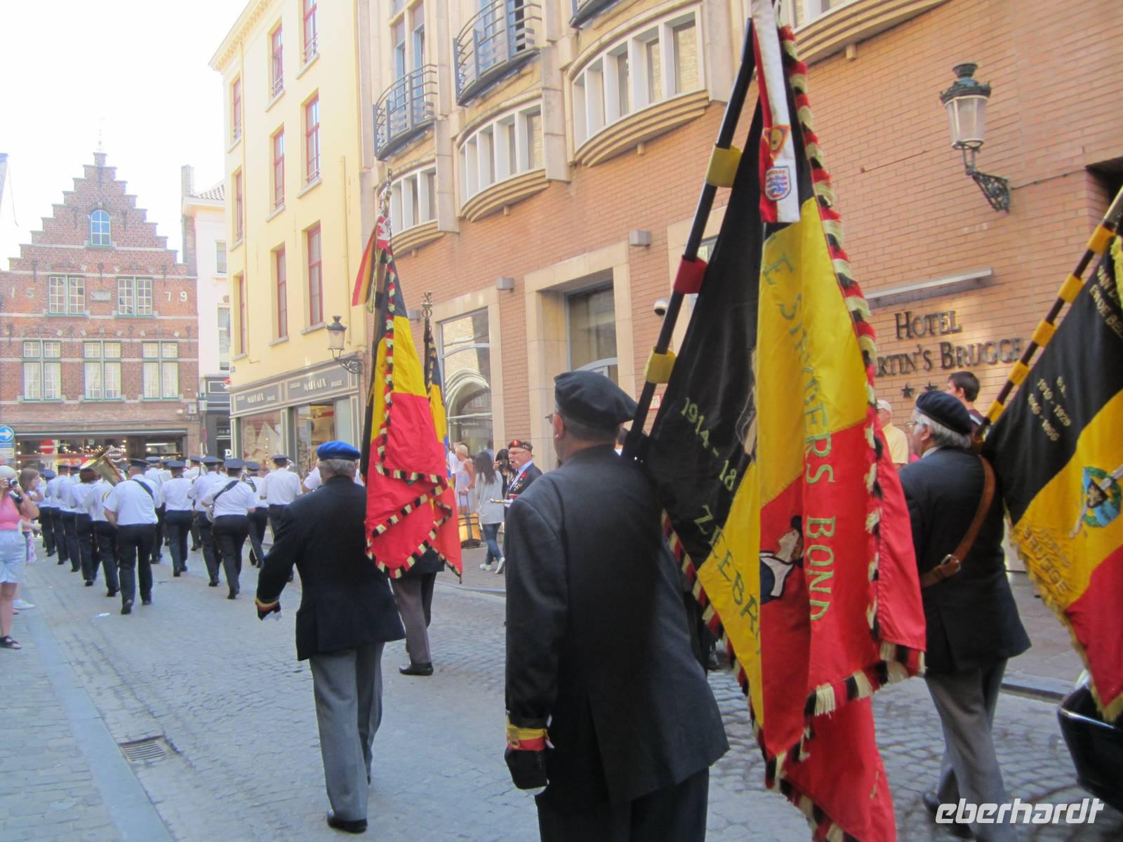 Wir erleben einen historisch bedeutsamen Tag in Brüssel. Heute ist nicht nur der Nationalfeiertag von Belgien, sondern Philippe wird neuer König. Sein Vater König Albert II wird ihn heute den Posten des Staatschefs übergeben. Eine Glamourparty wie in den Niederladen soll es aber nicht geben. Wir verlassen heute Brüssel und werden vielleicht das Feuerwerk heute Abend erleben. Auf unserem Programm steht heute Brügge, die schönste Stadt von Flandern. Dabei geht es auf unserer Fahrt nach Westflandern an Gent vorbei. Unterhaltsam ist die Entdeckung der besonderen Rasse "Kuhschweine" oder Schweinekühe ? Jedenfalls ist es eine Züchtung mit besonders prallen Muskelpaketen. Gegen 9.50 Uhr treffen wir auf den Parkplatz in Brügge ein, wo unser Stadtführer auf uns wartet. Der Gang durch die Gassen der fast vollständig mittelalterlich gebliebenen Innenstadt ist zauberhaft. Dabei sind die Schwerpunkte der Begijnhof, die Liebfrauenkirche mit der „Madonna von Brügge" von Michelangelo, der Grote Markt mit Belfried und der Burg (war ursprünglich der zentrale Platz von Brügge) mit dem Rathaus und der Heiligblutkapelle. Gegen Mittag sehen wir uns die Stadt noch einmal bei einer Grachtenrundfahrt an. Anschließend haben wir noch Freizeit um die bezaubernde Stadt bei schönstem Wetter genießen zu können. 16.00 Uhr geht die Fahrt zurück nach Brüssel und wir sind uns einig. Wenn es eine Stadt in Belgien gibt, die von sich mit Fug und Recht behaupten kann, die Schönste zu sein, dann ist es Brügge. Heute Abend ist kein Abendessen im Hotel geplant. Der Großteil unserer Gruppe schließt sich Jens und mir an und wir marschieren in die Fressgasse. Im Chez Leon haben wir Plätze reservieren lassen und genießen die hervorragende Küche der Brasserie.