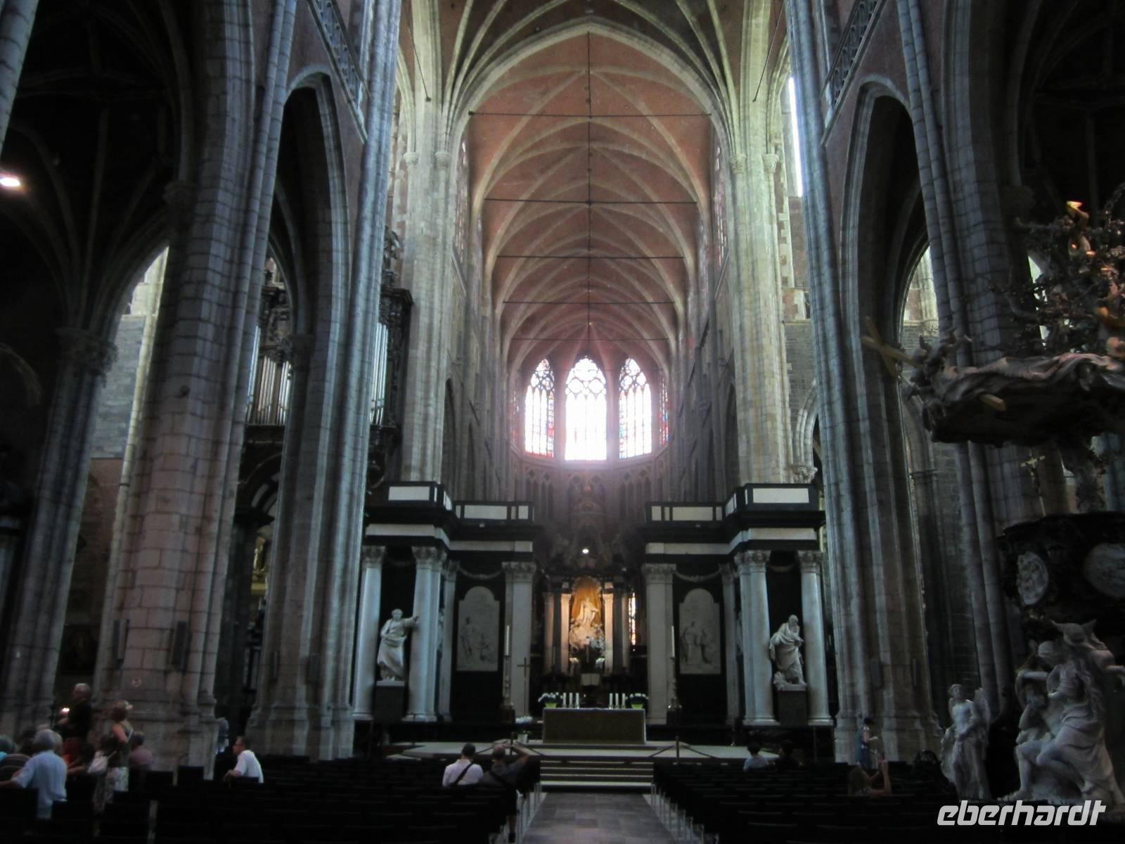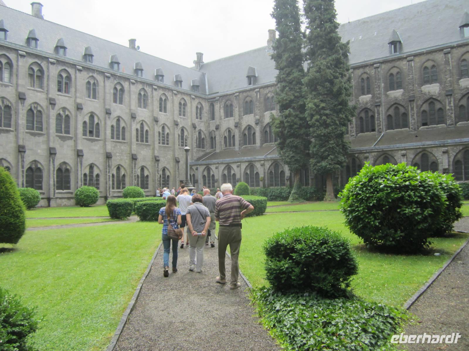 Immer noch bei hohen Temperaturen erleben wir Belgien. Unsere gesamte Gruppe beginnt den fakultativen Ausflug. Für die Kunstliebhaber unter uns ist der Genter Altar (das großartigste Werk der altflämischen Malerei) allein schon eine Reise wert. Bei Eintreffen in Gent erleben erwarten uns wieder 2 Stadtführer/in. Jedes Jahr findet im Juli in Gent das größte belgische Volksfest statt. Wir erleben, dass die Innenstadt für den Verkehr gesperrt ist und viele Bühnen in der Innenstadt uns die Sicht auf die historischen Bauten teilweise versperrt. Was wir beim Stadtrundgang bemerkten, die Stadt ist nicht mit Brügge zu vergleichen. Brügge ist herausgeputzter, ordentlicher, in Gent wo die Flüsse Schelde und Leie zusammenfließen geht es lebendiger zu. Dafür sorgen auch die 26 000 Studenten in der Stadt. Zur Stadtführung gehört eine der herausragendsten Sehenswürdigkeiten, die Sint-Baafskathedraal mit dem Genter Altar. Der Altar gehört zu den großartigsten Werken der altflämischen Malerei. Die Tafeln sollen von Hubert van Eyck um 1420 begonnen und von seinem Bruder Jan van Eyck um 1432 vollendet worden sein. Einige von uns besuchen das Original des Altars im Anschluss der Stadtführung. Etwas Freizeit bleibt noch um die Stadt individuell zu erkunden. Danach geht es weiter nach Mechelen. Hier erleben wir die höchsten Temperaturen auf unserer Reise. 36 Grad halten uns nicht ab die Stadtführung der besonderen Art zu erleben. Die große Vergangenheit als Hauptstadt der spanischen Niederlande hat in der ganzen Stadt Spuren hinterlassen. Hier erwarten uns Kaiser Karl der V. und Margarethe von Oesterreich. Zwei historische Persönlichkeiten vermitteln uns ihre Geschichte in der Stadt. Abwechslung brachte die Bierverkostung des besonderen und nur in Mechelen erhältlichen Biers. Eine Spezialität ist z.B. der Mondlöscher. Beim Biertrinken und den Gesprächen vergeht die Zeit schnell und unser Busfahrer muss auf uns warten. Aber rechtlustig und gut gelaunt geht es nach Brüssel zurück. Der letzte Abend in der Hauptstadt. Die Koffer müssen noch gepackt werden. Morgen geht es zu den Wallonen.