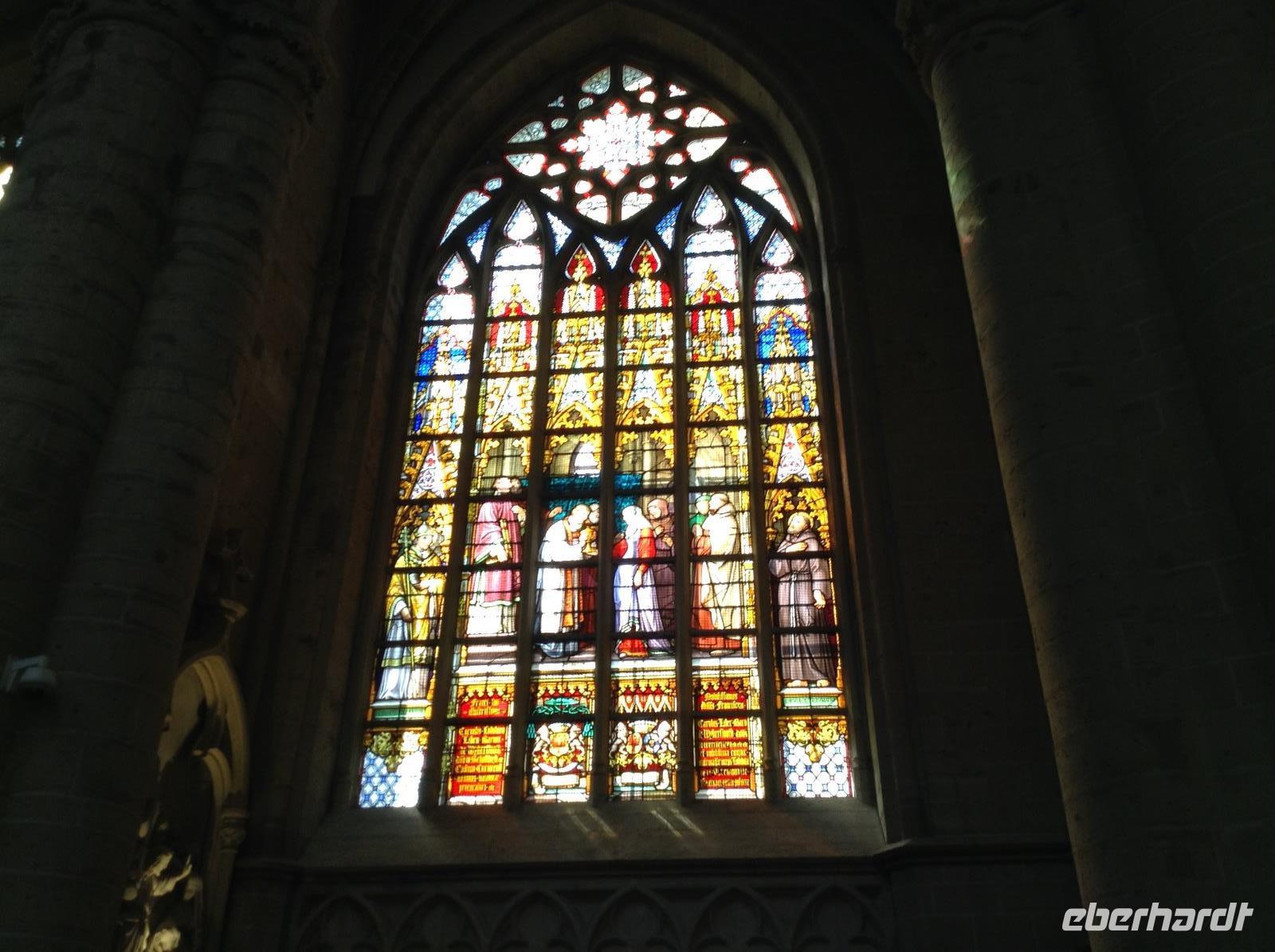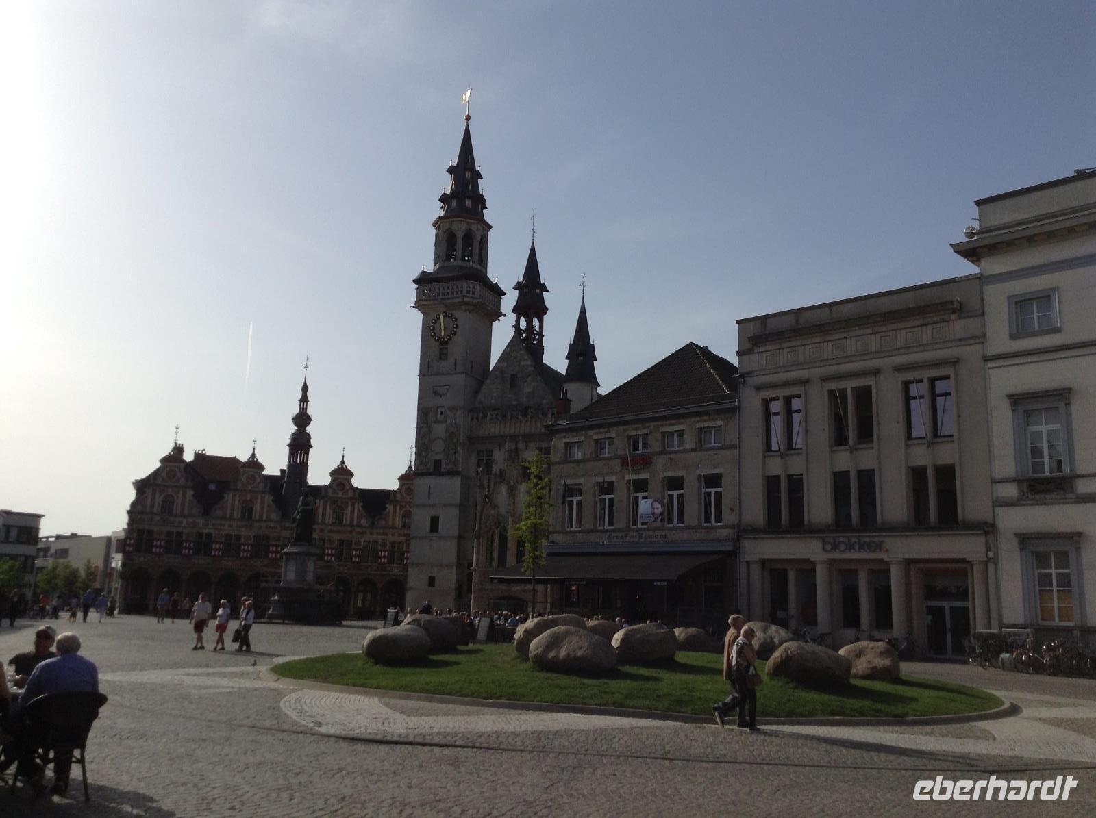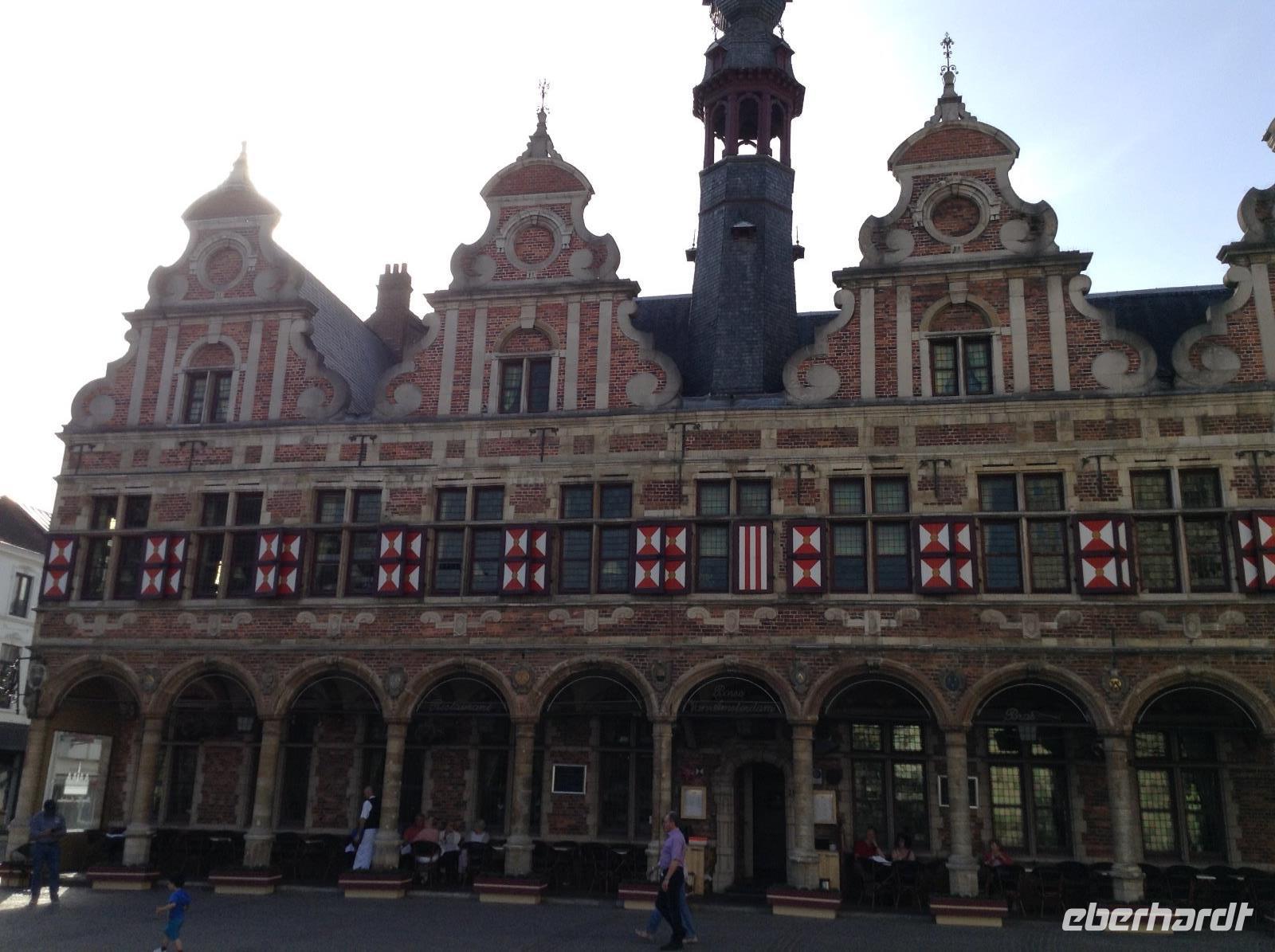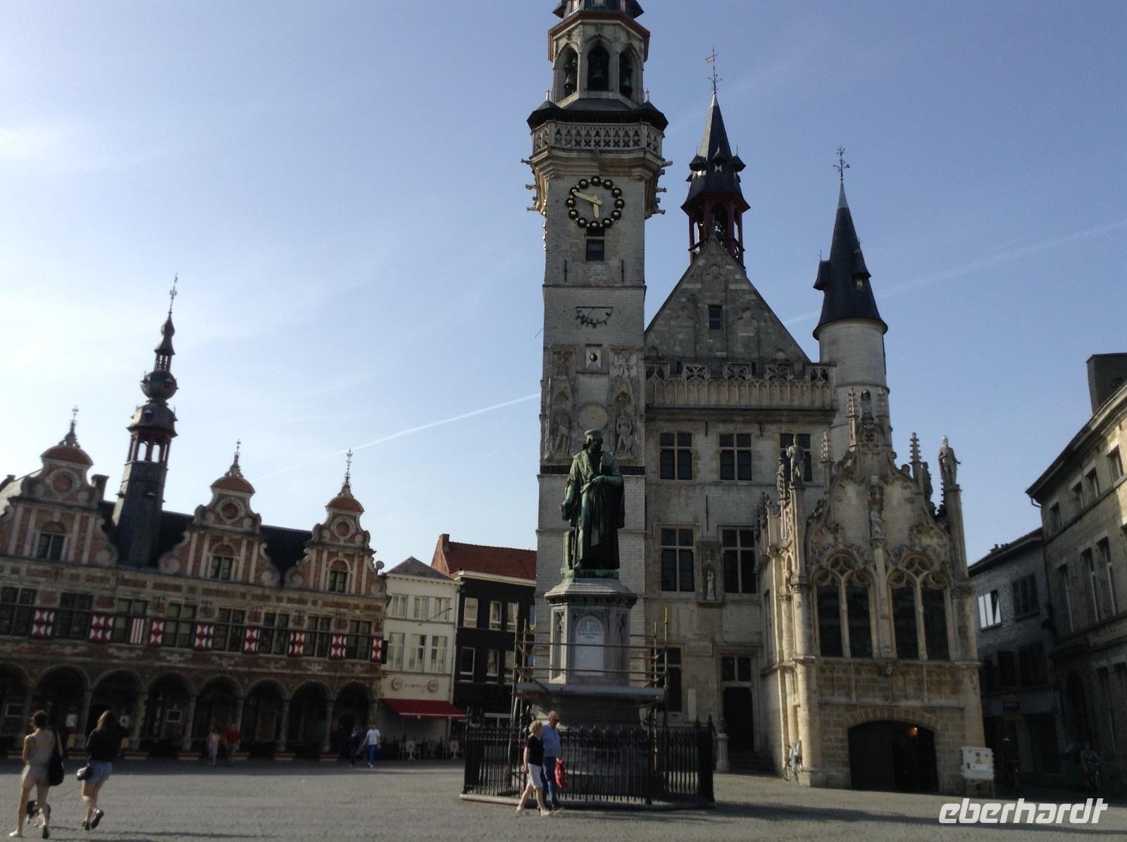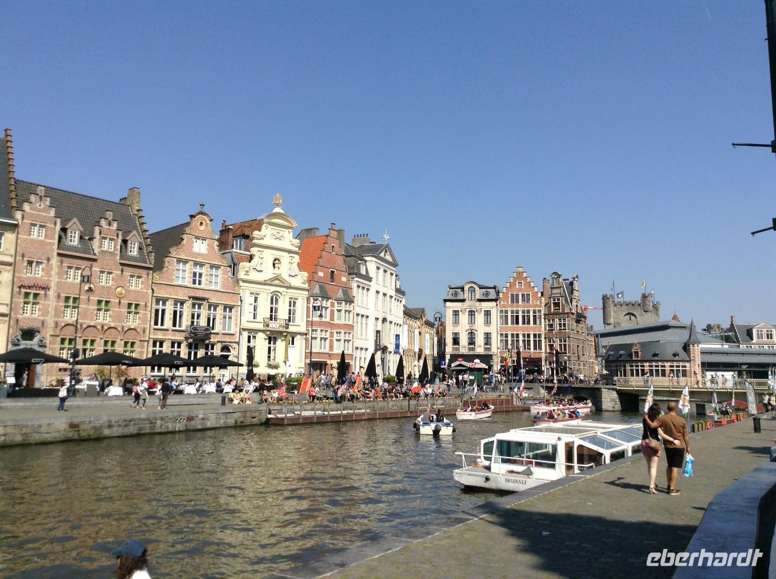 Die zweitgrößte Stadt Flanders empfing uns am sonnigen Morgen mit ihrem einzigartigen mittelalterlichen Charme. Wir erkundeten schon mal das wunderschöne historische Stadtzentrum, ehe unsere Stadtführung begann. Vom Vlasmarkt aus ging es dann am Rathaus vorbei zur alten Tuchhalle, dem Belfried mit dem Ständehaus, der Sint Baafskathedrale und an den Kanälen der Leie zur alten Stadtburg und zur Fleischhalle. Immer wieder ergaben sich tolle Einblicke und Ausblicke. Die alte Tuchmacher- und Hafenstadt hatte viel zu bieten und wir waren sehr beeindruckt. Den krönenden Abschluß unseres Stadtrundganges fanden wir dann im Besuch der Kathedrale mit dem berühmten Meisterwerk von Jan und Hubert van Eyc, dem Genter Altar. Es ist vermutlich das eindrucksvollste Werk der mittelalterlichen Malkunst.
