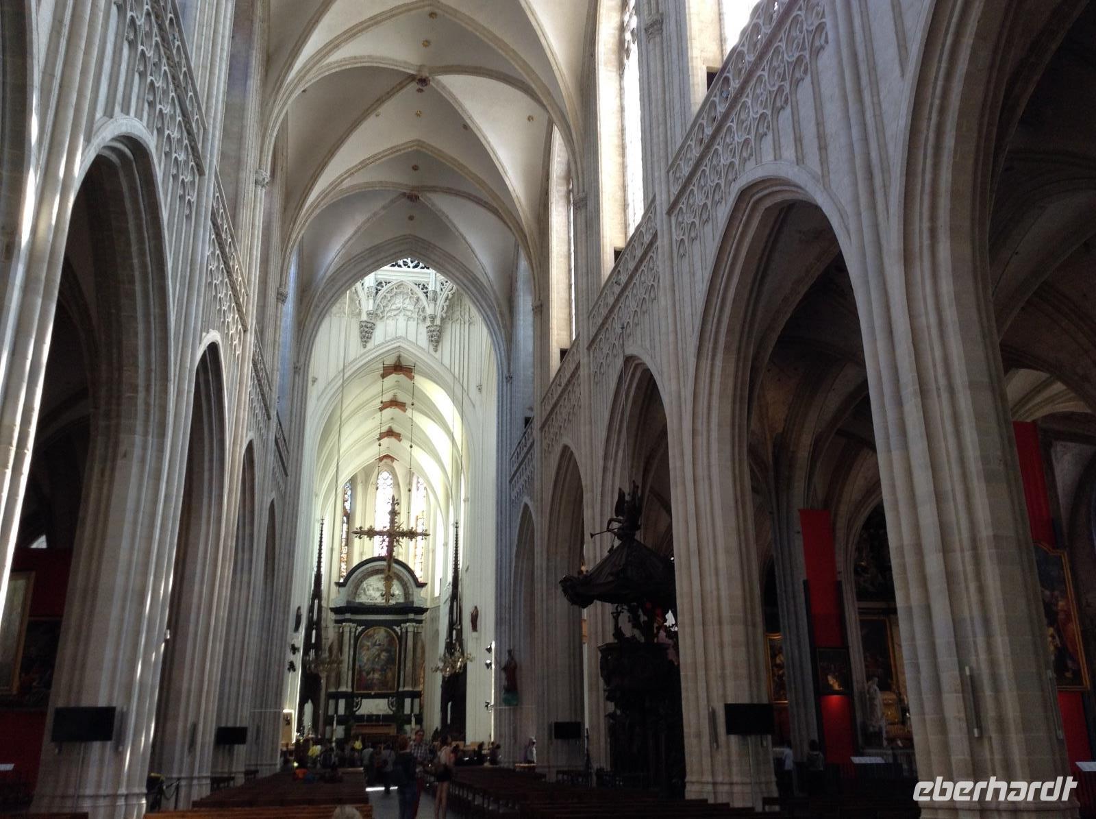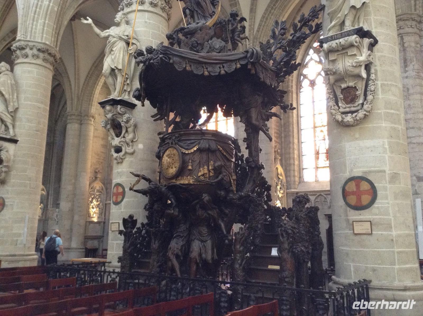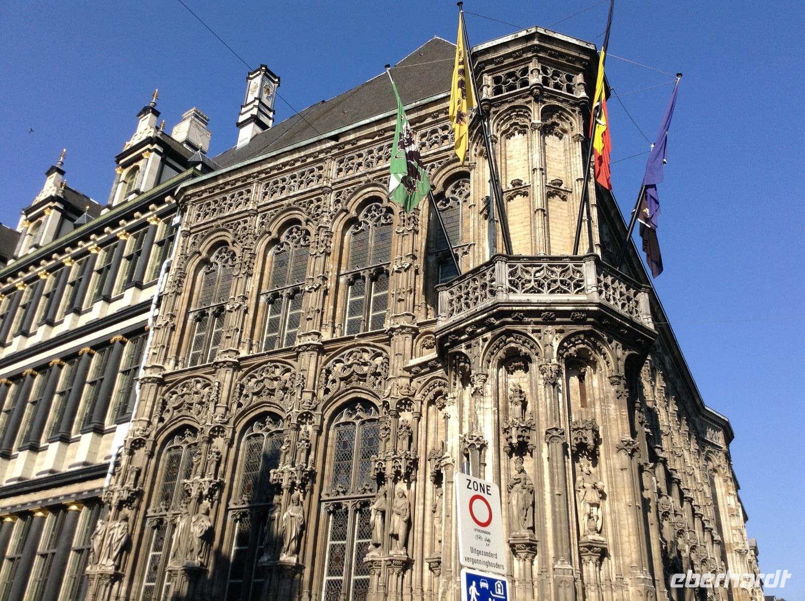 Es war ein sonniger Ostersamstag und wir stiegen gut gelaunt wieder in unseren Bus, der uns heute zur reichen Hafen-und Handelsstadt Antwerpen brachte. Am Schelde-Busparkplatz wurden wir von unseren beiden örtlichen Reiseleitern herzlich empfangen und unser Stadtbummel konnte in 2 Gruppen beginnen. Wir warfen zunächst einen Blick in einen der ältesten Schelde-Untertunnelungen mit einer Rolltreppe aus den 30iger Jahren des letzten Jahrhunderts. Unser nächster Stop war im Museum der alten Buchdruckerei Plantin-Moretus, dort besichtigten wir kurz den Innenhof und erfuhren von der uralten Tradition des Buchdruckens in diesem Haus. Weiter ging es durch schmale Gassen und hübsche Hinterhöfe zum Hauptplatz der Stadt. Auch hier staunten wir über die vielen alten Baudenkmäler der Stadt, die im Laufe der Geschichte kaum beschädigt wurden. Renaissance, Jugendstil und Barock reihten sich aneinander. Und mitten im Stadtzentrum thronte die Liebfrauenkathedrale mit ihren Kunstschätzen, die wir uns natürlich anschauen mußten. In der Stadt, in der einst Peter Paul Rubens gelebt und gearbeitet hat, durften wir nicht verpassen, dem Rubenshuis einen Besuch abzustatten und so spazierten wir gemeinsam zu seiner Wirkungsstätte. Schöne Möbel und viele schöne Gemälde des Barockmalers und seiner bekannten Zeitgenossen waren dort zu bestaunen. Anschließend konnten alle noch etwas freie Zeit genießen, ehe es zum Bus an der Schelde zurück ging. Einen Punkt wollten wir noch schaffen: der berühmten Antwerpener Eisenbahnkathedrale einen Besuch abstatten und das taten wir dann auch noch, ehe es am Abend zurück zum Hotel ging.