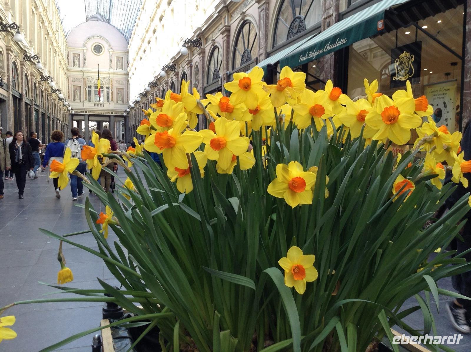 Nach einem leckeren Frühstück ging es mit dem Bus in Richtung Brüssel. Zuerst fuhren wir zum Expo-Gelände am Autobahnring. Am Atomium, dem bekannten Brüsseler Warzeichen, war unser Treffpunkt mit der örtlichen Reiseleiterin. Es war ein sonniger Karfreitag-Morgen und wir noch vor den vielen anderen Besuchern auf dem Platz vor dem Atomium. Erste schöne Foto's entstanden. Die Reiseleiterin gab dazu wichtige Informationen. Danach begann unsere Stadtrundfahrt und wir sahen uns Brüssel zunächst vom Bus aus an. Auf einer Terasse über der Altstadt entstanden weitere schöne Bilder und wir bekamen einen tollen ersten Eindruck von der belgischen Metropole. Später ging es direkt zum Zentrum der Stadt und wir verließen unseren Bus, um das Zentrum zu Fuß zu erkunden. Ausstiegspunkt war direkt vor der gotischen Kathedrale Saint-Michel und wir besichtigten zunächst dieses schöne Kirchenbauwerk. Durch den kleinen grünen Park ging es weiter zur noblen Ladenpassage Sint Hubert mit den vielen chicken Läden und Schaufenstern. Schöne Kübel voller Narzissen schmückten die Galerie besonders osterlich. Vor dem Schaufenster von Neuhaus blieben wir stehen und erfuhren über die Geschichte und Entstehung der alten Chocolaterie. Weiter ging es über den Grasse Markt zum Grote Markt, dem Hauptplatz der Stadt. Das wunderschöne Ensemble mit Rathaus und den alten Gibel-und Ständehäusern faszinierte uns. Durch etliche Menschengruppen hindurch spazierten wir dann noch zum zweiten Warzeichen der Belgischen Hauptstadt - zum Manneken Pis. Unterwegs duftete es an jeder Ecke anders: mal nach Belgischen Waffeln, dann wieder nach Schokolade oder nach Frittjes. Danach war Freizeit für alle, Zeit für eigene Entdeckungen. Am Nachmittag trafen wir uns, um einer Chocolaterie einen Besuch abzustatten. Sehr ausführlich und interessant erfuhren wir Wissenswertes rings um die Schokoladenherstellung und durften auch kosten. Ein erster Stadtbesuch ging zu Ende und wir fuhren am späten Nachmittag zurück nach Aalst zum Hotel.