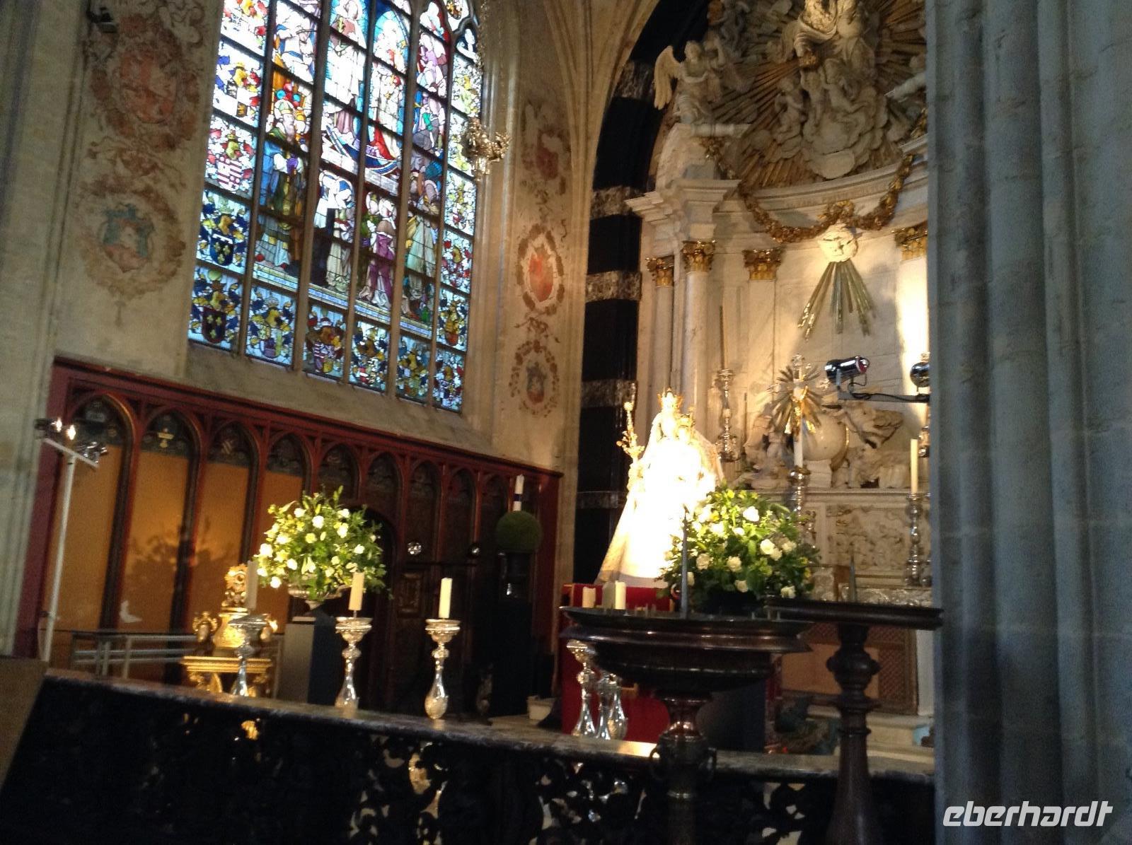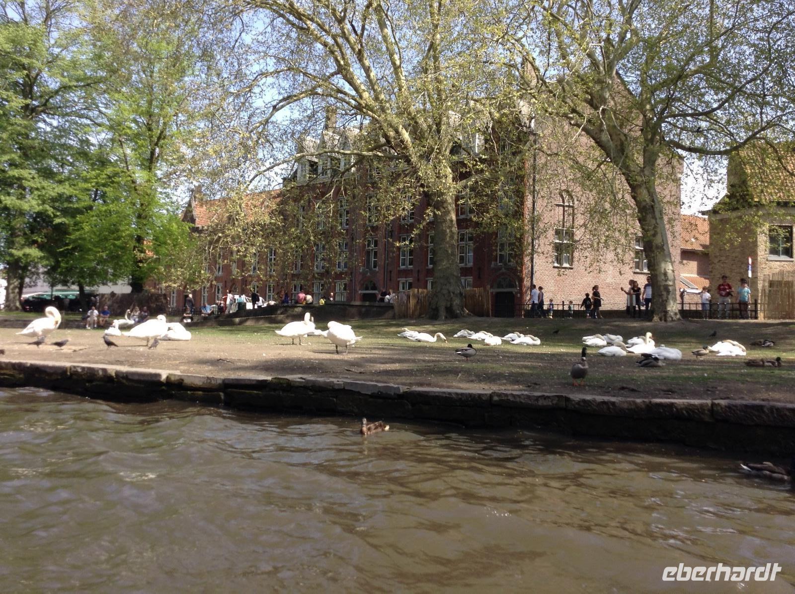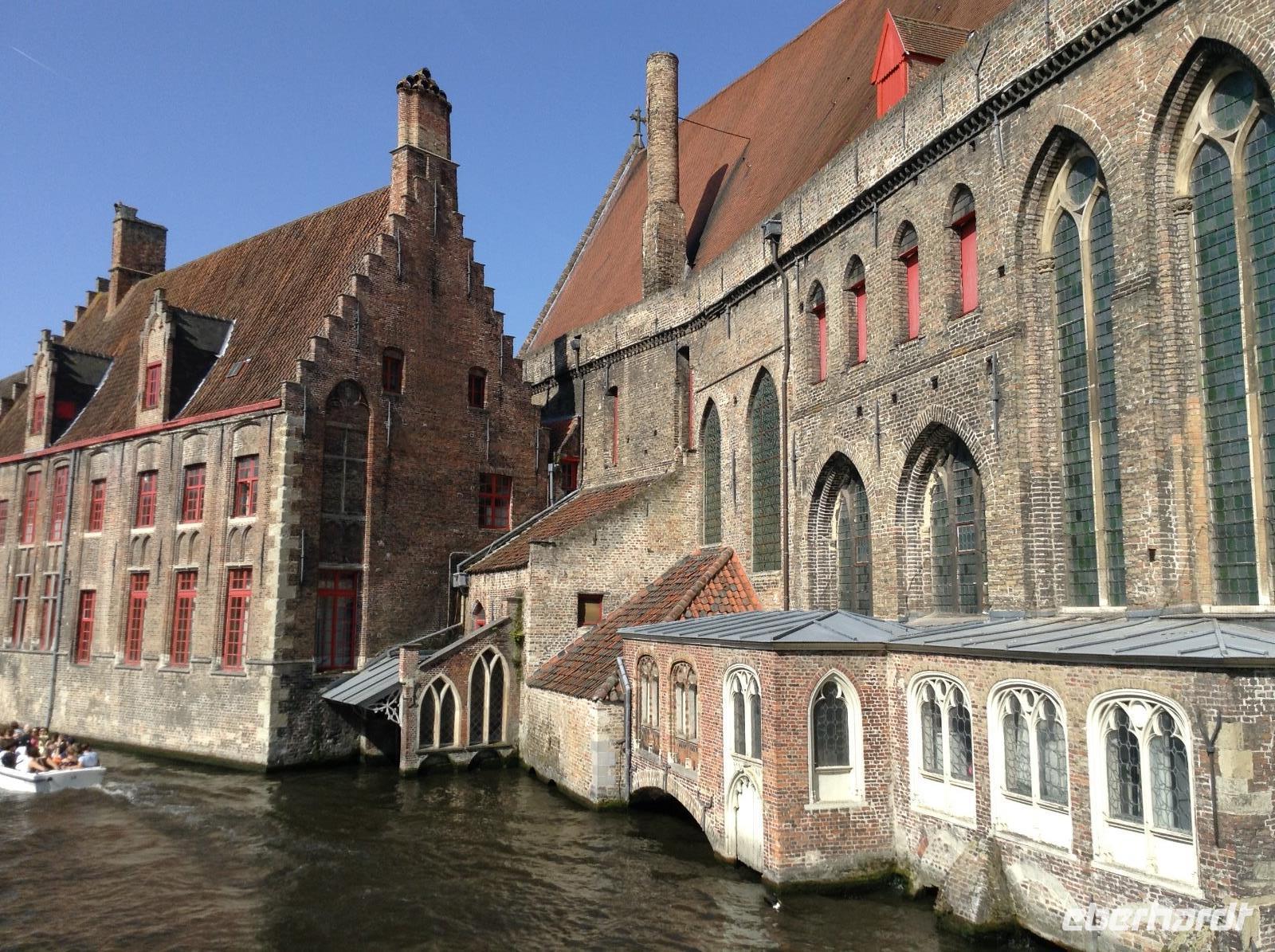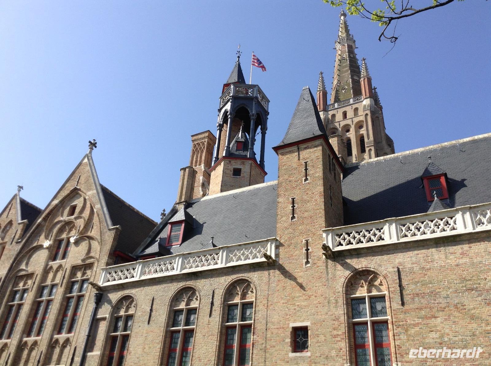 Unsere beiden örtlichen Stadtführer zeigten uns die schönsten Gässchen, Plätze und Hinterhöfe der Stadt. Wir wanderten entlang der malerischen Kanäle, die liebevoll Reien genannt werden. Wir bestaunten einen alten Beginenhof, das reich verzierte Rathaus und die Blutskathedrale am Burgplatz und die wunderschönen Gibelhäuser auf dem Markt.