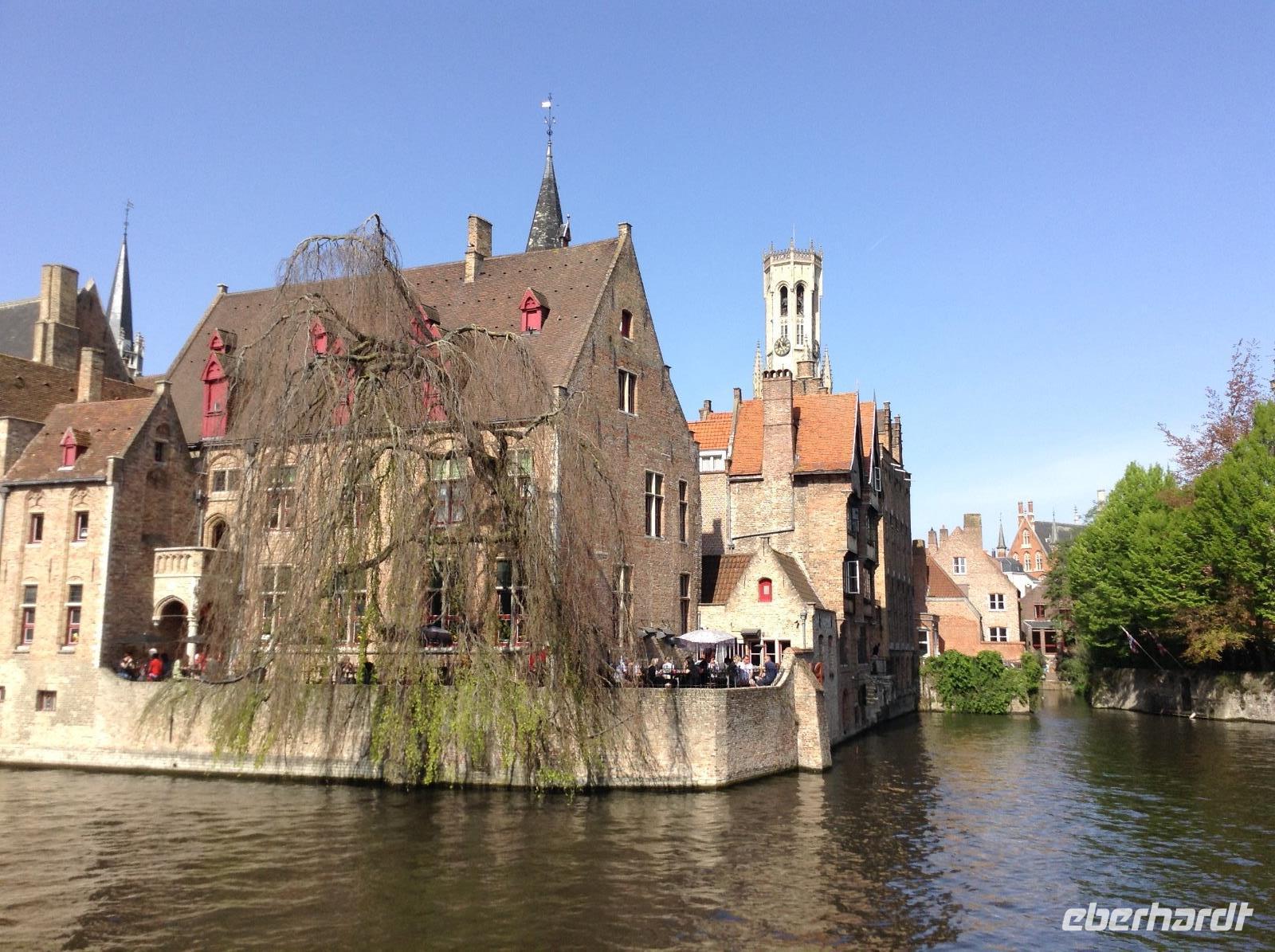Ostermontag war heute und wir hatten noch ein besonderes Highlight vor uns. Als krönenden Abschluß unserer Flandernreise besuchten wir Brügge, die wohl schönste Stadt in dieser Gegend. Der einstigen Versandung der alten Hafenstadt ist es wohl zu verdanken, dass sich hier bis heute ein komplett mittelalterliches Stadtbild erhalten ließ. Es gab nie kriegerische Zerstörungen, deshalb konnten wir heute im mittelalterlichen Stadtbild flanieren und genießen.