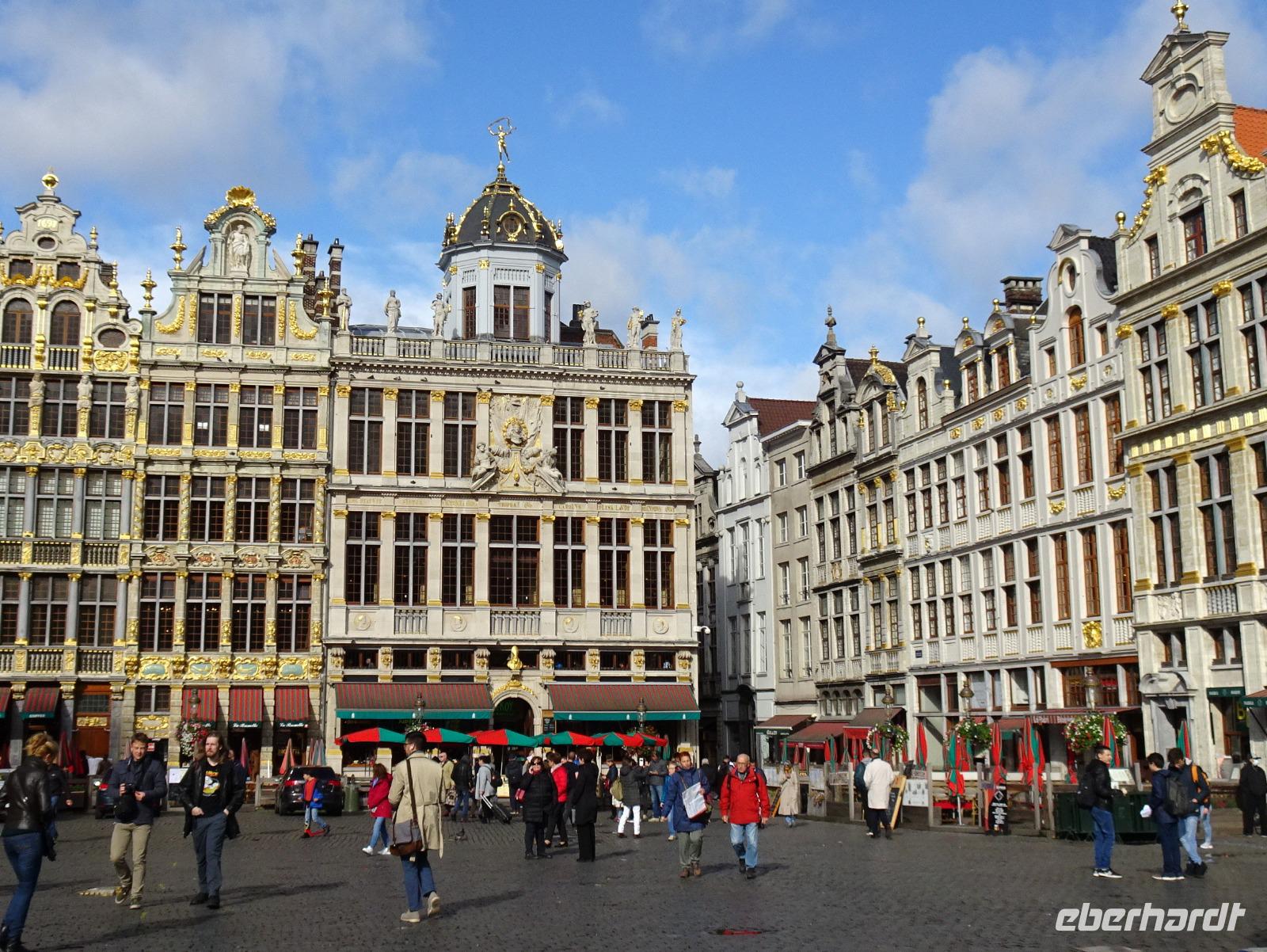 Gestartet sind wir zu Fuß an der St. Michael Kathedrale und durch die Galerie St. Hubert mit seinen attraktiven Geschäften und der Chocolaterie Neuhaus. Am Großen Markt gab unser Stadtführer umfassende Erläuterungen zum Rathaus und den Zunfthäusern. Er hatte auch zu vielen Gebäuden eine kleine Geschichte parat.