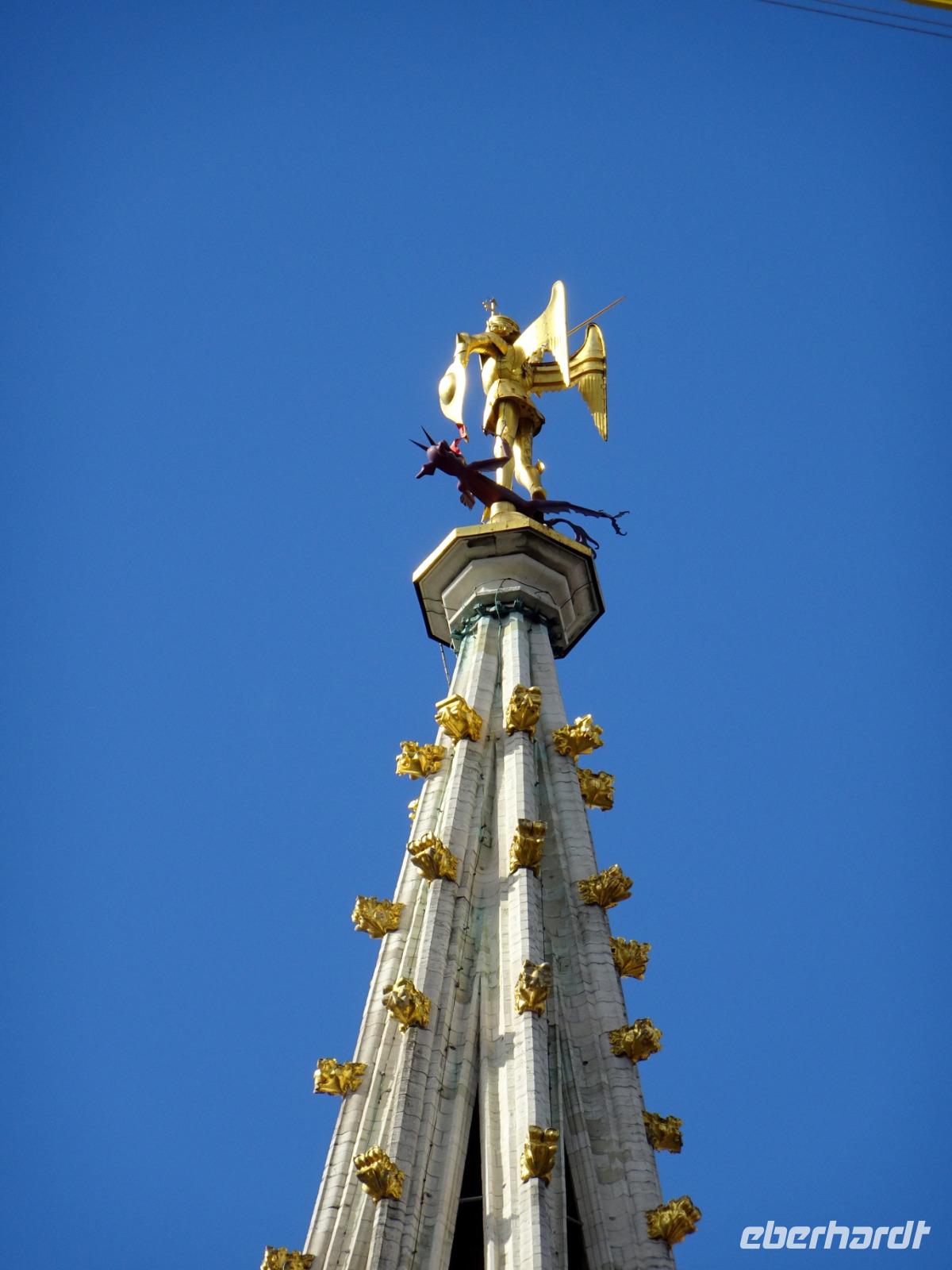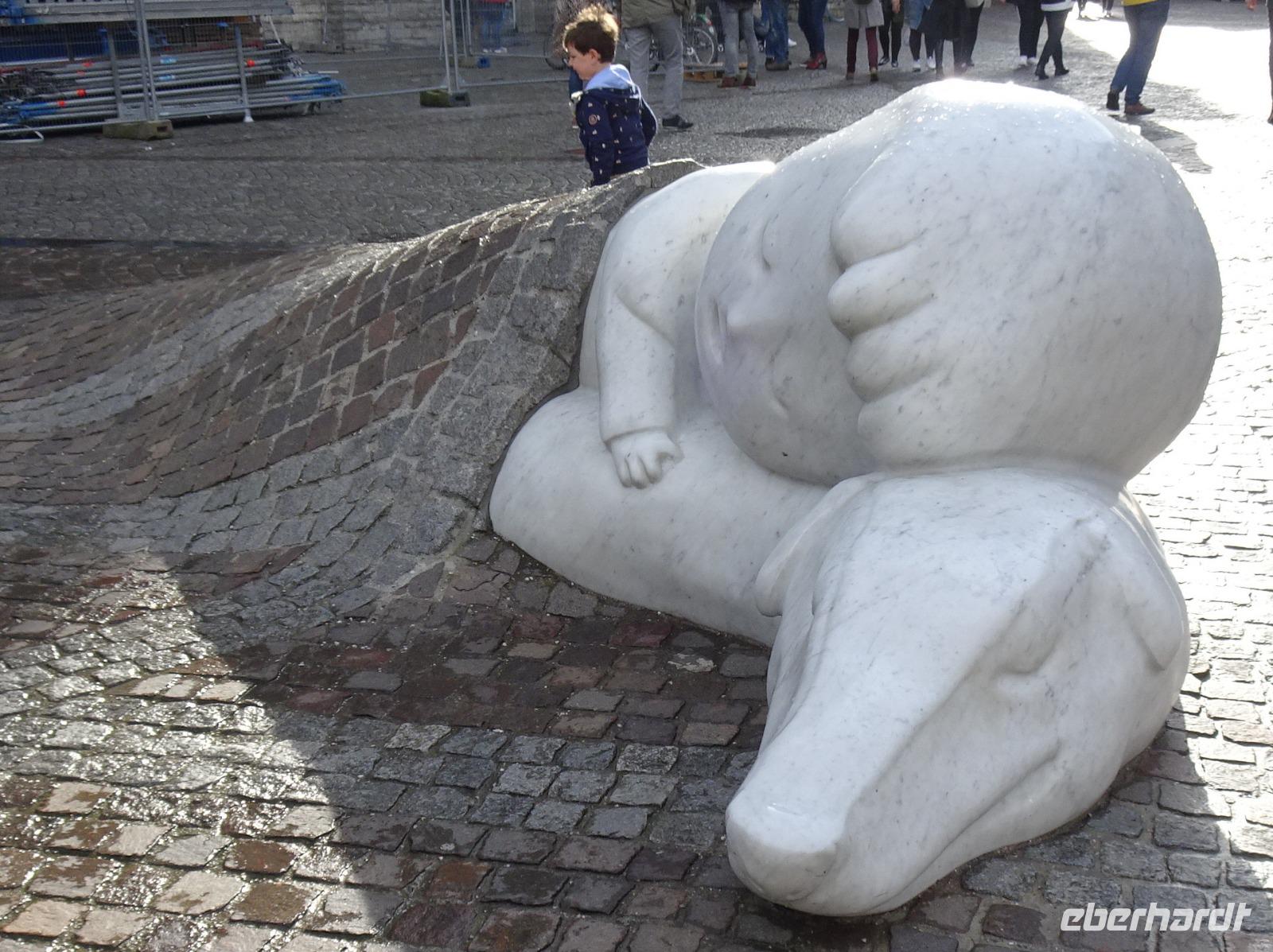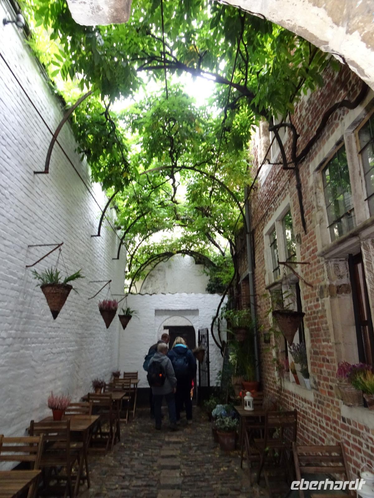 Da unser Stadtführer ein sehr guter Kenner des Genter Altars war, hat er uns ausführlich zum Aufbau und Inhalt des Genter Altars informiert. Anschließend konnten wir einen kleinen Blick auf das Originalgemälde mit den derzeit laufenden Restaurierungsarbeiten werfen. Ein kurzer Abstecher führte uns zu dem hinter der St. Bavo-Kathedrale liegenden Denkmal für die Maler des Genter Alters, die Gebrüder van Eyck.
