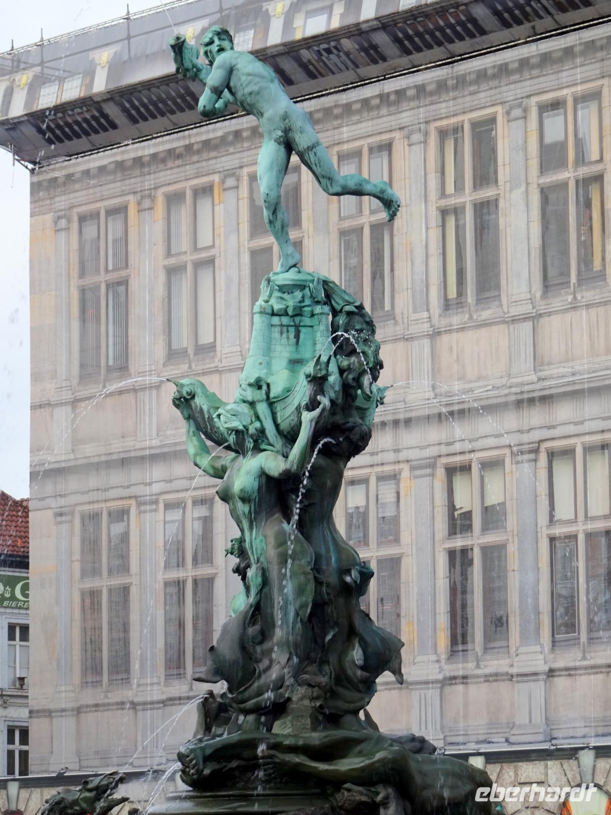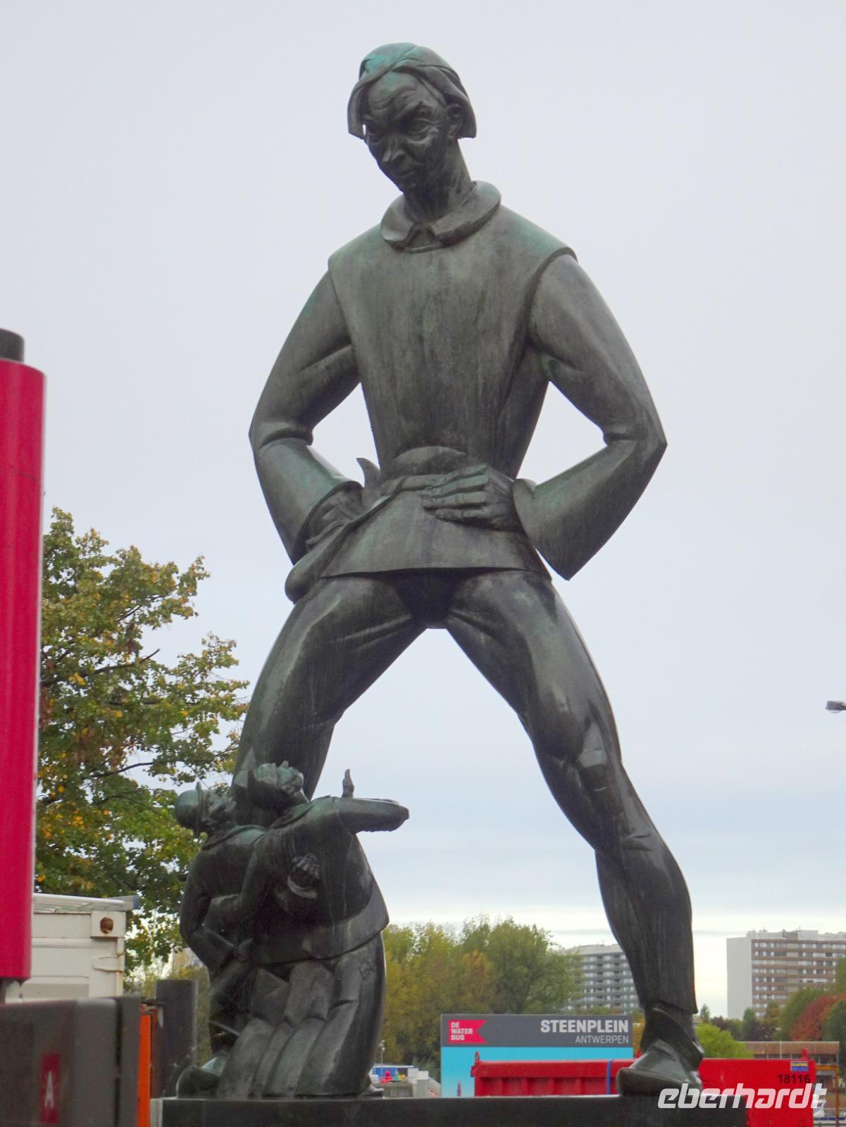 Am nächsten Tag ging es frühzeitig nach Antwerpen. Am Hafen angekommen, erwarteten uns der herrliche Anblick eines argentinischen Dreimasters und natürlich unsere beiden Stadtführerinnen. Die Gruppe trennte sich, aber es war klar, dass wir die wichtigsten Sehenswürdigkeiten bei beiden Gruppen erleben konnten. Wir sahen zuerst die Skulptur des Langen Wapper, einer stadtbekannten Persönlichkeit, am Het Steen. Danach ging es weiter zum Vleeshuis, wo wir einen kurzen Blick in das heute dort eingerichtete Musikinstrumentenmuseum werfen konnten. Wer Interesse hat, bekommt hier auch Informationen zur Glockenspielkunst in Belgien und der Herstellung von Glocken. Danach ging es über den höchsten Punkt von Antwerpen, den Koalberg mit 13 m über NN, zum Großen Markt. Mittelpunkt ist das Brabodenkmal mit dem handwerfenden Riesen Silvio Brabo auf der Spitze. Aber auch das durch die derzeit stattfindende Sanierung nur schemenhaft erfassbare Rathaus (Stadthuis) und die Zunft- und Gildehäuser am Großen Markt beindruckten alle. Weiter ging es durch die Altstadt, vorbei an der St. Carolus - Borromeuskirche, zum Groenplatz. Mittelpunkt dieses Platzes ist das Rubensdenkmal. Von diesem Platz hat man aber auch einen herrlichen Blick zur Liebfrauenkathedrale - leider verdecken auch bei der Kathedrale Gerüste das Bauwerk. Auf dem Weg zur Kathedrale gingen wir durch die kleinste Gasse Antwerpens und bestaunten vor der Kathedrale die Skulptur von Nello & Patrache.