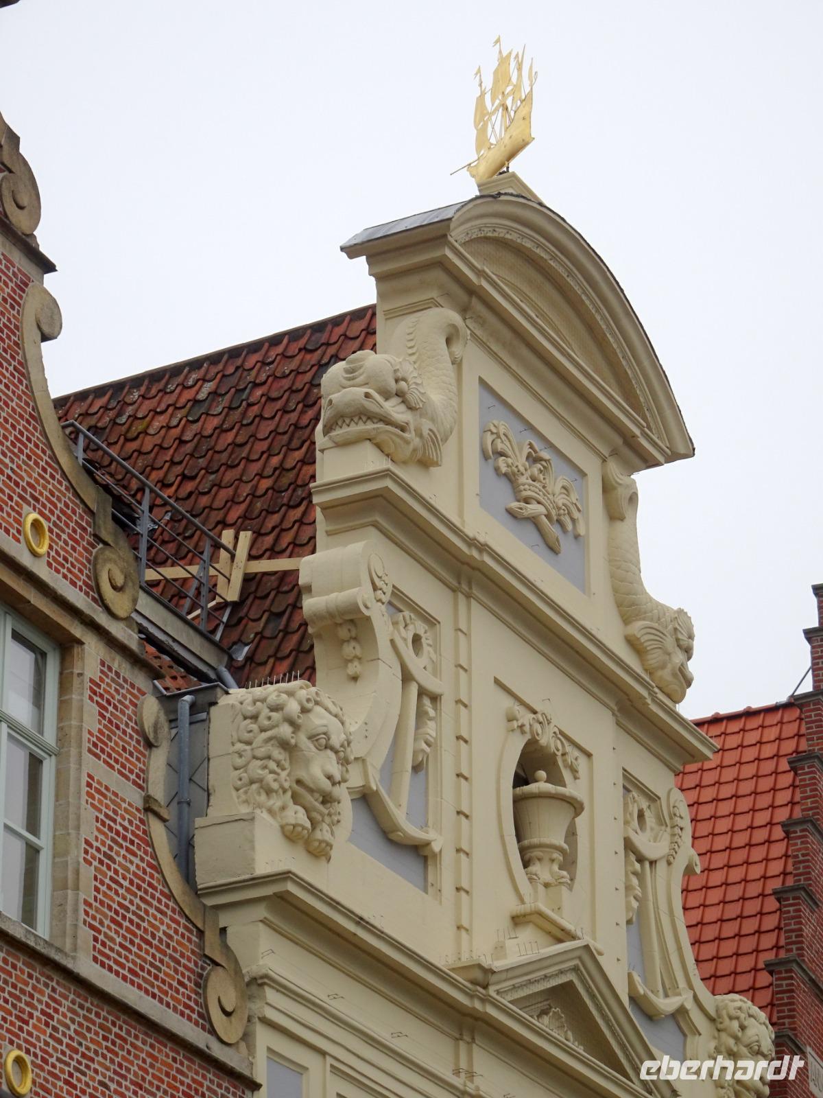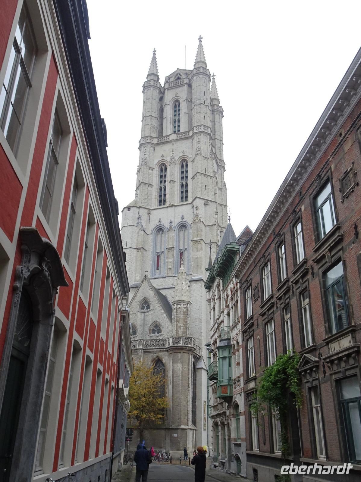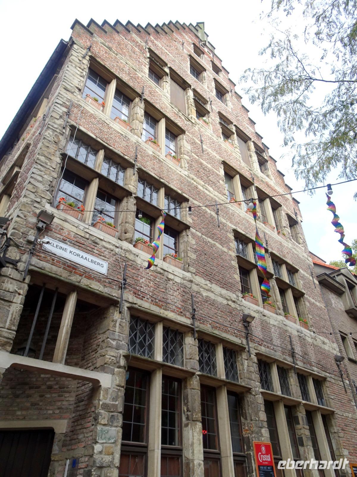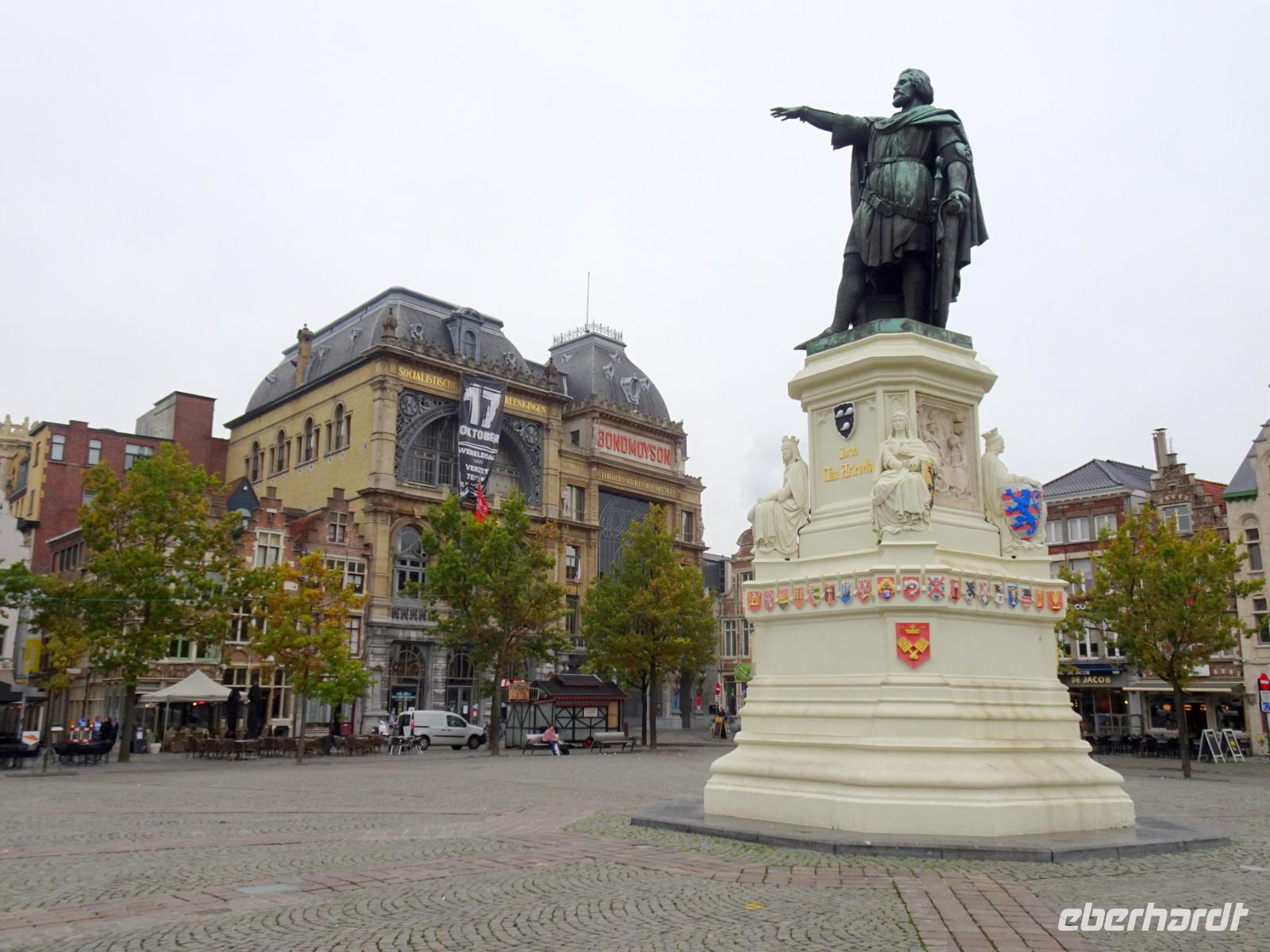 Erste Station war der Vrijdagmarkt (Freitagsmarkt) mit dem zentralen Denkmal des Anführers des Genter Aufstandes Jacob van Artevelde und den markanten Gebäuden der ersten Krankenversicherung und dem sozialdemokratischen Parteihaus. Wir querten die Grachten der Leie, sahen die Burg Grafenstein, das Gebäude des Fischmarktes, das Designmuseum und selbstverständlich die beiden Ufer der Leie - Korenlei und Graslei mit den markanten Lager- und Zunfthäusern. Anschließend ging es weiter in Richtung der St. Bavo Kathedrale mit dem Genter Altar. Auf dem Weg dahin gab es Zwischenstopps an der modernen Stadthalle, am Belfried und am Stadthuis.