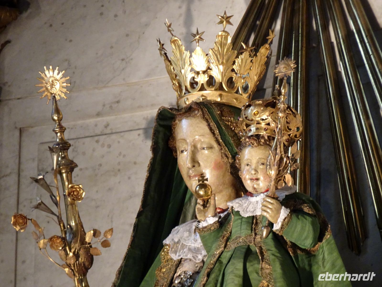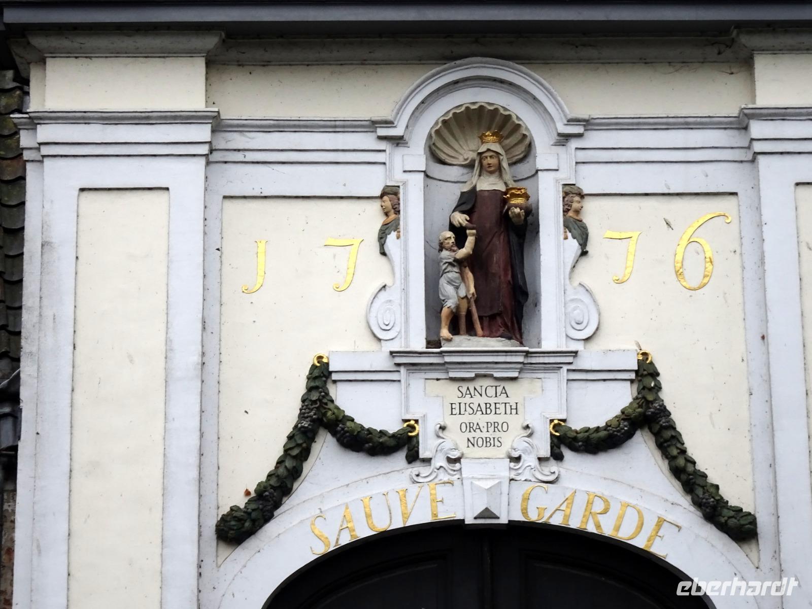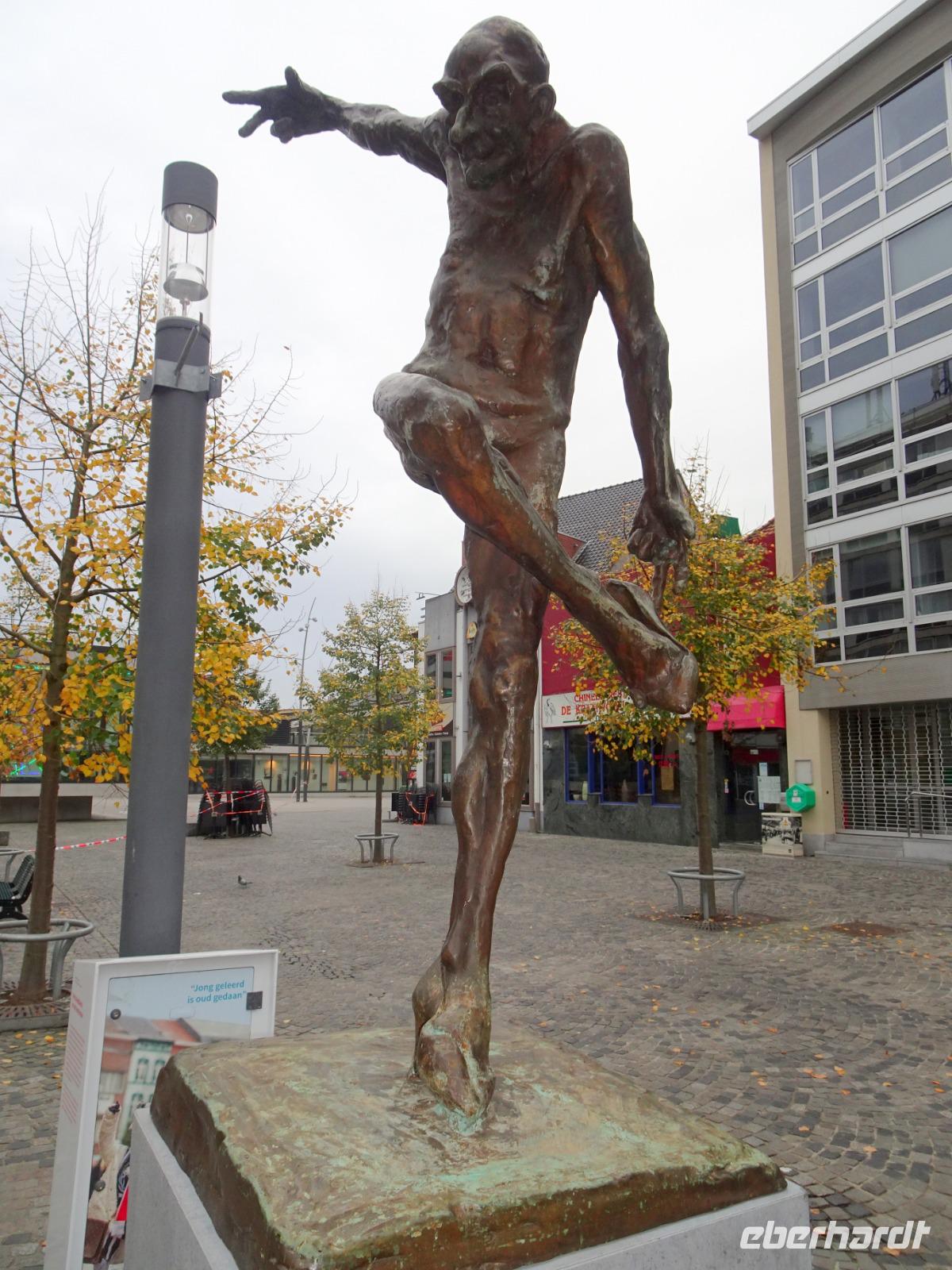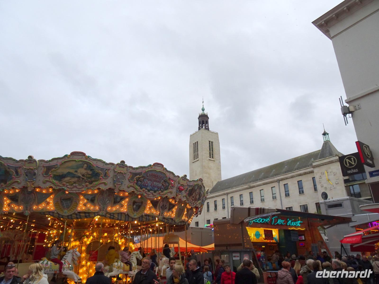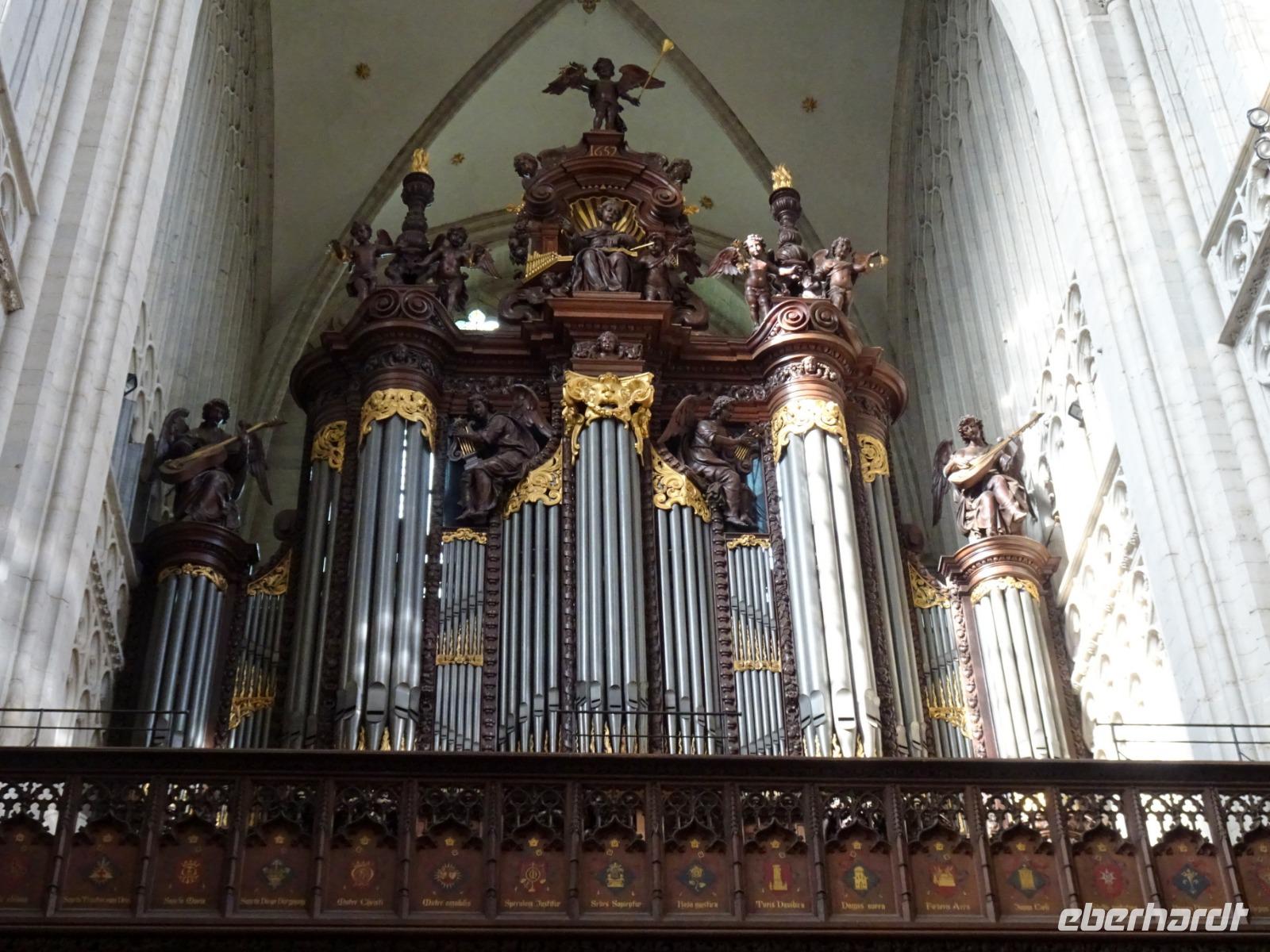 Vorher unternahmen wir jedoch mit unserem Reiseleiter Hartwig noch einen kleinen Stadtrundgang durch das Zentrum von Aalst. Aalst trägt den Spitznamen „Zwiebelstadt" wegen seiner traditionellen Zwiebelzucht. Aalst ist aber auch eine Karnevalsstadt. Wir machten deshalb zuerst an der Skulptur eines Karnevalisten Halt. Anschließend ging es weiter zum Großen Markt, wo wir uns das Gebäude der „Börse von Amsterdam", dem ältesten Rathaus Belgiens mit Belfried und das Stadthuis ansahen. Im Zentrum des Marktes ist ein Denkmal für den Buchdrucker Dirk Martens, der Thomas Morus „Utopia" druckte, nicht zu übersehen. Kurz vor dem sonntäglichen Gottesdienst statteten wir der St. Martinus-Kirche einen Besuch ab. Hier ist neben vielen attraktiven Altären insbesondere ein Bild von Rubens interessant, dass die Brauer gestiftet hatten. Es sollte gegen die Pest helfen.