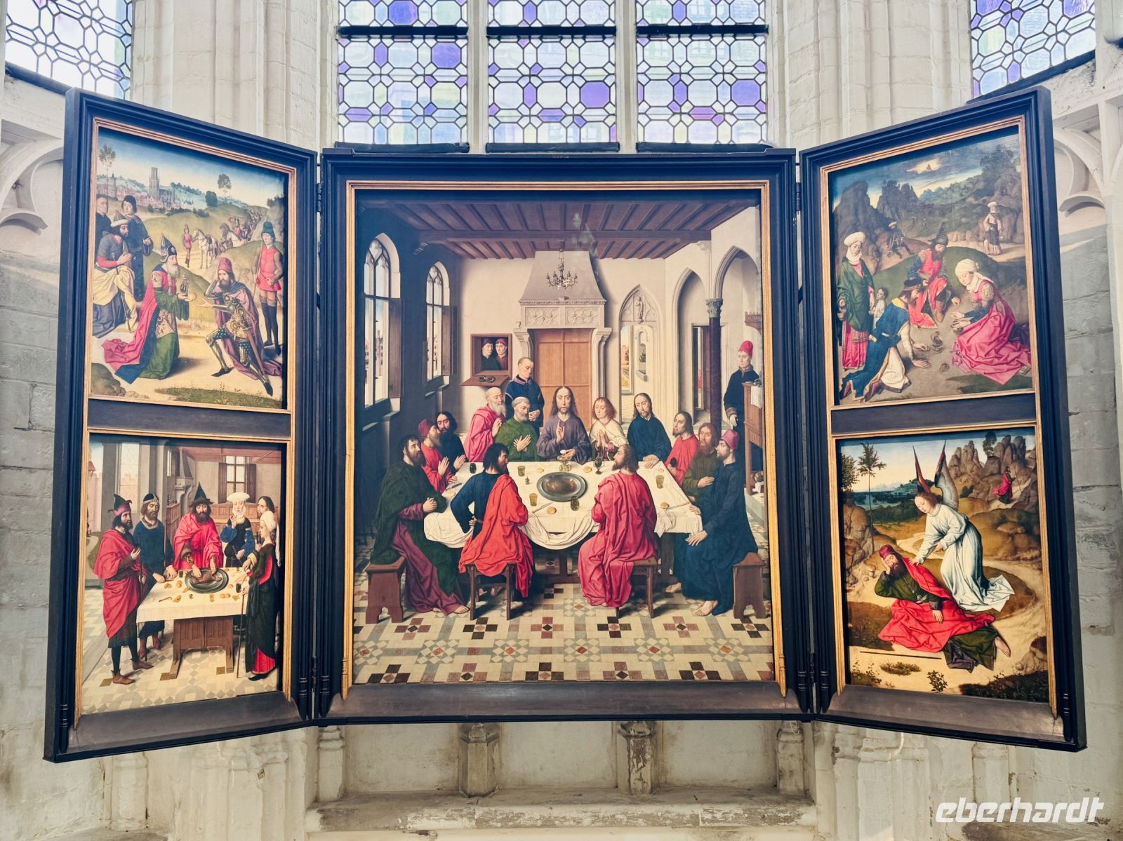 Ein weiterer sonniger Morgen begrüßt uns in Sint-Niklaas – und mit ihm beginnt ein Tag voller Kontraste: von großer Kunst in historischen Mauern bis zum frischen Nordseewind am Strand. Unser erstes Ziel ist Gent, eine Stadt, die uns mit ihrer reichen Geschichte, ihrem malerischen Stadtbild und einer lebendigen Atmosphäre sofort in ihren Bann zieht. Schon die Ankunft in Gent fühlt sich besonders an: gotische Türme, Wasserläufe und Häuserfassaden wie aus dem Bilderbuch. Wir beginnen unseren Tag mit einem Besuch der St.-Bavo-Kathedrale, die sich stolz im Herzen der Stadt erhebt. Hier tauchen wir – dank eines virtuellen Rundgangs – tief ein in die Geschichte des Bauwerks, das über viele Jahrhunderte hinweg erweitert, verändert und immer wieder neu gedacht wurde. Dabei erleben wir nicht nur die wechselvolle Geschichte der Kathedrale, sondern auch die Hintergründe zum berühmten „Genter Altar“, der sich in einer eigens eingerichteten Kapelle befindet. Und dann stehen wir davor: „Die Anbetung des Lamm Gottes“ – ein Meisterwerk von Jan und Hubert van Eyck, das mit seiner Detailfülle, symbolischen Tiefe und unglaublichen Farbenpracht selbst Kunstkenner in Staunen versetzt. Es gilt als eines der bedeutendsten Werke der mittelalterlichen Malerei – und wir dürfen es ganz aus der Nähe betrachten. Vor der Kathedrale erwarten uns bereits unsere beiden Stadtführerinnen Carine und Marijke. Gemeinsam mit ihnen entdecken wir Gent zu Fuß: durch enge Gassen, entlang der Kanäle, vorbei an Gildehäusern, dem Belfried und der alten Tuchhalle. Immer wieder bleiben wir stehen, lauschen Geschichten von Handel, Reichtum und Rebellion – denn Gent war im Mittelalter nicht nur reich, sondern auch aufmüpfig. Nach so viel Kultur lassen wir uns eine ausgiebige Mittagspause in der Sonne nicht entgehen. Die Terrassen entlang der Leie laden zum Verweilen ein – mit Blick aufs Wasser, einem frischen Getränk in der Hand und dem Gefühl, mitten im flämischen Leben angekommen zu sein. Am Nachmittag bringt uns unser Bus weiter gen Westen – bis ans Meer. Oostende erwartet uns mit frischer Brise und weitem Horizont. Wer mag, spaziert gemütlich entlang der Promenade, lässt den Blick übers Wasser schweifen oder gönnt sich ein Eis mit Meerblick. Die Nordsee zeigt sich heute freundlich – mit hellem Licht, glitzernden Wellen und einem Hauch von Freiheit. Am späten Nachmittag kehren wir zurück nach Sint-Niklaas. Ein erfüllter Tag liegt hinter uns – mit einem Hauch Ewigkeit in der Kathedrale, flämischem Charme in Gent und Meeresluft zum Schluss.