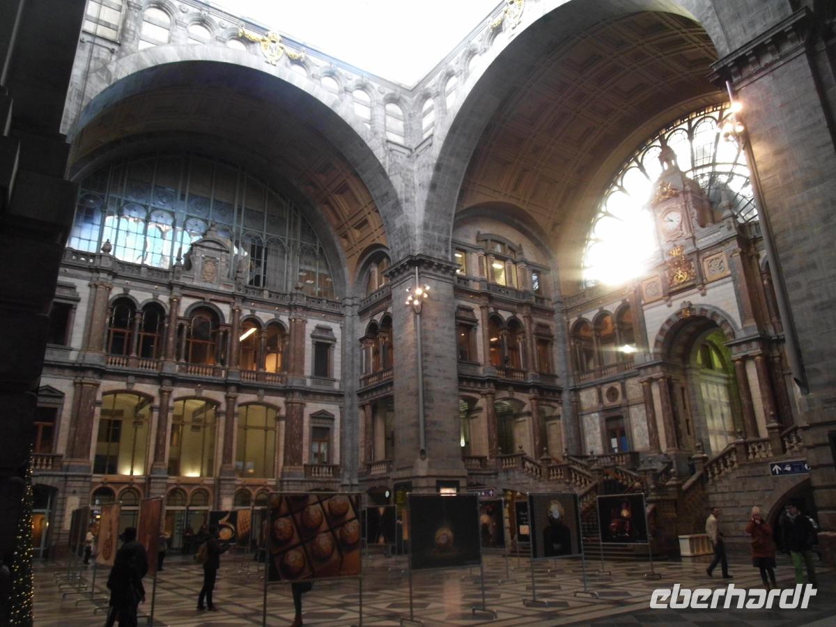 Heute steht Antwerpen auf dem Programm. Unser Gästeführerin ist sehr versiert und wir bekommen einen guten Überblick über die Gestalt und Geschichte dieser reichen Stadt. Zunächst stoppen wir am Bahnhof. Dieser gleicht im Innern mehr einer Kathedrale denn einem Verkehrsknotenpunkt.