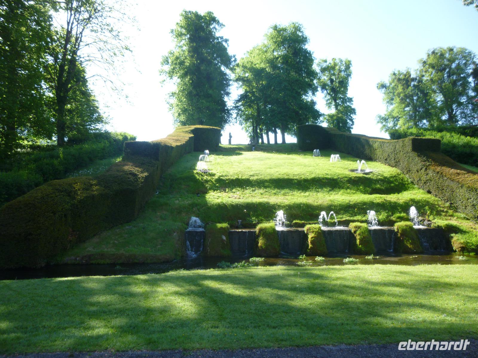 Am sonnigen Morgen erlebten wir den Garten in Annevoie aus dem 18. Jahrhundert als eine Mischung des italienischen, französischen und englischen Gartenstils. Gespeist von vier natürlichen Quellen entfaltete sich hier ein Wasserreichtum an Kanälen, Fontänen, Becken, Kaskaden und Speiern. Er wurde bei der Vergrößerung des Chateau angelegt. Erst gemeinsam, dann einzeln in der Freizeit erkundeten wir das reizvolle Kleinod im Maastal, das neben dem Freyr-Garten eines der schönsten bildet. Verziert mit eleganten Skulpturen und belebt von Wasservögen und Fischen ist es mit dem Chateau ein erholsames Refugium.