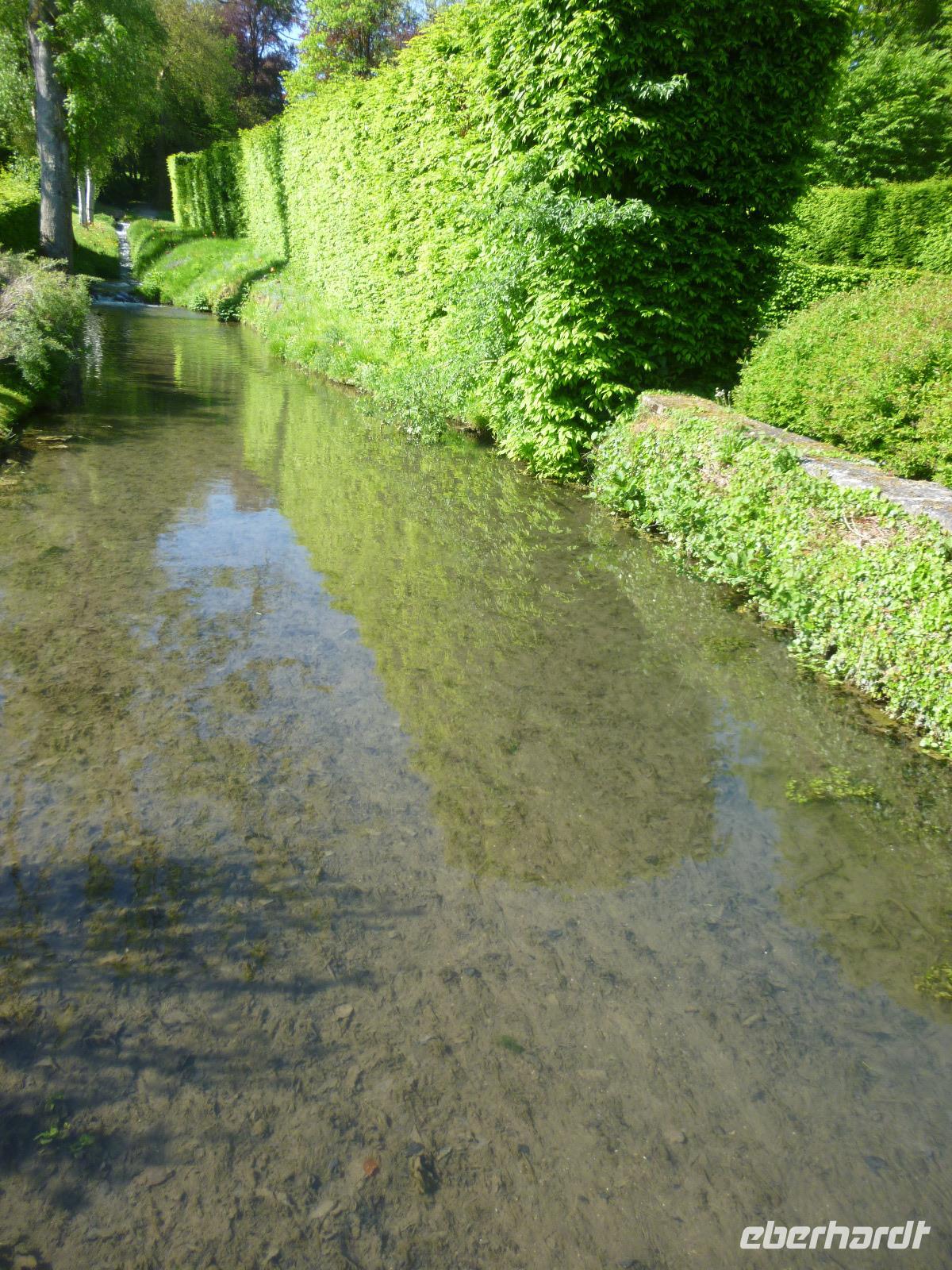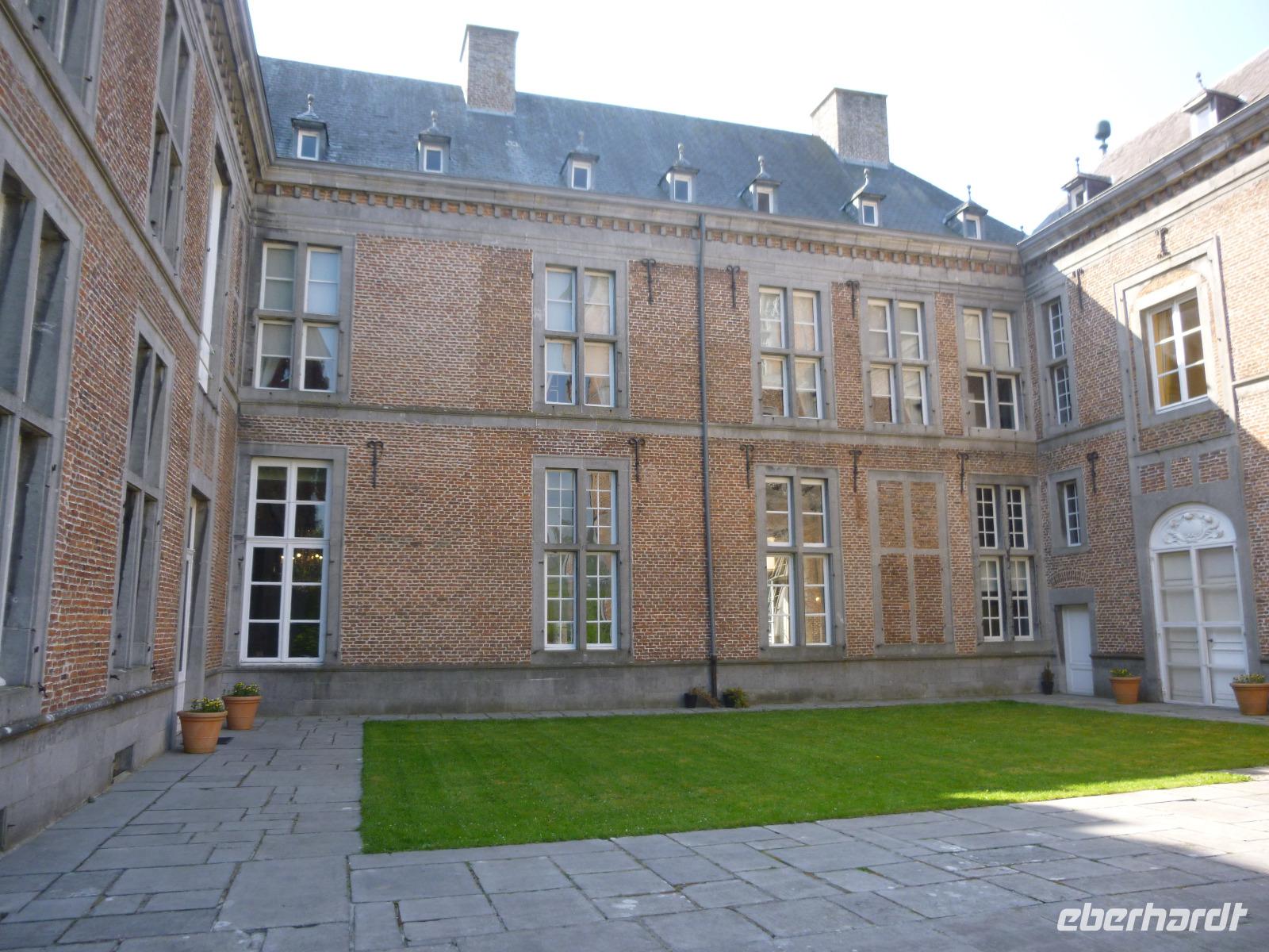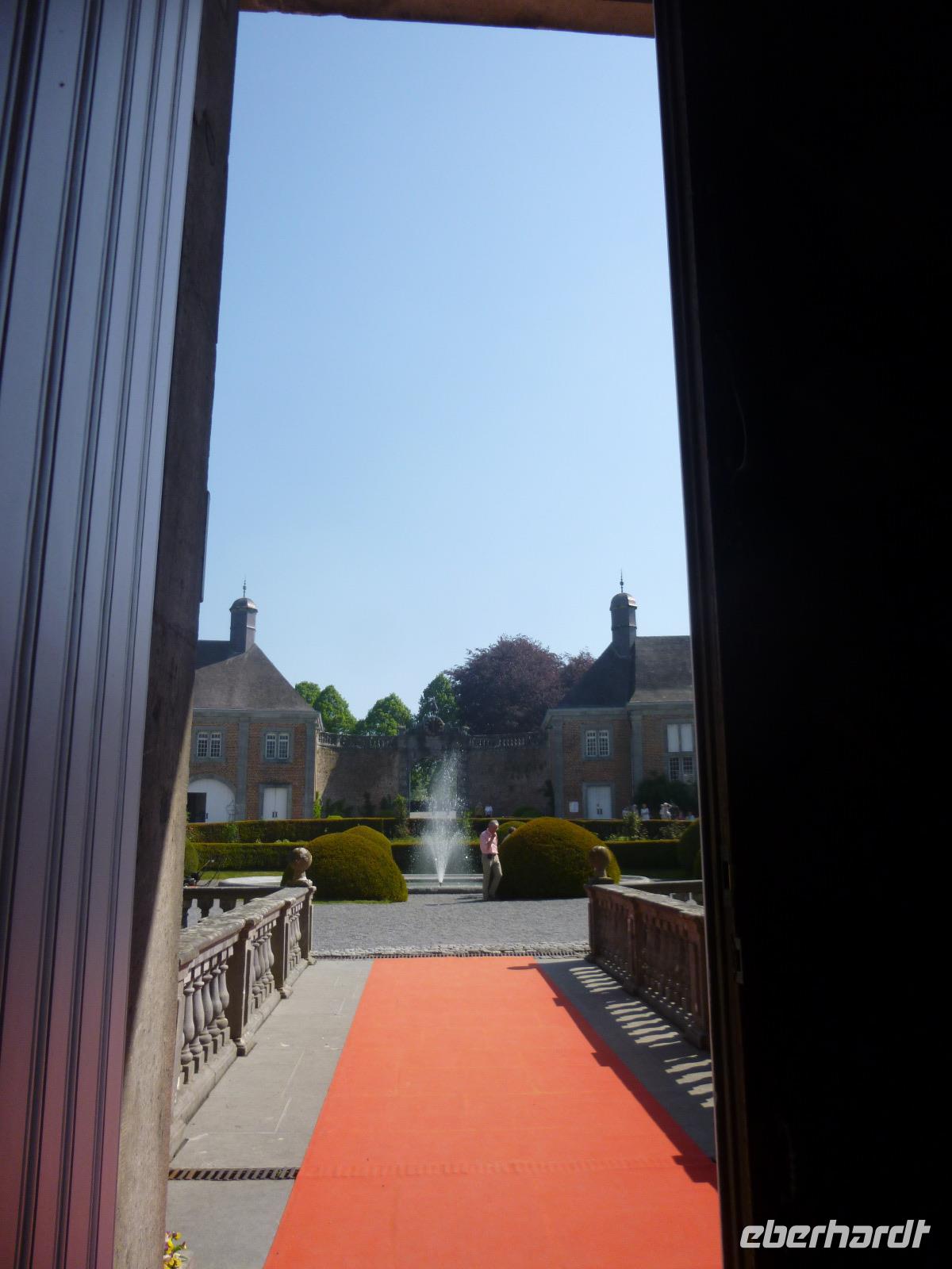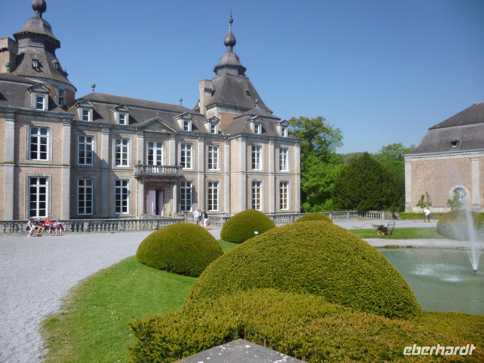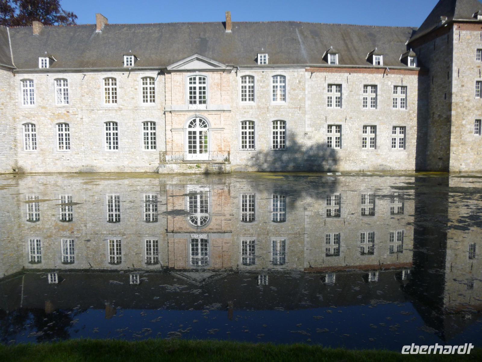 Das Schloss in Modave sechzig Meter hoch über der Hoyoux war für uns eine Überraschung: wunderbar in Park und Streuobstwiesen eingebettet, bot es uns mit seiner gut erhaltenen kostbaren Innenausstattung ein Spiegel des fürstlichen Wohnens im 17. Jahrhundert. Technischer Höhepunkt war die alte Wasserkunst vom Zimmermann Sualem, Vorläufer für seine Anlage in Marly für die Schlossanlage von Versailles. Ihm verdankten die Schlossbewohner die Kostbarkeit fließenden Wassers, damals eine Seltenheit.