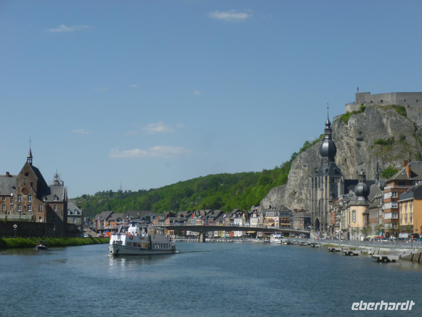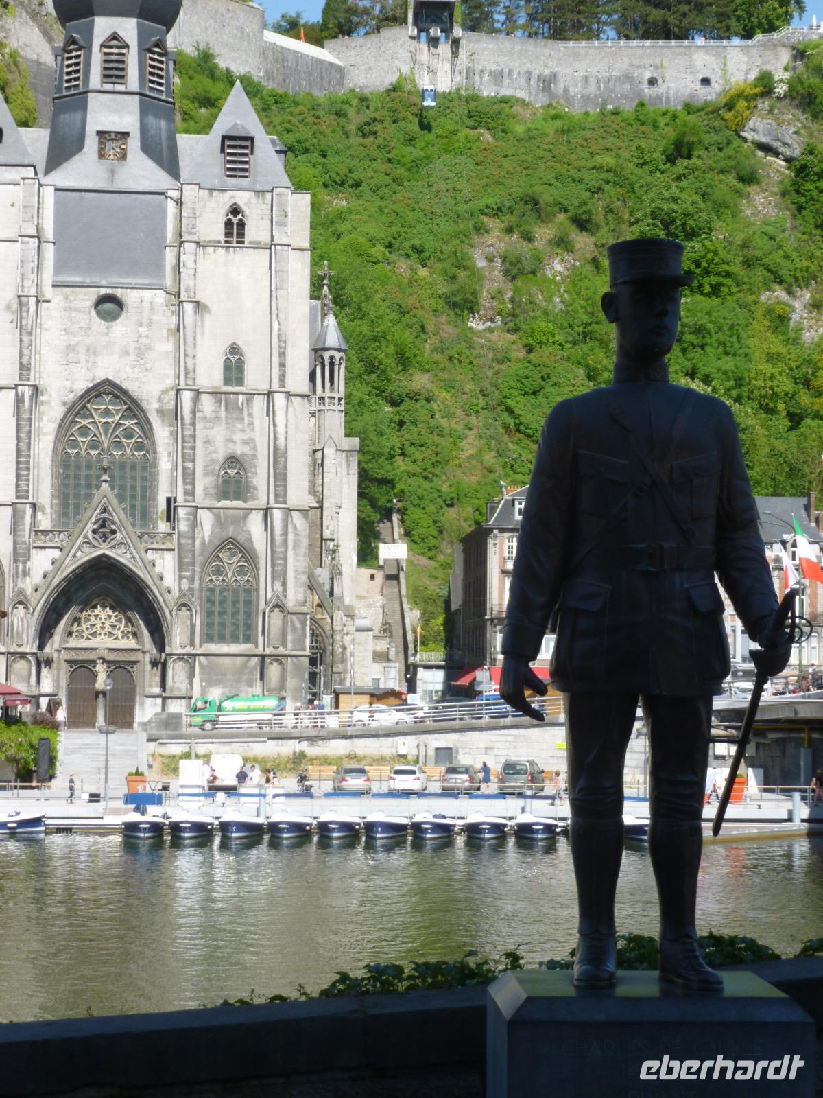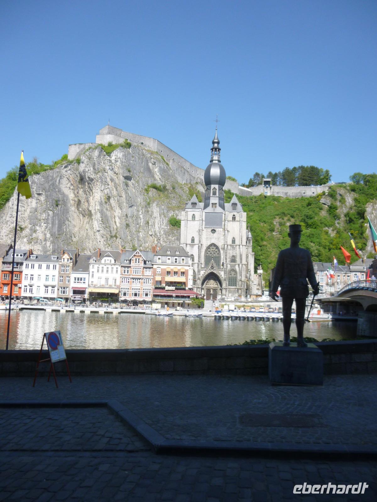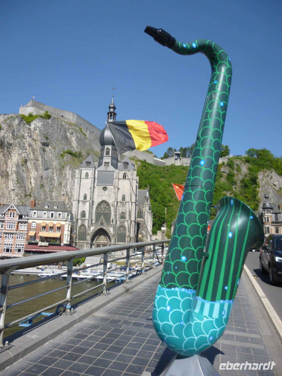 Im oberen Maastal unter schroffen Felsen gelegen, erhebt sich das Zitadell-Städtchen Dinant, das wir zunächst während einer Maasbootsfahrt kennenlernten. Es ist nicht nur wegen seiner Kupferwaren (Dinanderien) bekannt, sondern auch wegen des Saxophon-Erfinders Adolphe Sax. Überall sahen wir übergroße, verschieden gestaltete Saxophone - an die Spuren des ersten Weltkrieges erinnerte ein Denkmal von De Gaulle am Maasufer.