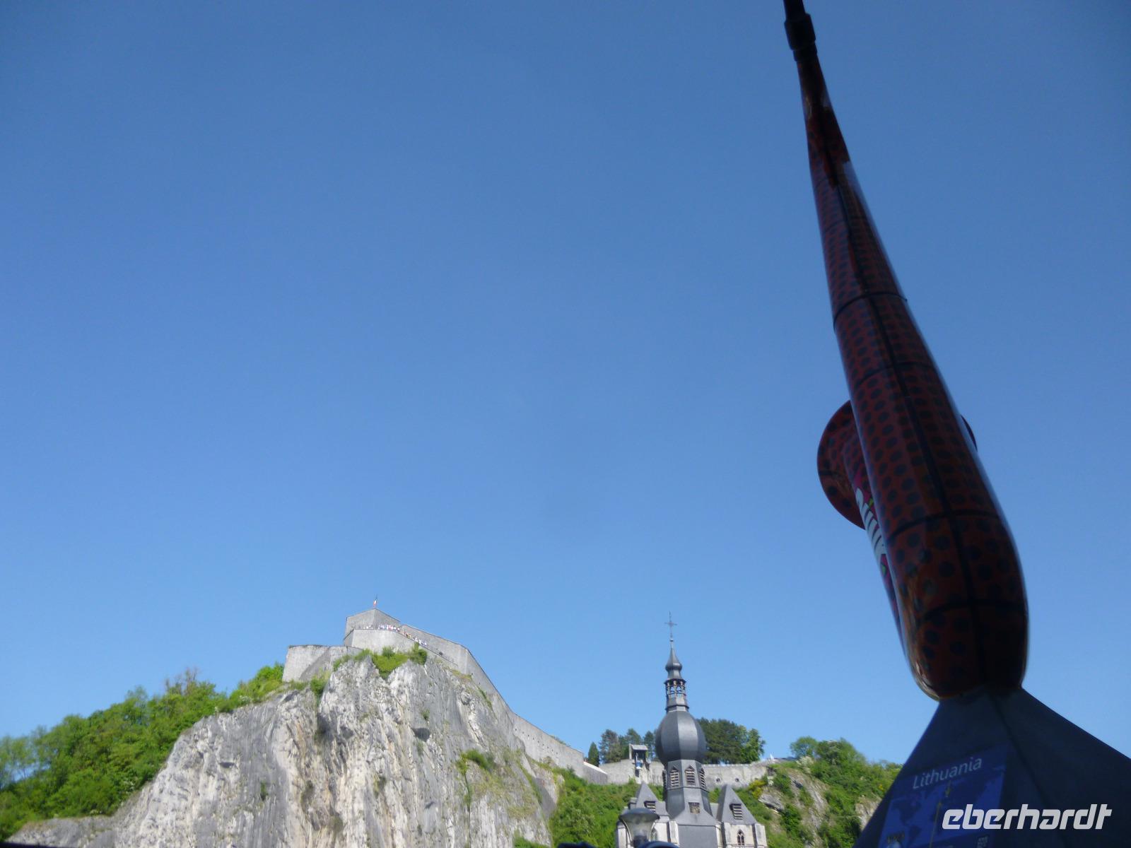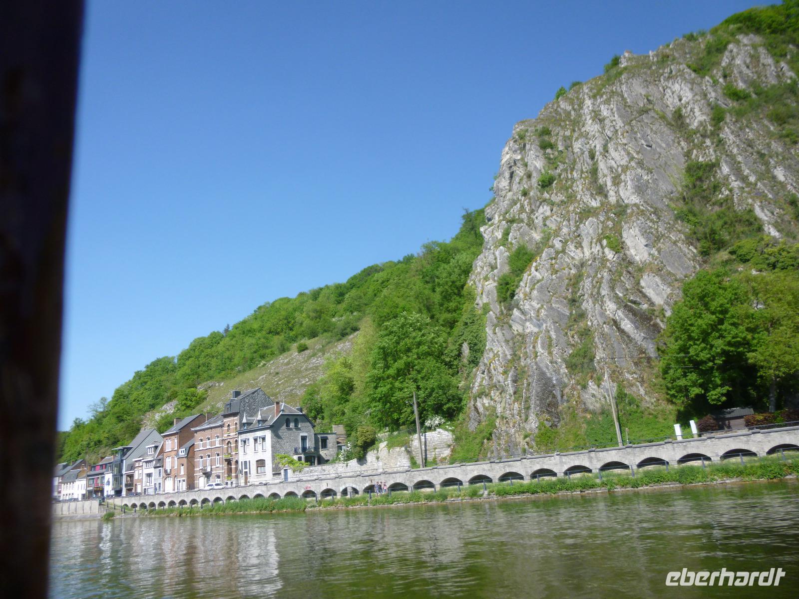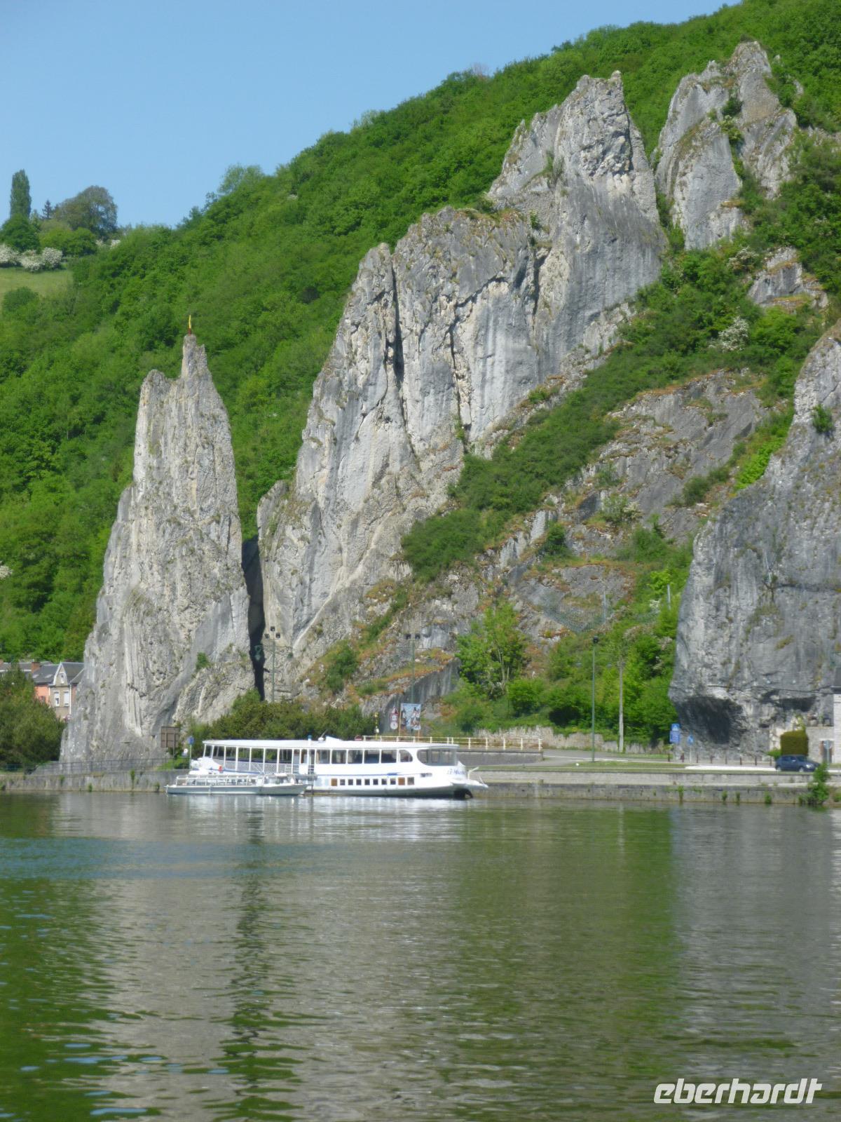 Im oberen Maastal unter schroffen Felsen gelegen, erhebt sich das Zitadell-Städtchen Dinant, das wir zunächst während einer Maasbootsfahrt kennenlernten. Es ist nicht nur wegen seiner Kupferwaren (Dinanderien) bekannt, sondern auch wegen des Saxophon-Erfinders Adolphe Sax. Überall sahen wir übergroße, verschieden gestaltete Saxophone - an die Spuren des ersten Weltkrieges erinnerte ein Denkmal von De Gaulle am Maasufer.