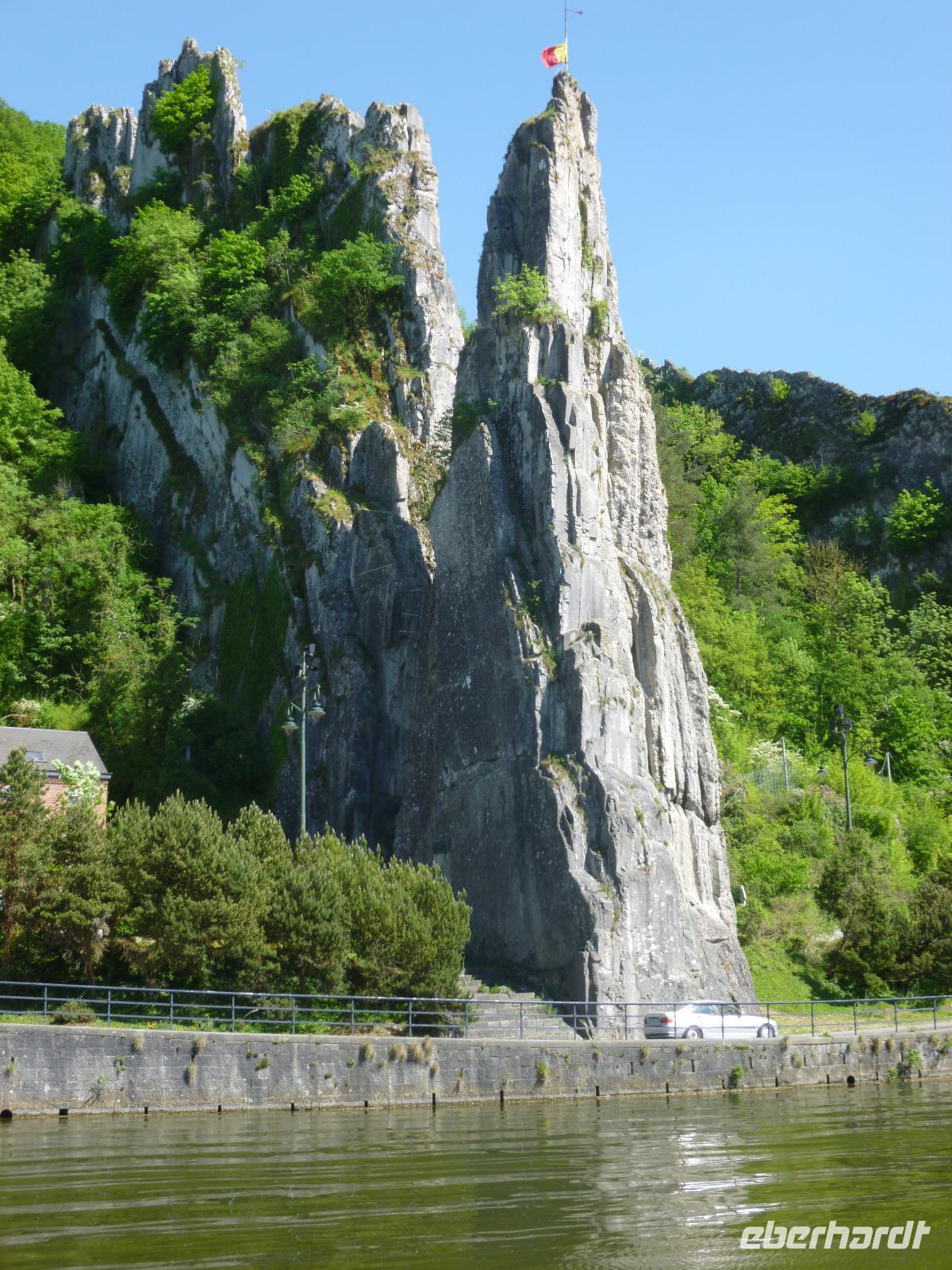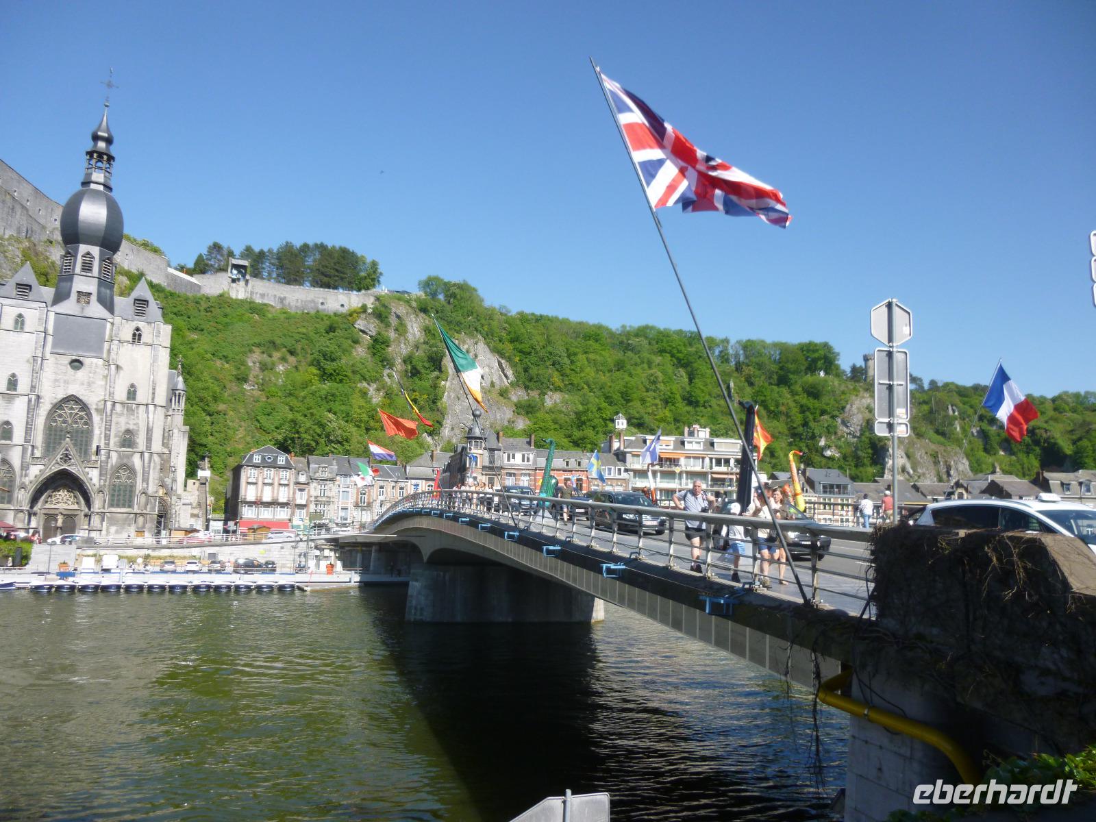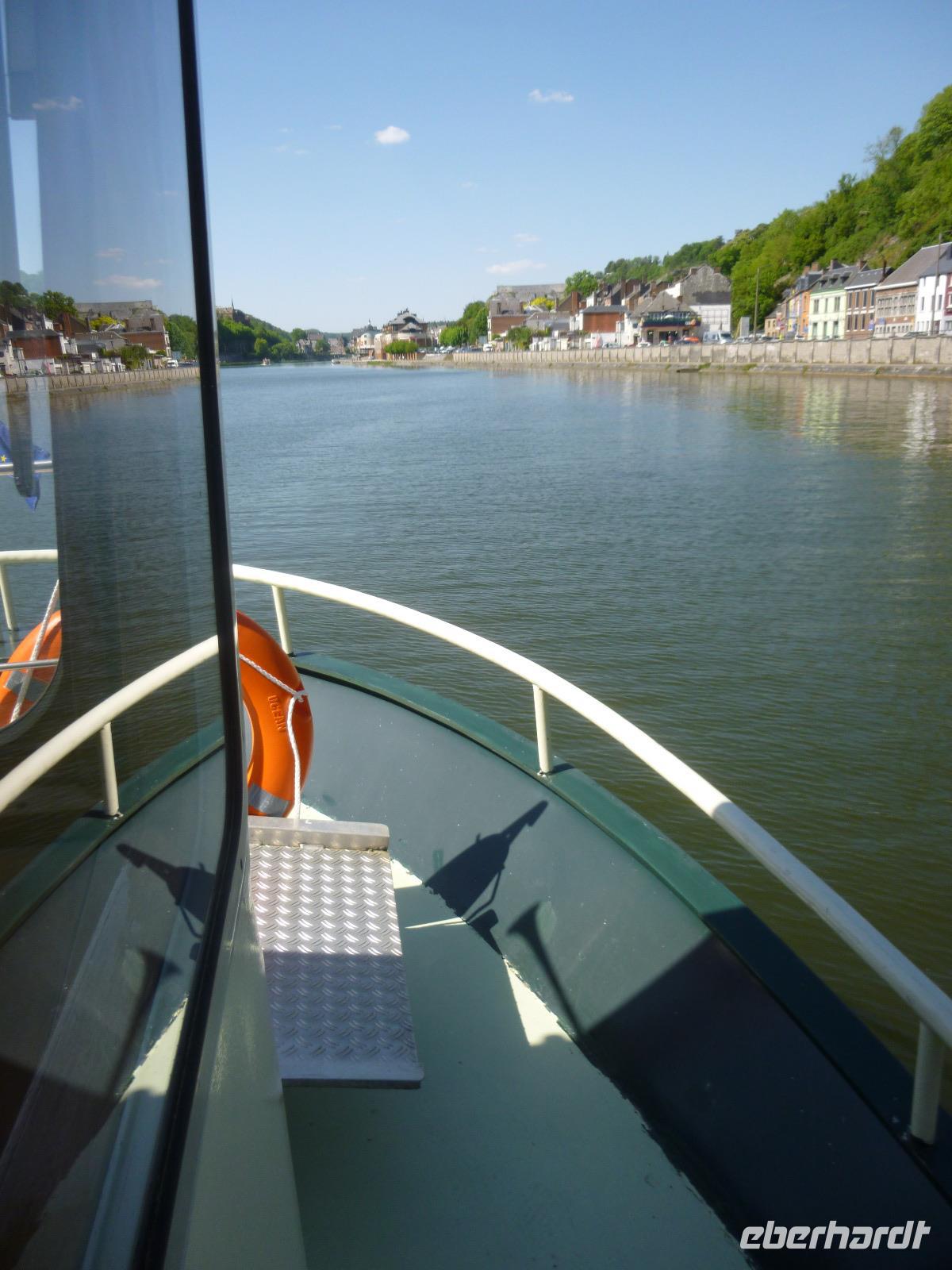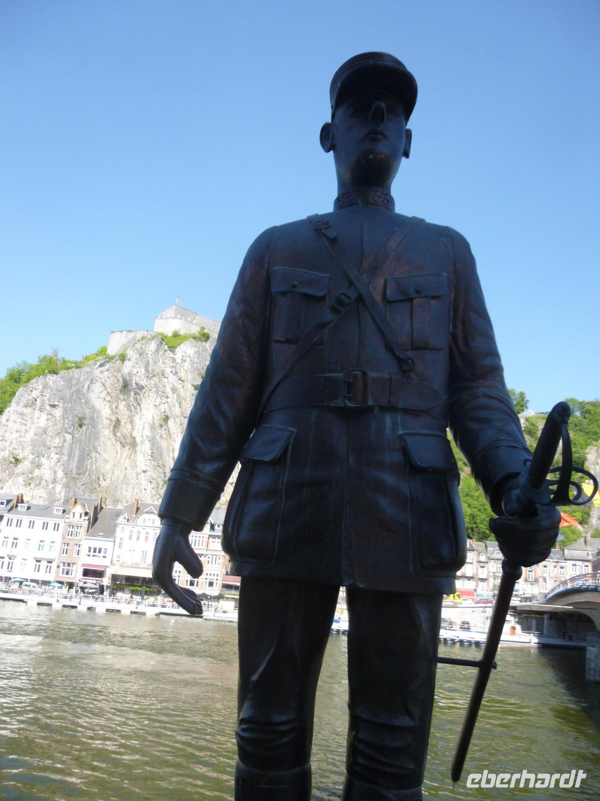 Im oberen Maastal unter schroffen Felsen gelegen, erhebt sich das Zitadell-Städtchen Dinant, das wir zunächst während einer Maasbootsfahrt kennenlernten. Es ist nicht nur wegen seiner Kupferwaren (Dinanderien) bekannt, sondern auch wegen des Saxophon-Erfinders Adolphe Sax. Überall sahen wir übergroße, verschieden gestaltete Saxophone - an die Spuren des ersten Weltkrieges erinnerte ein Denkmal von De Gaulle am Maasufer.
