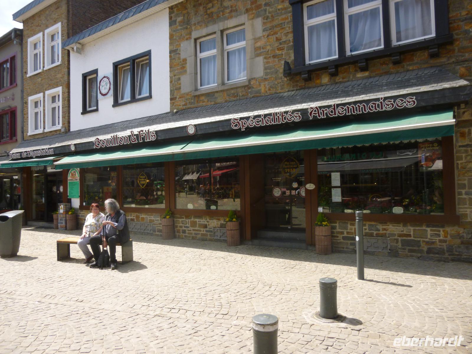 La Roche-en-Ardenne erstreckt sich unter der malerischen Burgruine und gleich auf der Hauptstraße fanden wir das familiengeführte Maison de Bouillon et Fils, wo wir offen und gastfreundlich zu Führung und Verkostung im Schinkenparadies aufgenommen wurden.