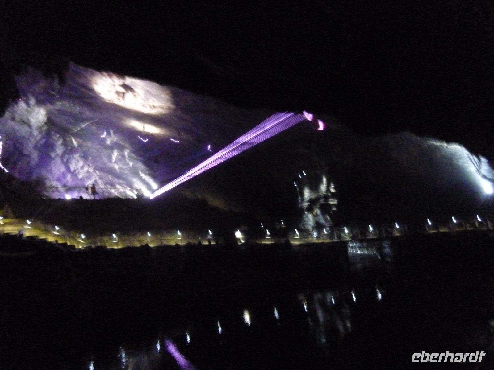 Auch wir erlagen bald der Fasznation gigantischer Säle (bis über 150 m lang) mit phantastischen Kuppel- und Turmformen, Wasserläufen und Seen. Nach einer Bahnfahrt hielten wir uns dort geführt über eine Stunde auf und liefen ca. 2 km. Es gibt dort auch einen Wildpark, den wir vom Bähnchen aus sahen.
