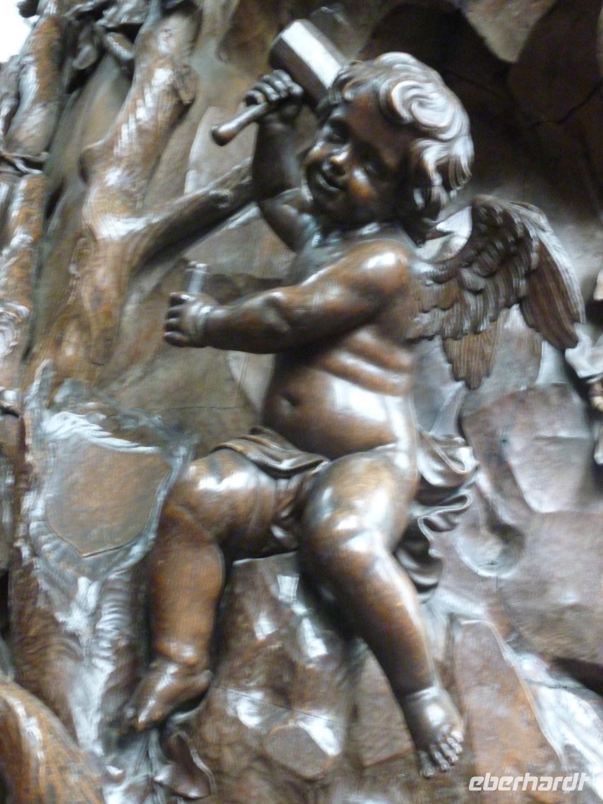 Leuven und Mechelen waren einst unter den Fittichen des Fürstbischofs von Lüttich und dessen Vögten. Der Reichtum kam mit dem Stapelrecht und florierendem Tuchgewerbe und blieb bis zum 14. Jahrhundert. Davon zeugt immer noch das überreich verzierte spätgotische Rathaus auf dem Löwener Markt, das einem Schmuckkästlein gleicht. Gleich neben der benachbarten St. Peterskirche mit der prachtvollen Prämonstratenserkanzel aus dem 18. Jahrhundert fanden wir auf unserem Rundgang mit unserer Studienreiseleiterin Grit die Brunnenfigur des "Fons Sapientiae", der das Wasser des Wissens unentwegt durch seinen Kopf laufen lässt.