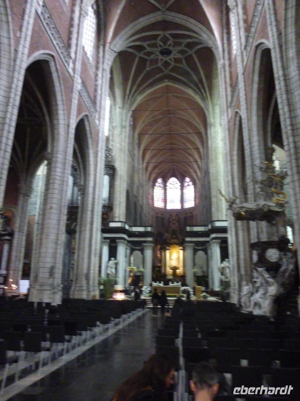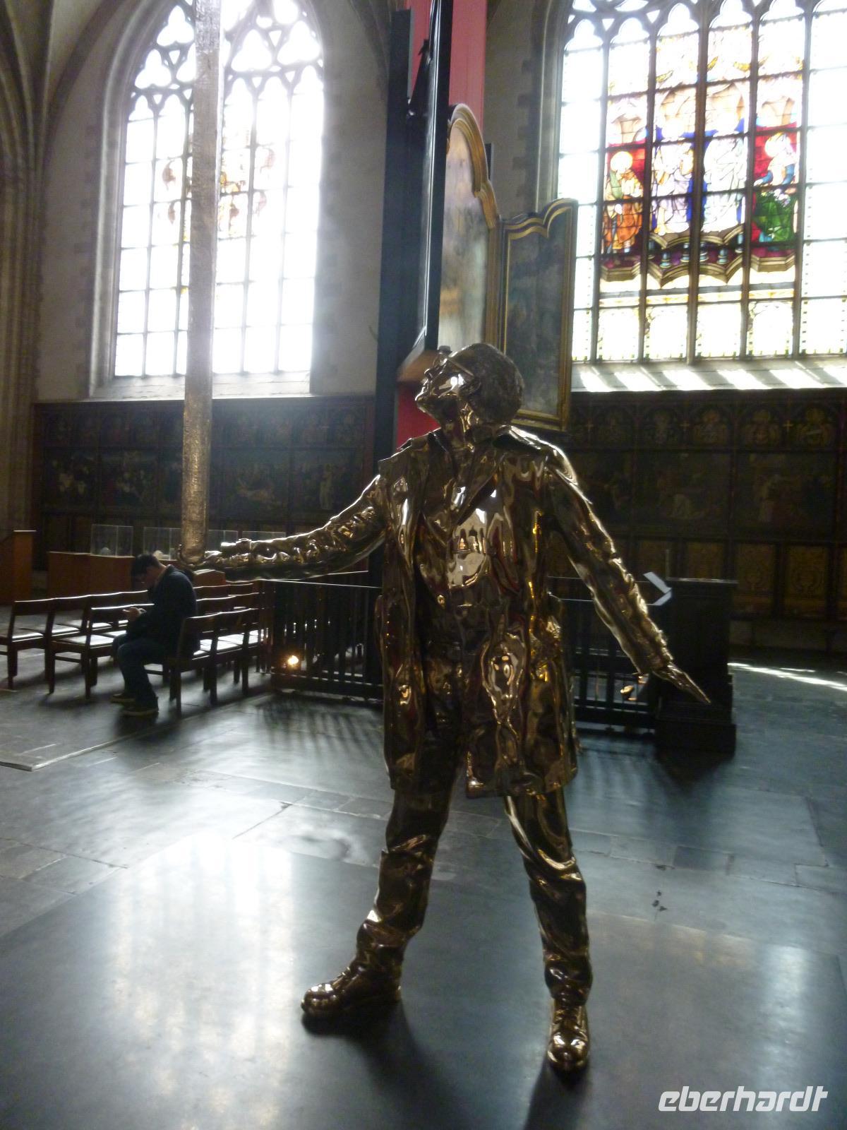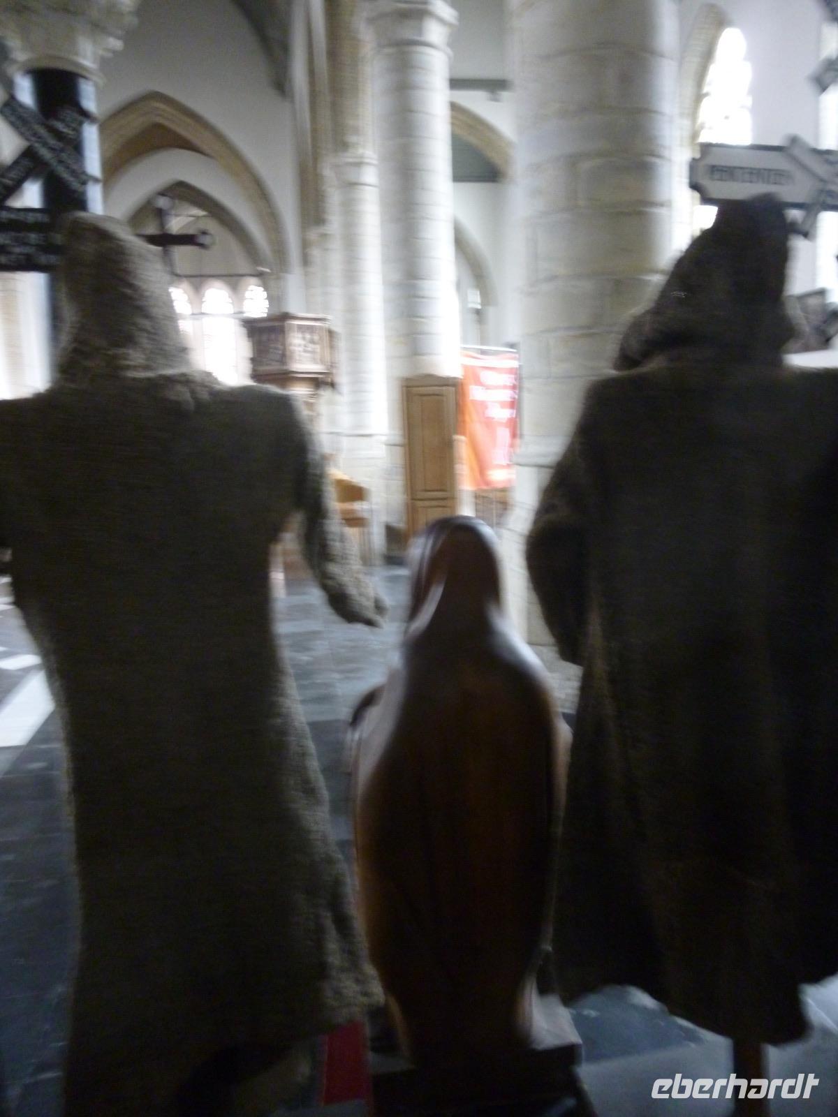 Höhe- und Schlußpunkte der Führung war die St. Bavokirche (Baubeginn ab 1300) mit dem berühmten Genter Altar. Jan van Eycks Werk von 1432 zählt zu den berühmtesten Kunstwerken der Welt und erlitt ein bewegtes Schicksal durch viele Begehrlichkeiten von Philip II. bis Hitler.
