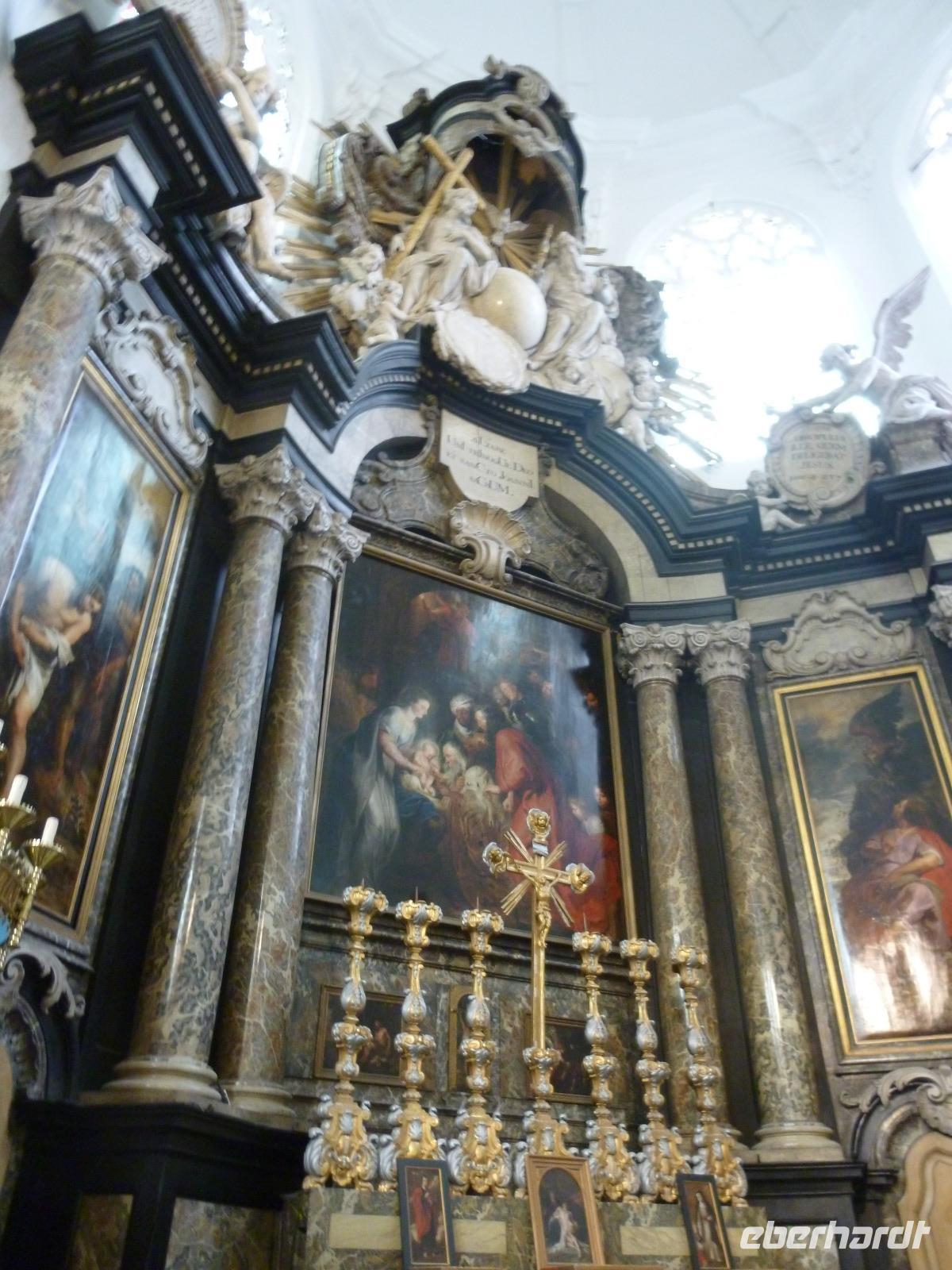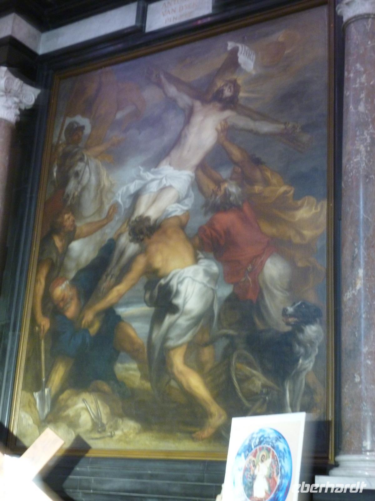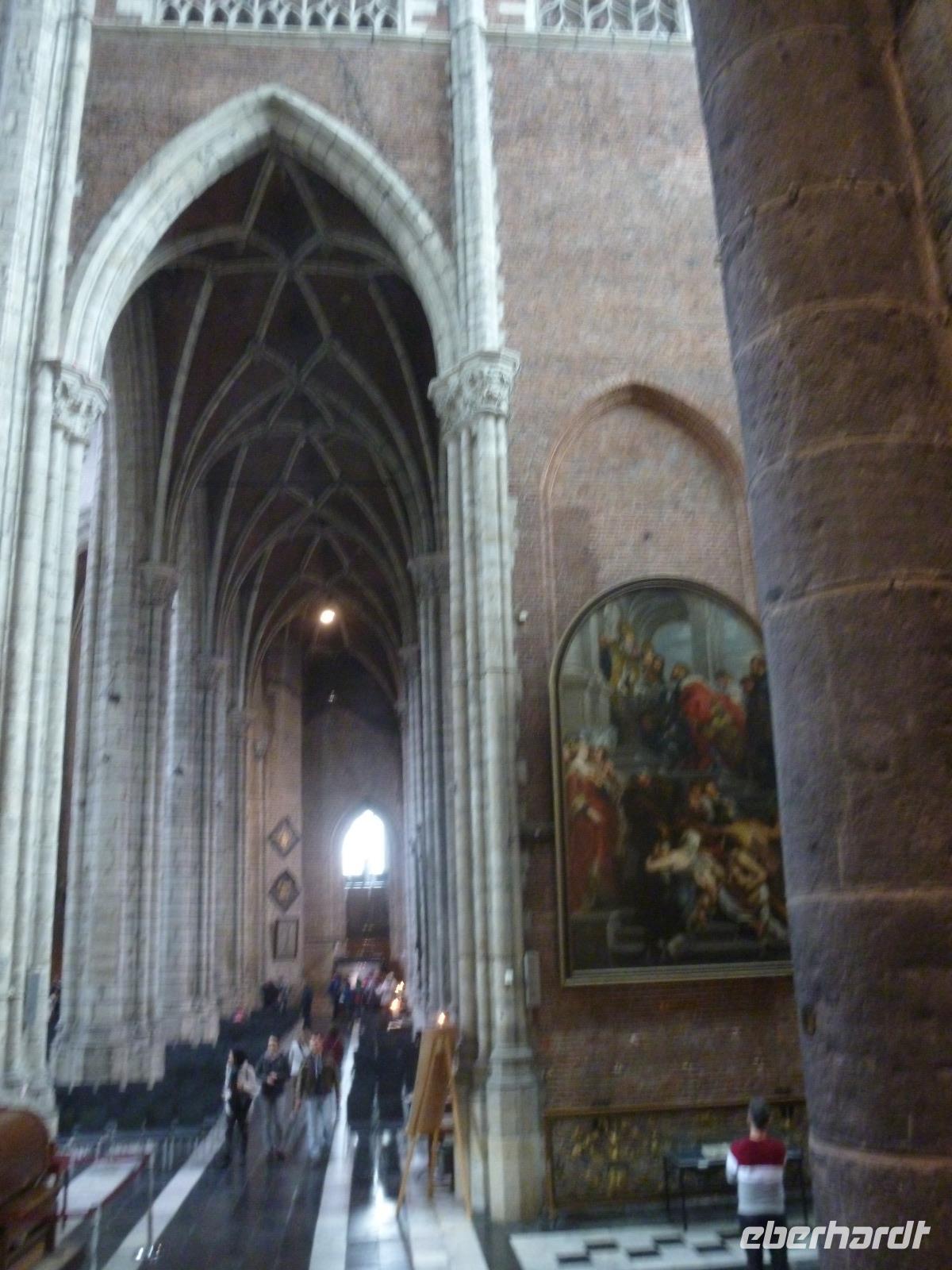 Höhe- und Schlußpunkte der Führung war die St. Bavokirche (Baubeginn ab 1300) mit dem berühmten Genter Altar. Jan van Eycks Werk von 1432 zählt zu den berühmtesten Kunstwerken der Welt und erlitt ein bewegtes Schicksal durch viele Begehrlichkeiten von Philip II. bis Hitler.