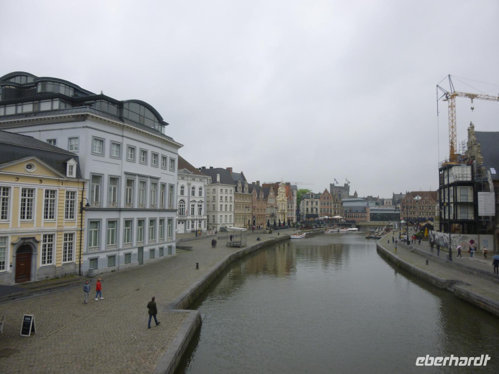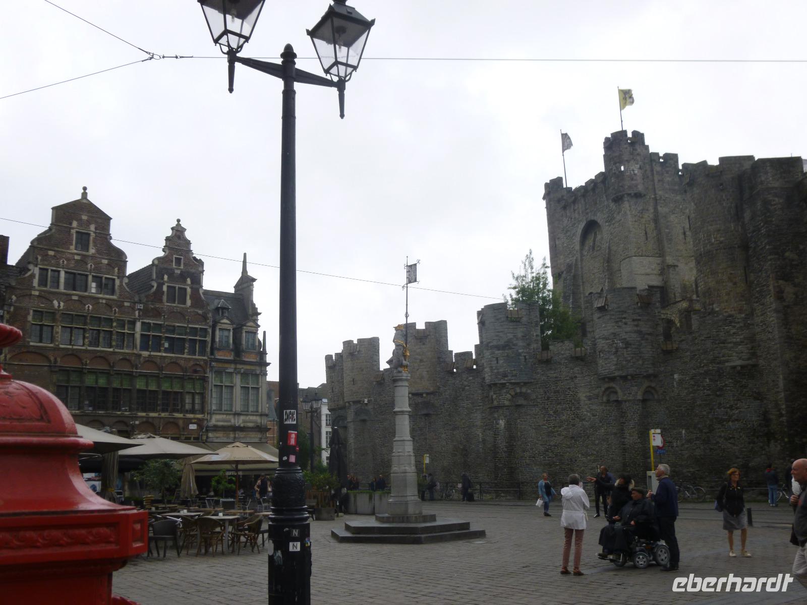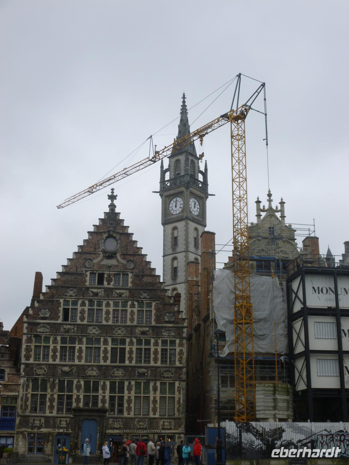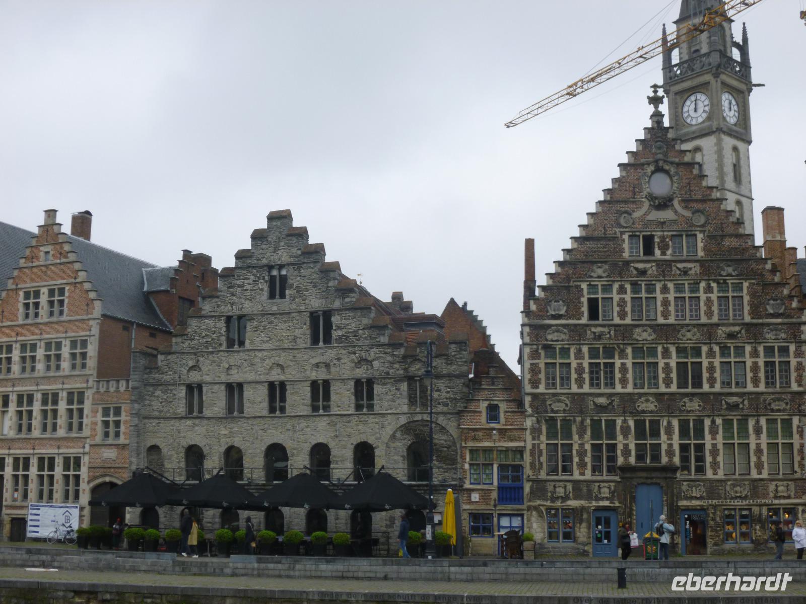 Am nächsten Morgen grüßten wir wieder die Radfahrer, die an vier Tagen - von Polizei in Mechelen eskortiert - je 250 km zurück legen wollten. Dann ging es zur Kaiserstadt Gent, die weit schöner als ihr Bahnhof ist: um den Gravensteen präsentieren sich die Grafen Flanderns, um den Graslei und Korenlei die stolze Bürgerschaft: schon um 1200 wurde hier Tuch gewebt.