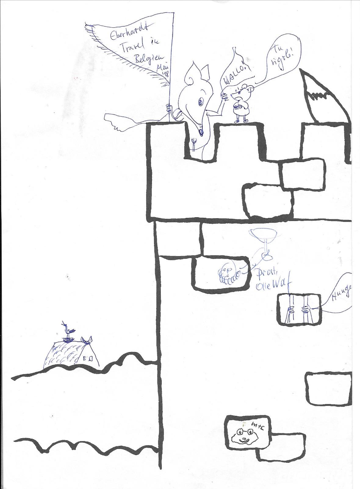 Brüssel, einst des Malers Pieter Breughel flämisches Arkadien, lernten wir vom EXPO-Gelände aus kennen. Immer aufs neue erstaunt Waterkeyns Eisenkristallgitter Atomium - Symbol des Atomzeitalters. Ein Fotostopp genügte uns, wir wollten die Innenstadt erkunden. Vorbei an Ausstellungshallen, Pavillons und der königlichen Residenz in Laeken fuhren wir mit Dirk über die Oberstadt mit Königspalast, Botschaften und protzigem Gerichtsgebäude zur Kathedrale und erkundeten von dort zu Fuß die Gegend um den Großen Markt mit Hubertusgalerie, Rathaus (mit Hochzeiten im 15-Minuten-Takt), Männeken Pis und Comic-Wandbildern (Tim und Struppi von Hergè).