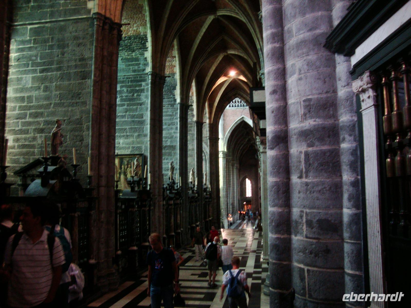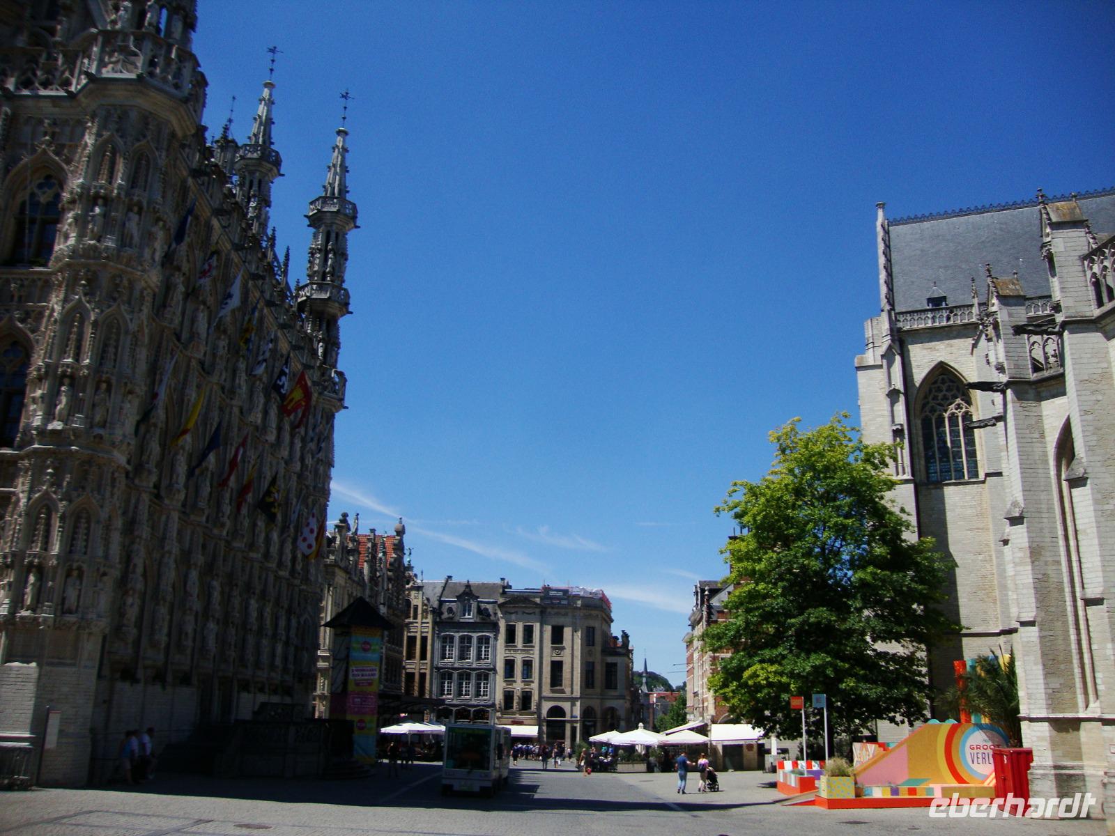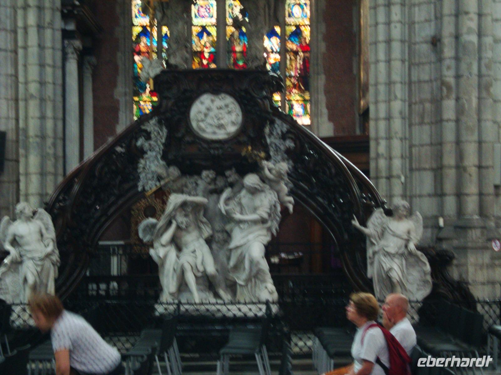 Heute hies es Koffer einladen, denn unsere nächste Station, Mechelen, wollten wir am nachmittag erreichen. peter hatte die koffer ganz schnell verstaut und wir fuhren zuerst nach Waterloo. Auf diesem öden Feld kämpfte Napoloen am 18.Juni 1815 seine letzte Schlacht. Am Ende des langen, blutigen Tages musste er sich dem britischen Feldherrn Wellington und dem preußischen General Blücher geschlagen geben. Dies und vielmehr kann man im Memorial in Augenschein nehmen. Vom 40 m hohen Löwenhügel lässt sich die ganze Ausdehnung ermessen. Nach einem kleinen Imbiss setzten wir unsere Reise fort. Leuven, die Stadt mit dem schönsten Rathaus, erreichten wir am frühen Nachmittag. Munter und jugendlich ist die Atmosphäre im großen Beginenhof aus dem 13.Jh., der heute als Studentenwohnheim dient. Berühmtestes Bauwerk Leuvens und ein Meisterwerk spätgotischer Archtektur ist das Rathaus, das wie ein fein gemeißelter Schrein auf dem "Grote Markt" steht. Wenn man nach Mechelen kommt, sieht man den hohen Turm der gotischen Sint-Romboutskathedraal aus dem 13.-15.Jh. 97 m ragt er empor und ist doch unvollendet -ursprünglich waren 167 m geplant. Margarethe von Österreich, mit kurzer Unterbrechung 1507 - 30 Statthalterin der habsburgichen Niederlande, machte die Stadt zu ihrer residenz und versammelte Künstler und gelehrte an ihrem Hof. Das erfuhren wir bei einem Rundgang mit ihr und auch eine Bierprobe im restaurant "Concorde" fehlte nicht. Es lief die erste Halbzeit des WM -Endspiels Frankreich Kroatien. Unsere Begleitung brachte uns bis zum Novotel, wo wir die nächsten 3 Tage verbrachten. Der Weltmeister stand fest und wir gingen zu Fuß bis in die Brauerei "Het Anker", wo uns ein leckeres Abendessen, natürlich mit Bierverkostung erwartete. Ein uriges Bierlokal, mit vielen Gästen und netter Bedienung, lies die Zeit recht schnell vergehen.