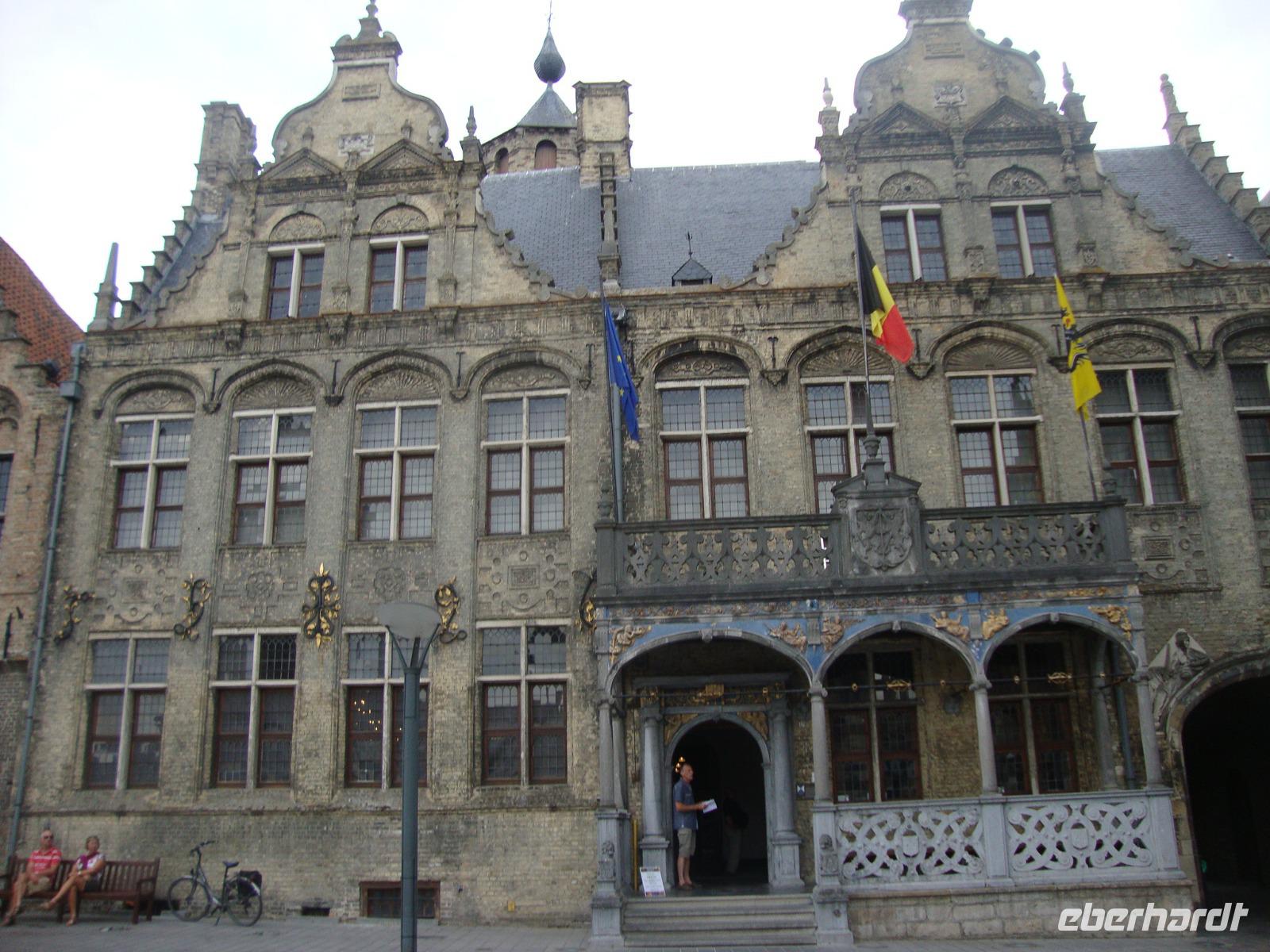 Zuerst besuchten wir die Stadt Veurne. Charme und Stil verbreitet sie schon am Grote Markt. Die Häuser, die ihn säumen sind ehrwürdig und ein bisschen extravagant mit der großen Muschel, die fast jeden Treppengiebel schmückt. Verneus Bäckereien sind bekannt für ihr meisterhaftes Gebäck. Eine Spezialität sind die "Kletskoppen", knusprige Mandelplätzchen. Da wir nur noch wenige Kilometer vom Nordseestrand entfernt waren, bot sich ein kurzer Besuch am Meer an. Wir konnten die frische Seeluft schnuppern. Weiter ging unsere Rundfahrt nach Ypern. Ypern gehörte mit Brügge und Gent zum Dreigestirn der großen flämischen Handelsstädte. Im ersten Weltkrieg verloren fast eine Million Männer ihr Leben. Die Schützengräben waren nur teilweise 3 Meter auseinander. Von der stolzen mittelalterlichen Stadt war 1918 nur noch ein Haufen Schutt übrig. Wie präsent der Krieg immer noch ist, beweist auch "The Last Post", ein Zapfenstreich, der um 20.00 Uhr an der Menenpoort geblasen wird. Dieses Tor wurde 1923 - 27 an der Stelle errichtet, in seine Wände sind zehntausende Namen vermisster britischer Soldaten eingraviert. Unser letztes Ziel für heute war Kortrijk. Der große Tag der Stadt war der 11.Juli 1302. Damals schlugen die flämischen Fußtruppen vor den Toren der Stadt, die als unbesiegbare geltende französische Reiterarmee und ging in die Geschichte als "Schlacht der goldenen Sporen" ein. Wehrhaft wirkt Kortrijk noch immer. Die dicken Broeltürme etwa, Reste der alten Stadtbefestigung, schützten einst den Übergang über die Leie. Der Begijnhof wird als der schönste des Landes gerühmt. Die Produktion von feinem Tuch sicherte der Stadt Wohlstand, so dass sie sich ein repäsentatives gotisches Rathaus leisten und es prächtig ausstatten konnte. So ging auch dieser Tag mit vielen neuen Eindrücken und Erlebnissen zu Ende.