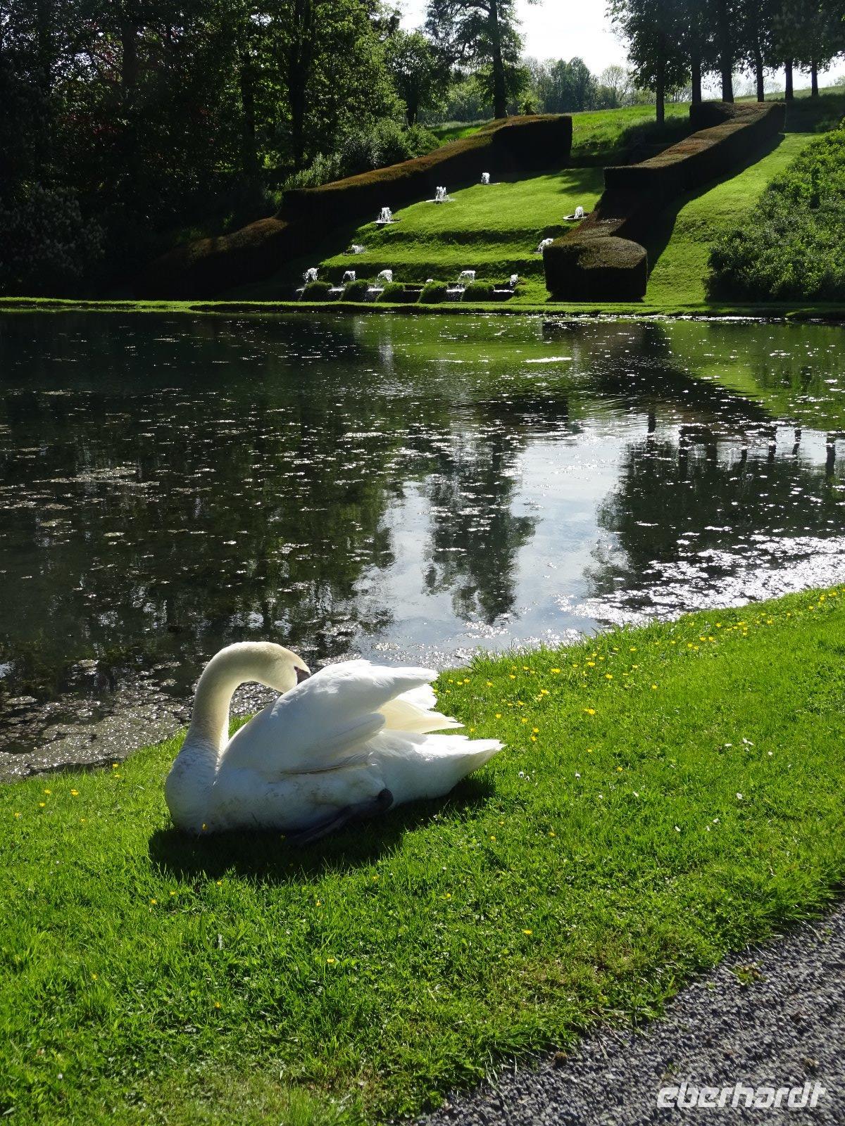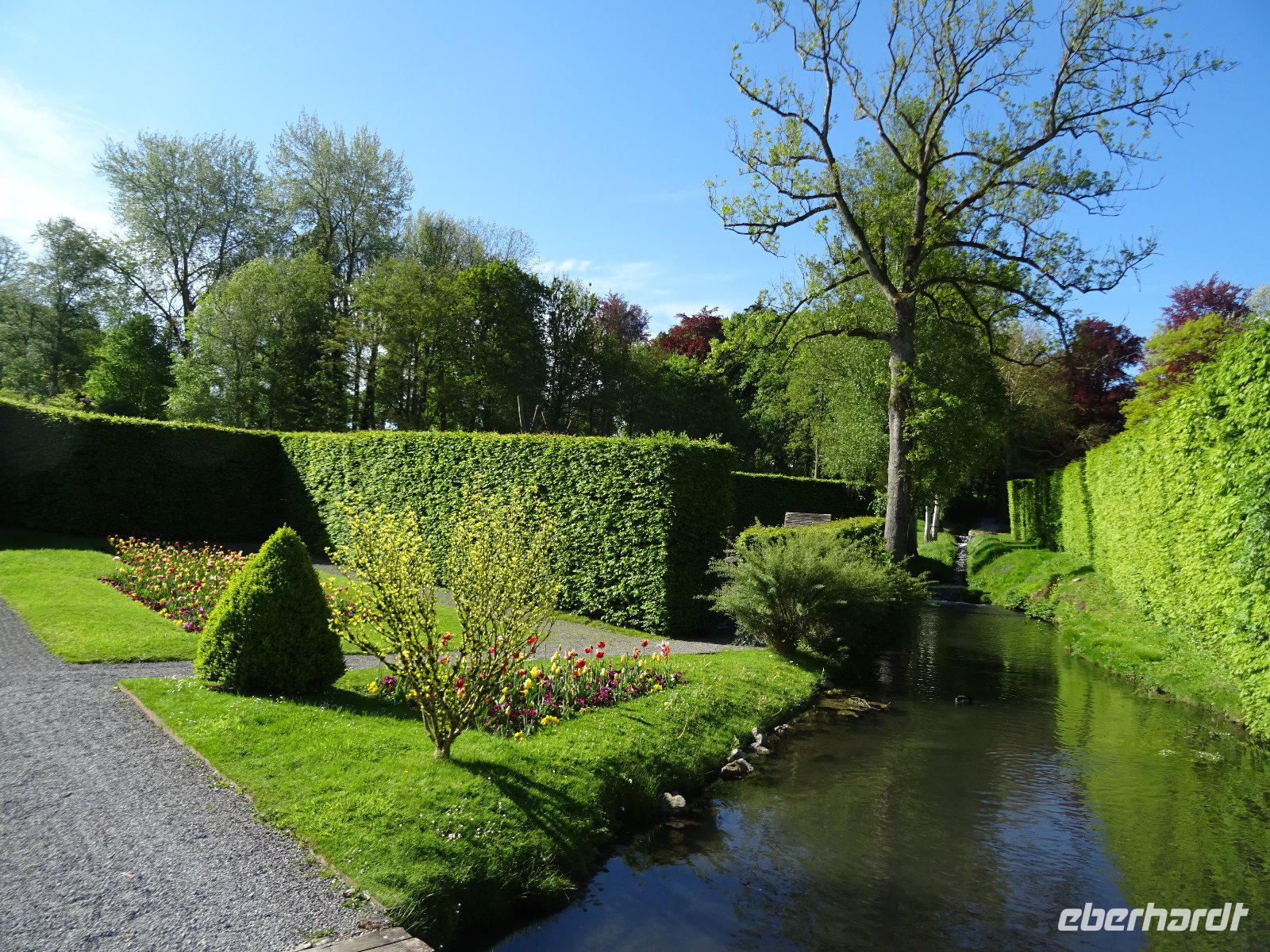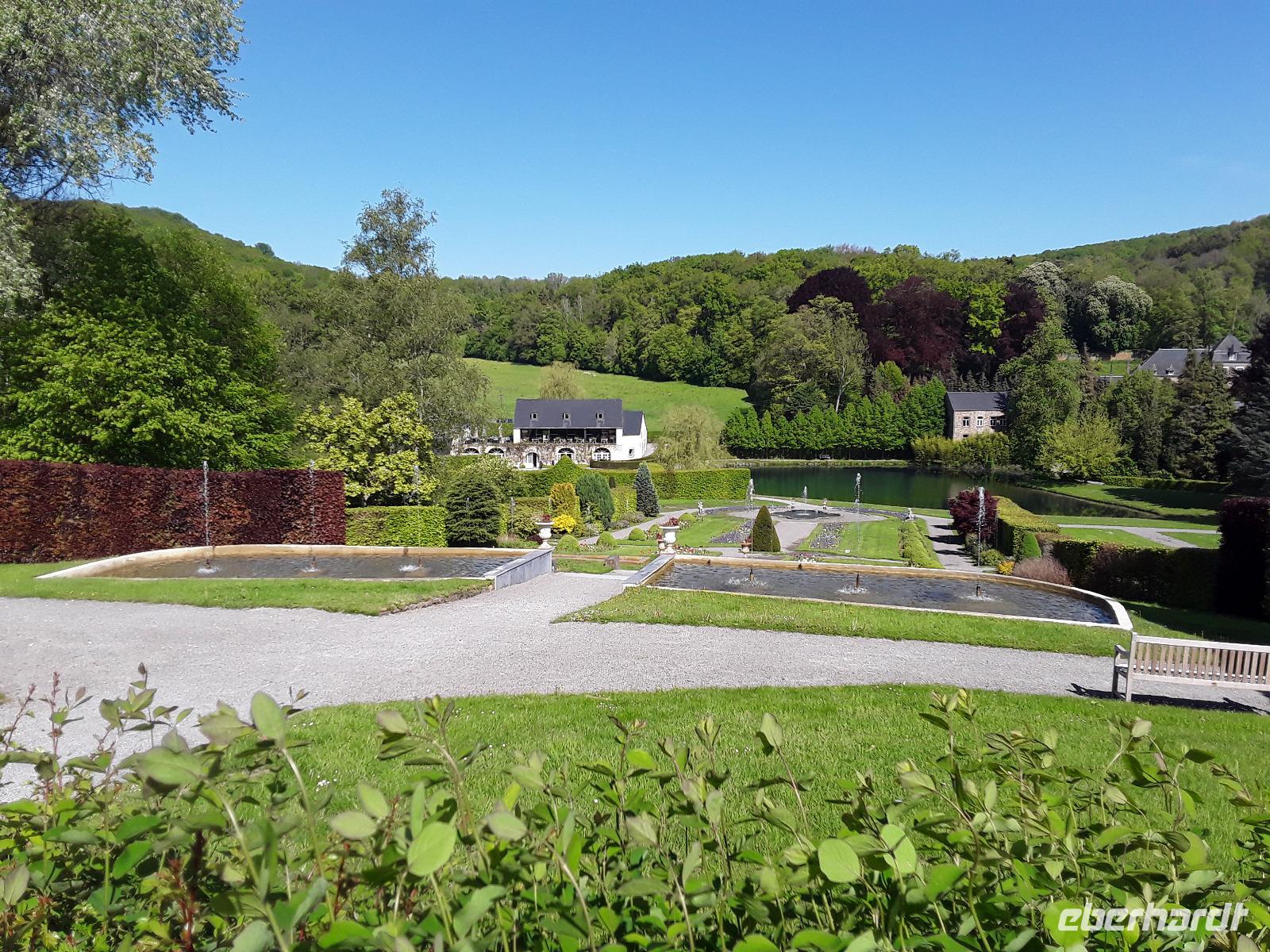 Am zweiten Tag ging es auf Fahrt in die Maas-nahen Gegenden. Zuerst besuchten wir die Gärten von Annevois aus dem XVIII. Jahrhundert. Gespeist von 4 natürlichen Quellen fließt das Wasser von allein - ohne Pumpen - über den Großen Kanal zu einer Vielzahl von Wasserspielen. Die Bäume und Bepflanzungen waren im prachtvollen Grün. Pfau und Schwan wunderten sich über uns als die ersten Besucher an diesem Tag. Aber die Gartenführerin Annemarie hatte alle Erklärungen, die wir wünschten und gab uns ein beeindruckendes Bild von dieser herrlichen Gartenanlage.Weiter ging unsere Fahrt in die Abtei Maredsous. In der Gastwirtschaft der Abtei lernten wir bei einem kleinen Imbiss Bier und Käse aus der Abtei kennen. Unser Reiseleiter Hartwig ergänzte diesen Imbiss mit einem typischen Brot aus der Abtei. Die anschließende Führung erfolgte durch einen ehemaligen Geschichtslehrer der Abtei. Wir besichtigten die Kirche und das Abteigelände mit Paradiesgarten. Wir lernten eine wunderbare, auch heute noch genutzte Abtei, kennen. Unser Führer stellte uns die Bedeutung der Abtei für die europäische Geschichte dar und ging besonders auf die Gründung durch deutsche Mönche in 19. Jahrhundert ein. Eine abschließende Vorführung über die Käseherstellung ließ uns wieder auf die Pfade unserer Genussreise zurückkehren.Letzter Tagesordnungspunkt an diesem Tag war unser Besuch in Dinant. Die Zitadelle mit gotischer Liebfrauenkirche und die Denkmale des Saxophon-Erfinders Adolphe Sax sahen wir schon bei der Anfahrt zu unserem Schiff. Anschließend gab es eine herrliche Schiffsfahrt bis zur Mündung der Lesse mit Maas-Schleuse. Das Ortspanorama mit beindruckender Felsenwelt, durch die sich die Maas zwängt, beeindruckten uns sehr.