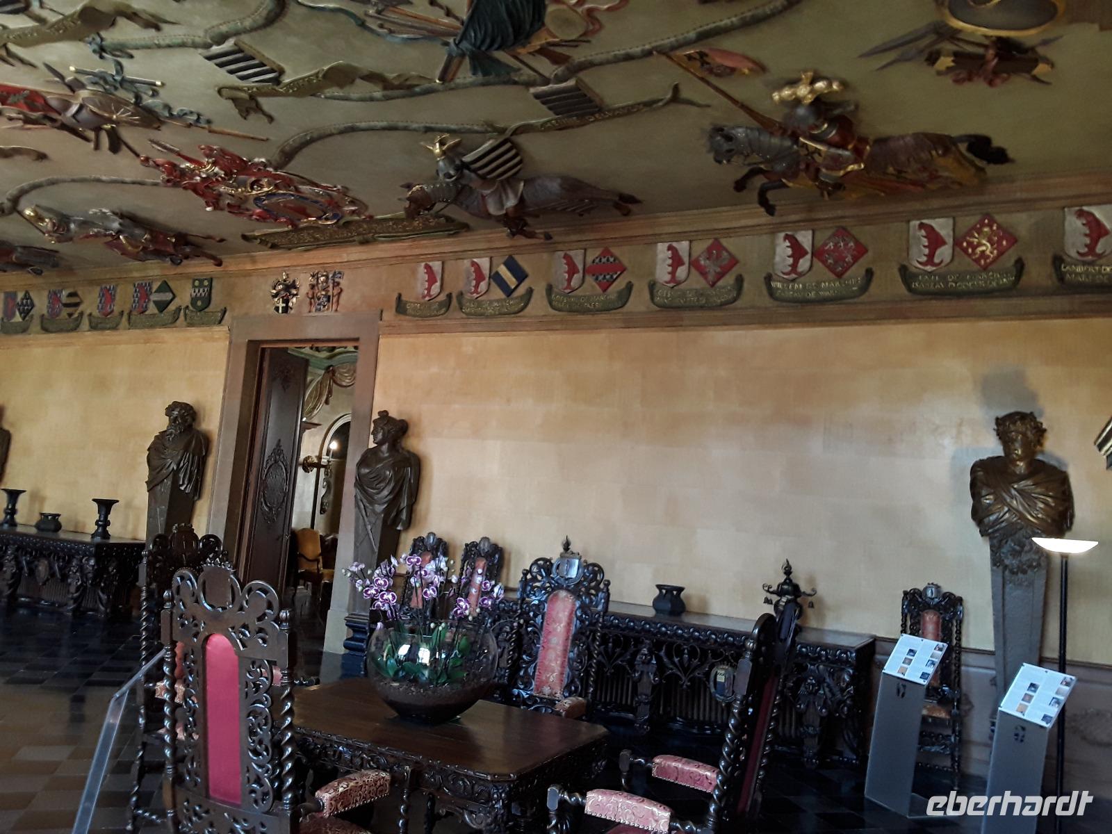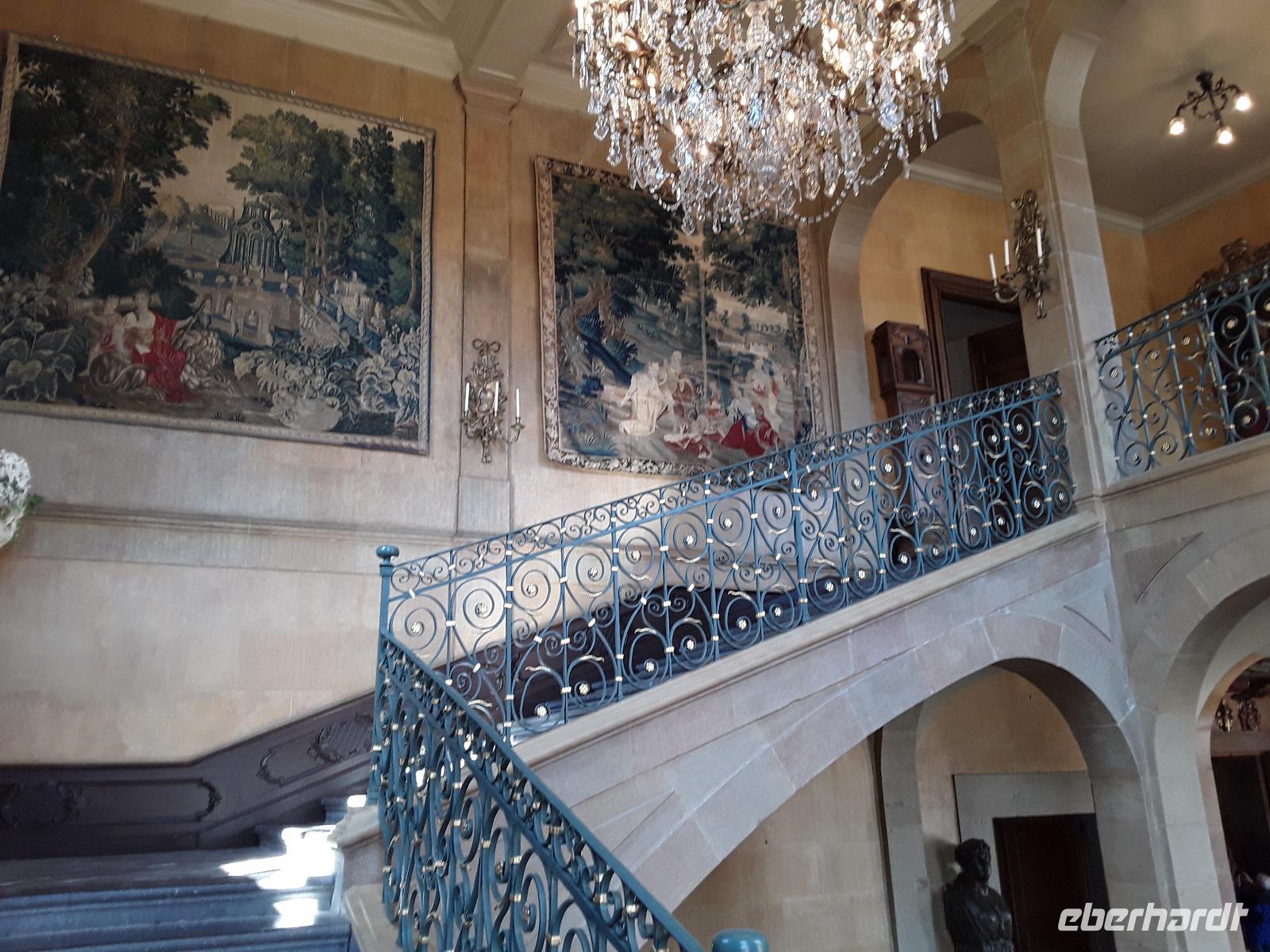 Den Ort Huy konnten wir nur vom Bus aus besichtigen, da der Mittwochsmarkt alle zentralen Parkmöglichkeiten belegt hatte. Das geschäftige Markttreiben beeindruckte uns trotzdem. Weiter ging es zum Schloss Modave. Hier wurden wir durch die Schlossherrin herzlich begrüßt. Audioguides gaben allen einen umfassenden Einblick in dieses sehr gut erhaltene Schloss. Haben Sie schon mal eine derart komfortabel eingerichtete historische Küche gesehen wie in diesem Schloss?