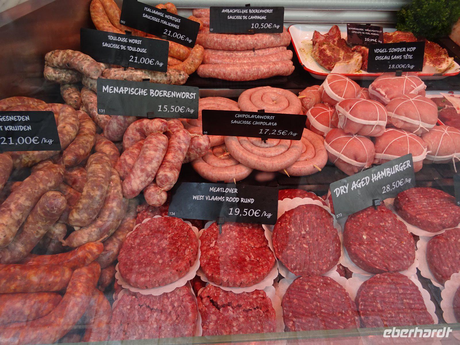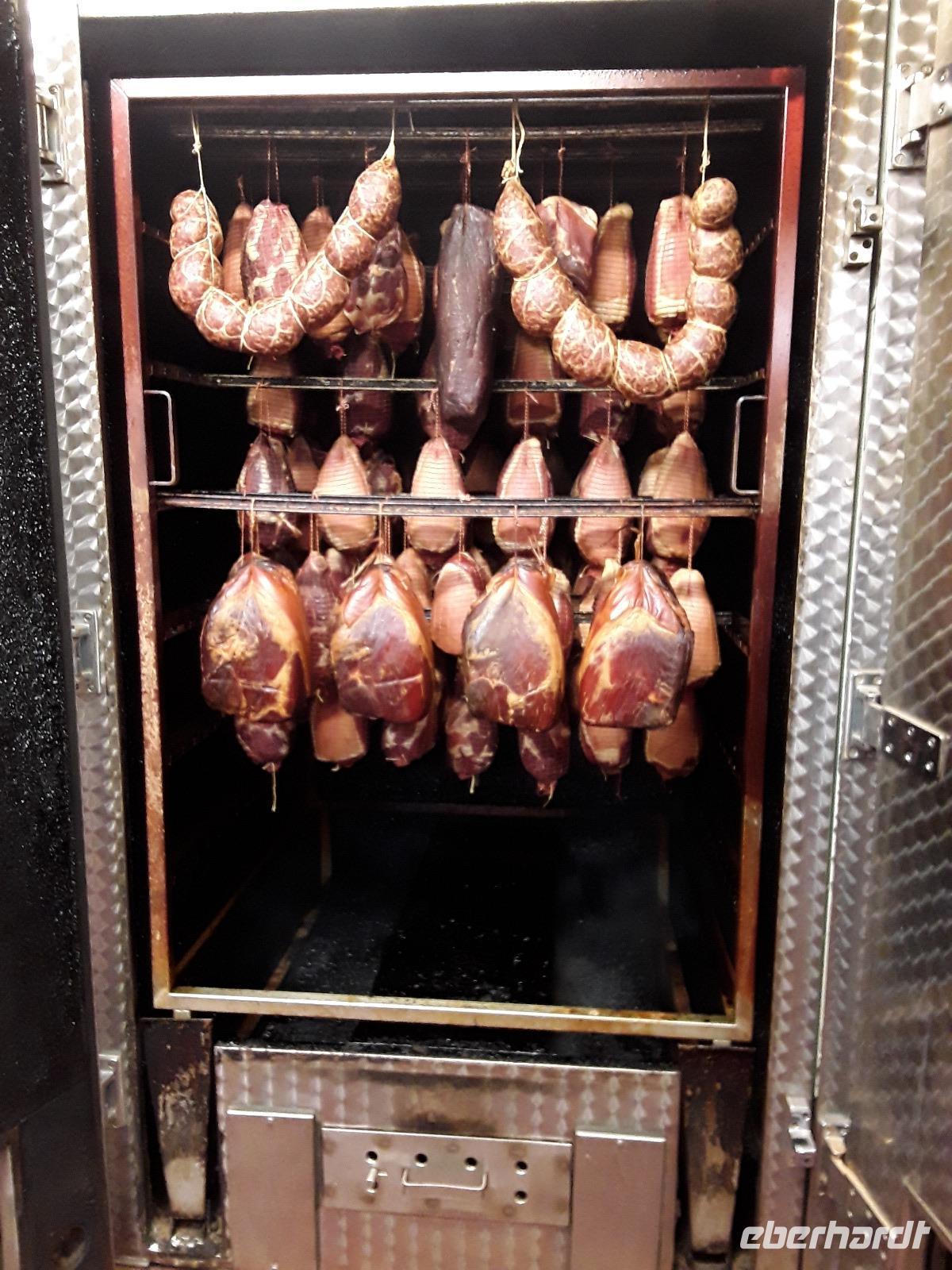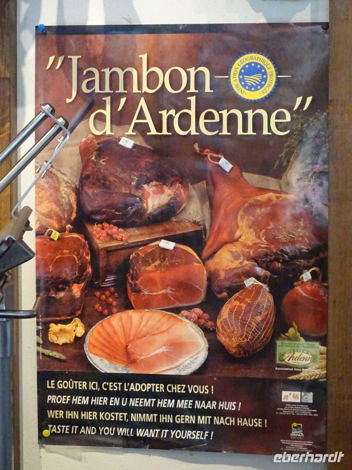 In La Roche-en-Ardenne wurden wir vom Fleischermeister der Maison Bouillon & Fils (gegründet 1955) persönlich begrüßt. Da wir eine kleine Gruppe waren, konnten wir alle Schritte der Herstellung der regionaltypischen Schinken und Wurstwaren direkt in den Räumlichkeiten der Fleischerei in Augenschein nehmen. Ein abschließender Imbiss mit Produkten der Fleischerei - passend zur Mittagszeit - zeigte uns auch hier die Vielfalt regionaler Erzeugnisse.