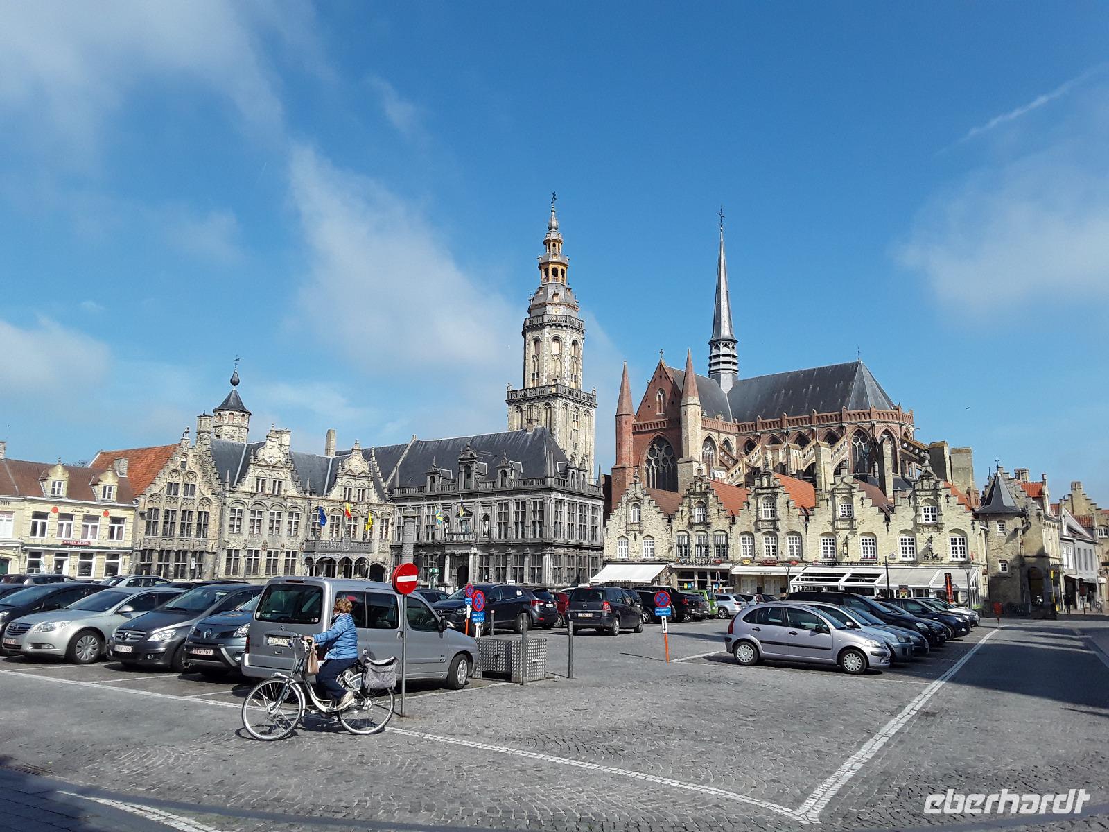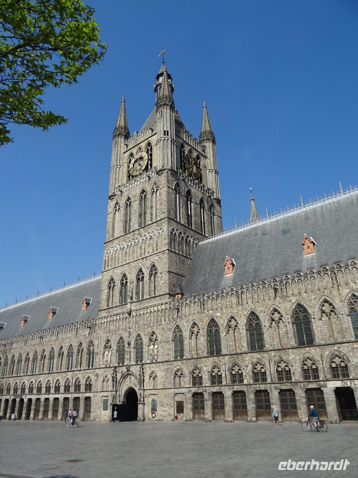Weiter ging unsere Fahrt nach Ypern. Ypern Ist vielen aus den Kriegserlebnissen des Ersten Weltkrieges und den Schlachten mit Einsatz von Giftgas bekannt. Die Stadt wurde vollständig zerstört, wir können Sie heute aber in herrlicher Pracht wiedererleben. Die große Tuchhalle, die früher mit Kähnen befahren werden konnte, der Belfried, das Rathaus und die monumentale St. Marteenskathedrale ergeben ein beeindruckendes Stadtbild.