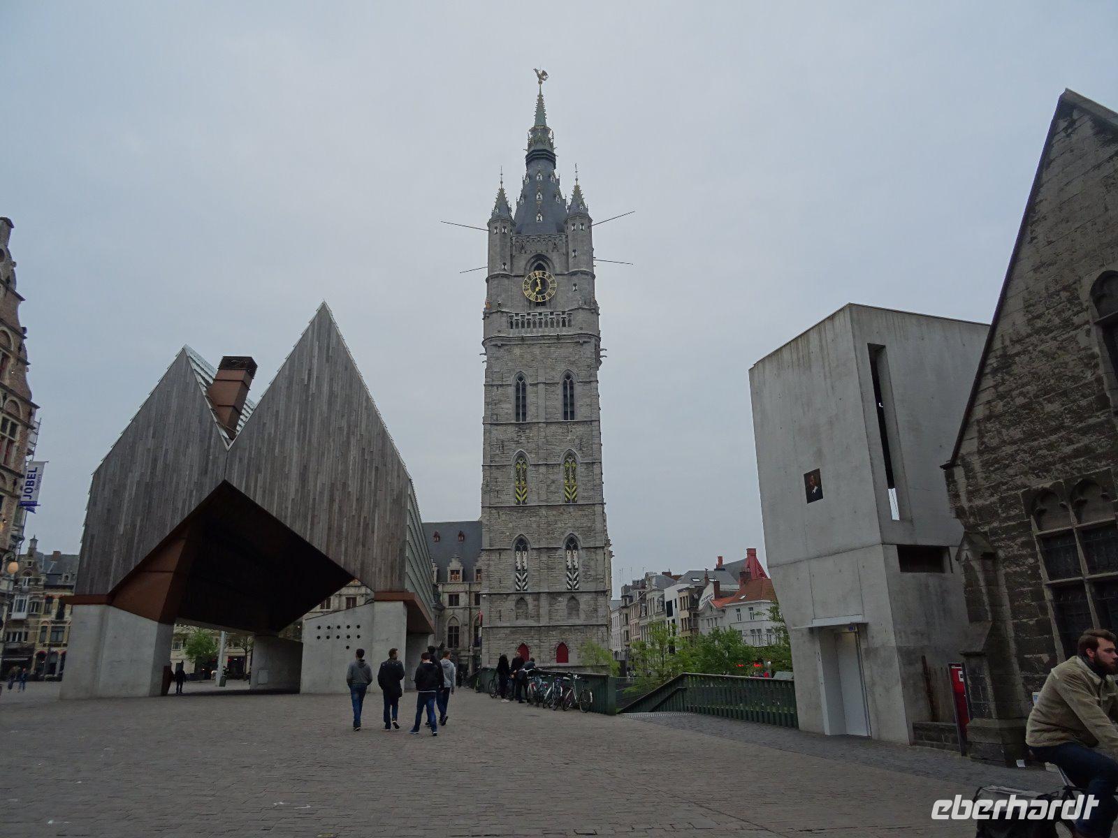 Bevor es zum Abendessen ging, führte uns unser Reiseleiter Hartwig in einem kurzen Stadtrundgang zur alten Handelskammer und zum Belfried.