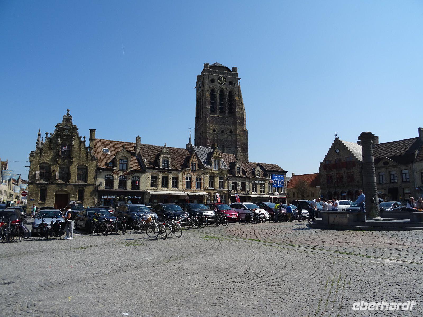 Am vorletzten Tag unserer Reise hatten wir noch drei Orte südlich von Brügge und Gent auf unserem Besuchsplan. Zuerst ging unsere Fahrt nach Veurne. Von Viktor Hugo wird der dortige Marktplatz als einer der schönsten Europas geschrieben. Wir konnten, nach einer Beerdigung, die St. Waldburga-Kirche besichtigen. Durch die vorherige Beerdigung konnten wir auch ein Totenglockenspiel erleben. Das von der St. Nikolauskirche viertelstündlich ertönende Glockenspiel wurde von vielen als meisterhaft eingeschätzt. Mit unserem Reiseleiter Hartwig machten wir dann einen kurzen Abstecher zur Patisserie Dedrie und konnten dort leckere Backwaren und Pralinés besichtigen - und selbstverständlich auch kaufen.