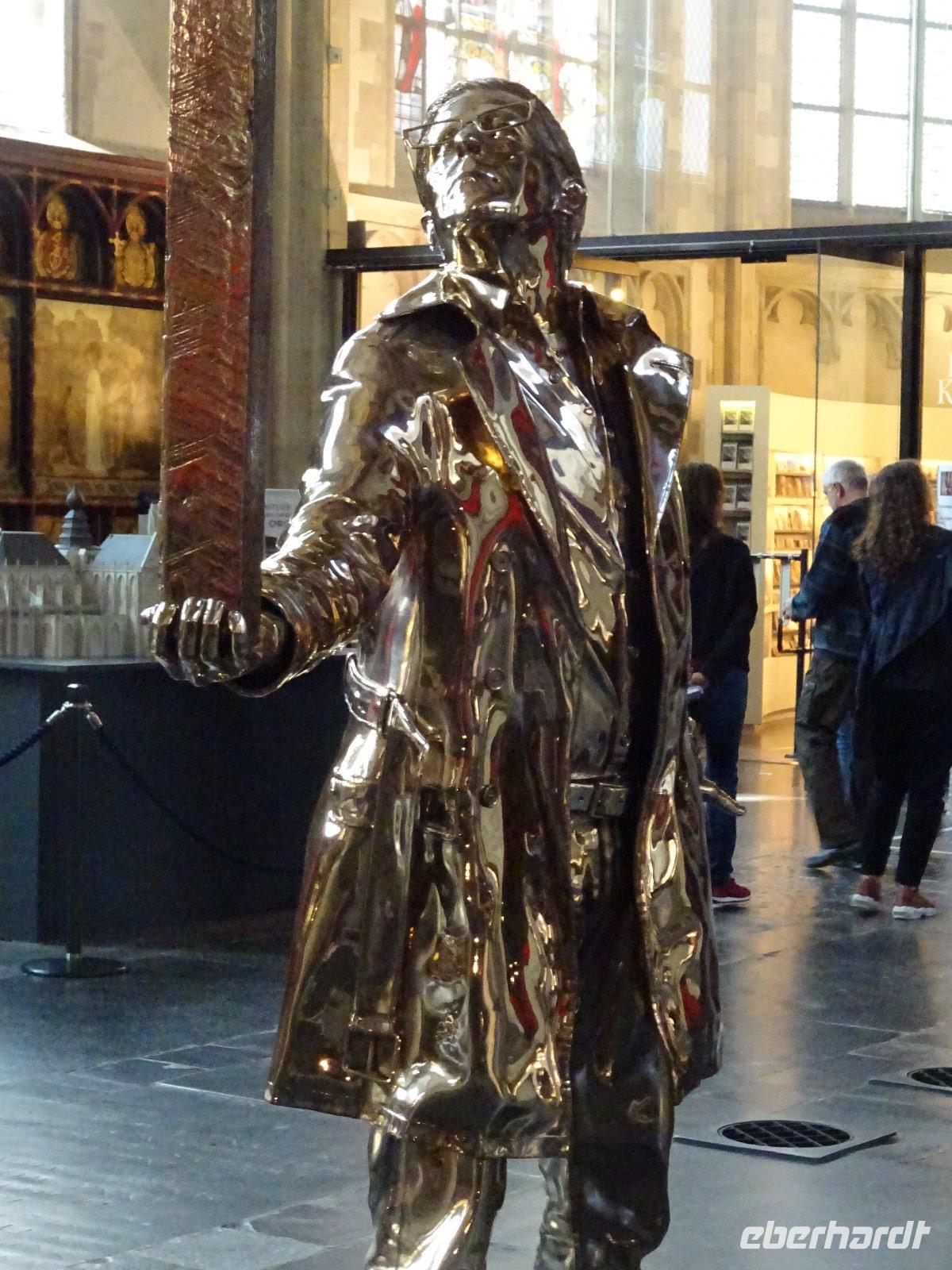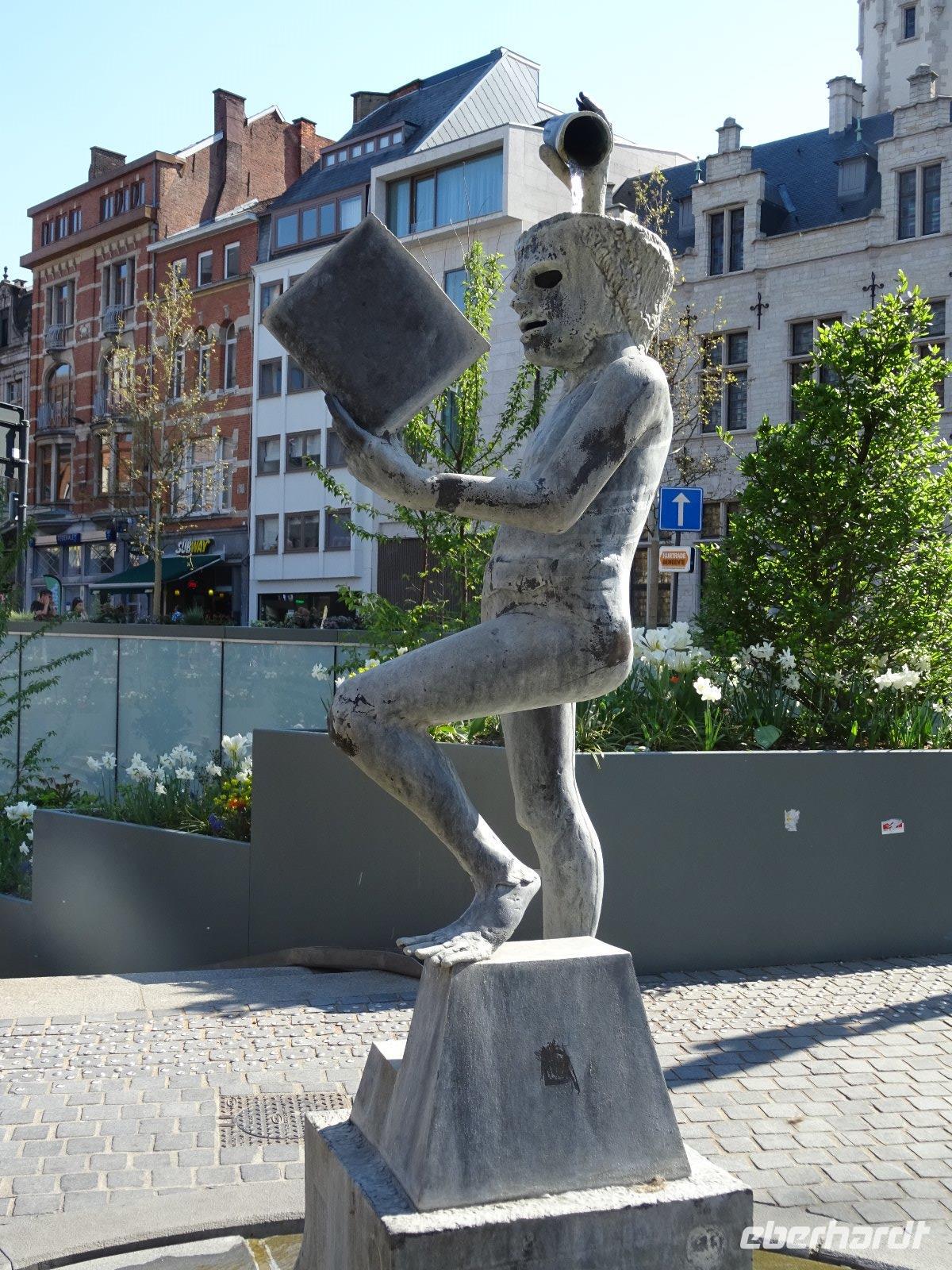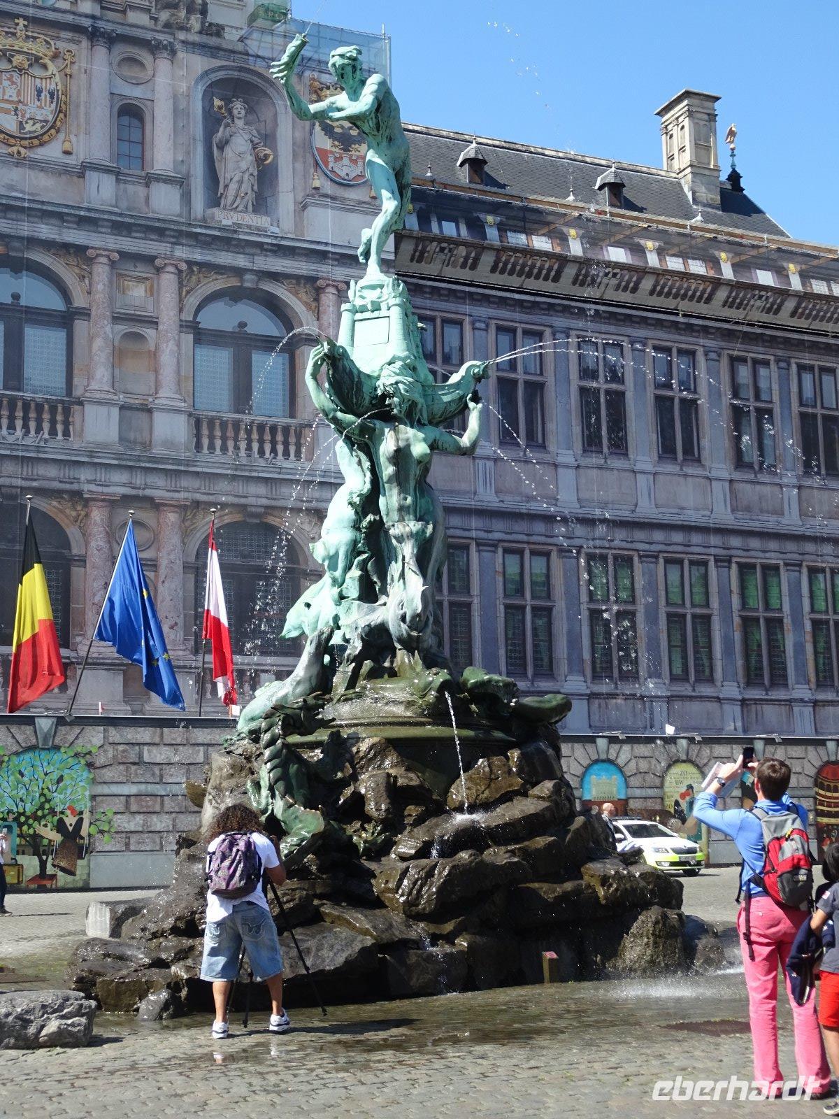 In Antwerpen wurden wir schon zu unserem Stadtrundgang erwartet. Höhepunkt von Antwerpen war neben dem Grote Markt mit dem Brabodenkmal, auf dem der Riese Brabo die namensgebende Hand wirft, auch die Liebfrauenkirche. In dieser, einer der größten Kathedralen der Welt, konnten vier Rubens Bilder besichtigt werden. Und auch hier begegnete uns mit dem Kreuzträger von Fabré wieder zeitgenössische Kunst. Weiterhin besuchten wir die ehemalige Fleischhalle, die heutzutage als Musikinstrumentenmuseum genutzt wird . Das beeindruckende Weltkulturerbe des Plantin-Moretus- (Druckerei-) Museums mit einem wunderbaren Innenhof bot einen sehr guten und markanten Eindruck von Antwerpen. Haben Sie schon einmal eine Dachrinne aus Blei gesehen? Wenn Sie dies interessiert, dann sollten Sie in dieses Museum gehen und im Innenhof dieses Fallrohr aus Blei bestaunen.